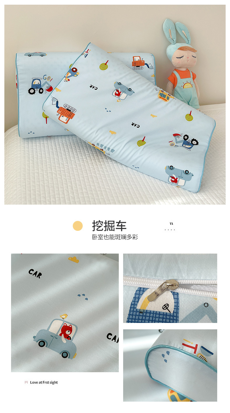 (总)良佐生活 2023新款A类60支全棉贡缎乳胶枕枕套儿童橡胶枕头套高低,口袋熊,恐龙宝宝,开心熊 粉,冰淇淋,恐龙乐园,花仙兔,贝塔 粉,挖掘车