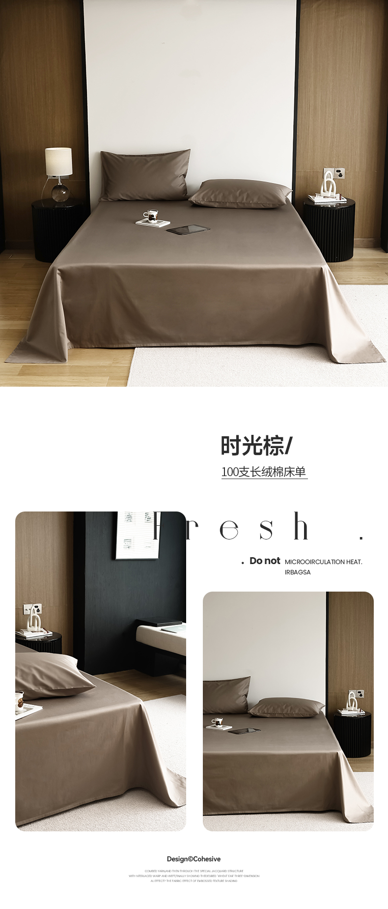 商品名称:寐眠 2023新款100支纯棉长绒棉单床单 时光棕【床单】