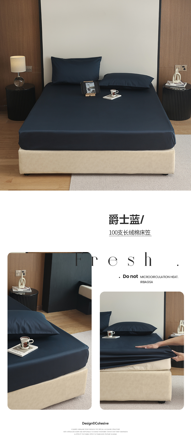 商品名称:寐眠 2023新款100支纯棉长绒棉单床笠 爵士蓝【床笠】