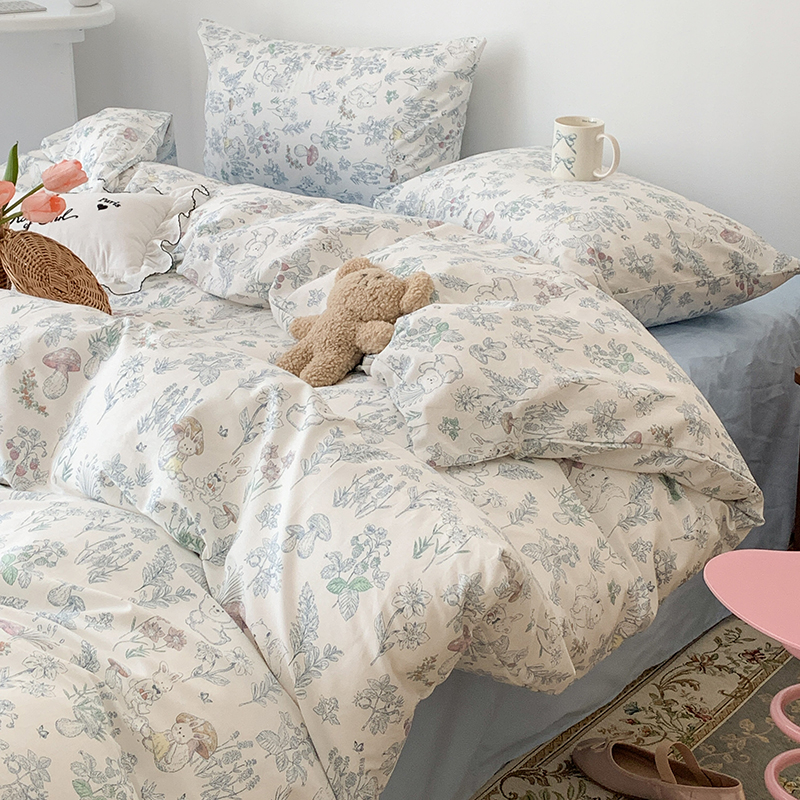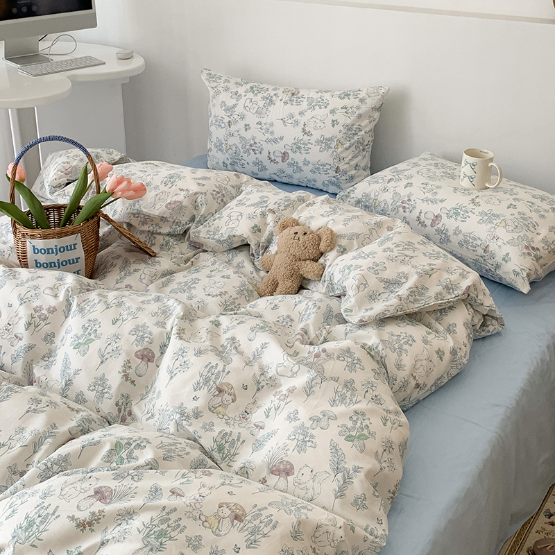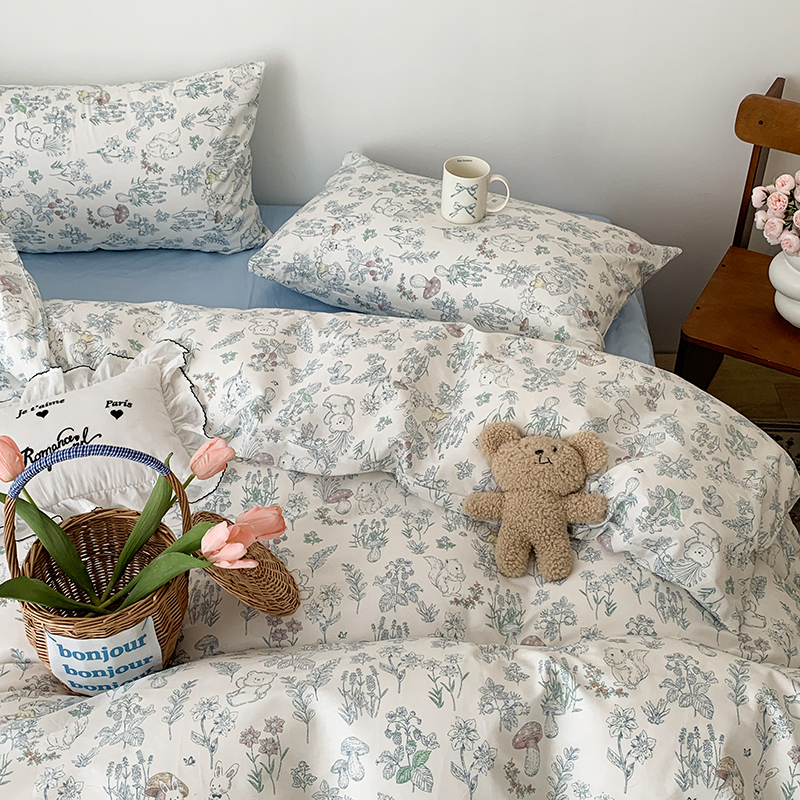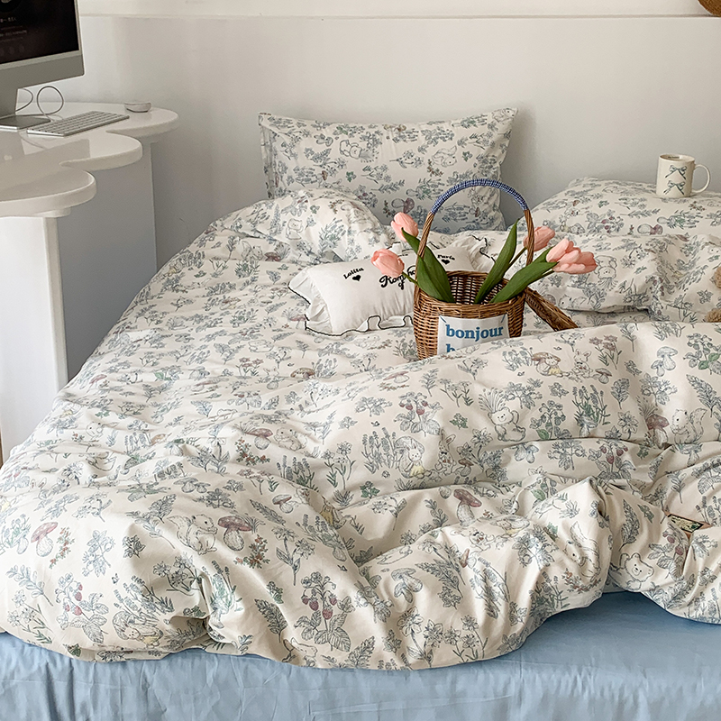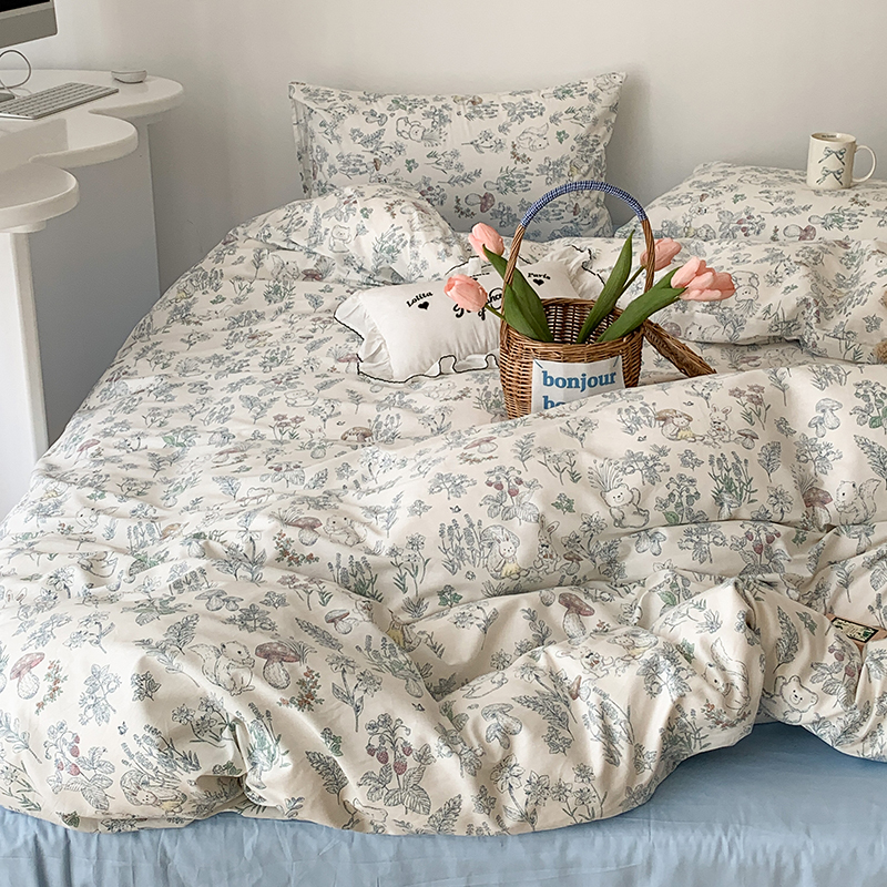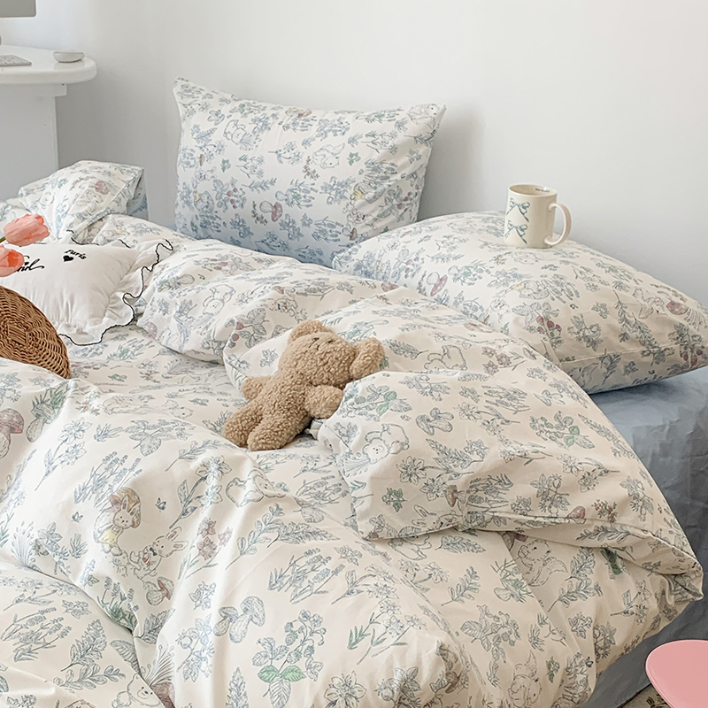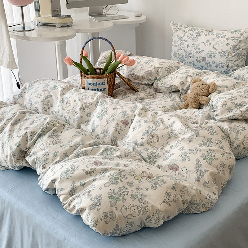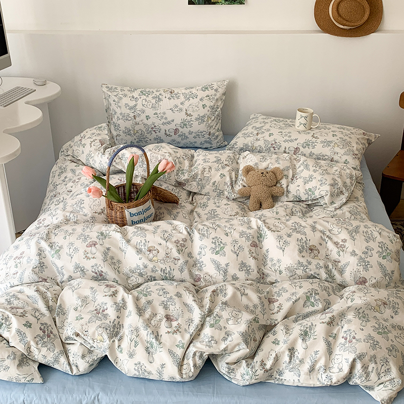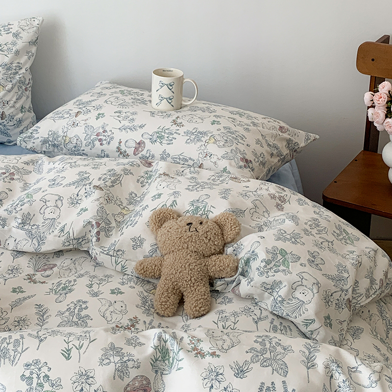 昔可家纺 2023新款全棉怦然心动小花系列四件套 素描小卡通