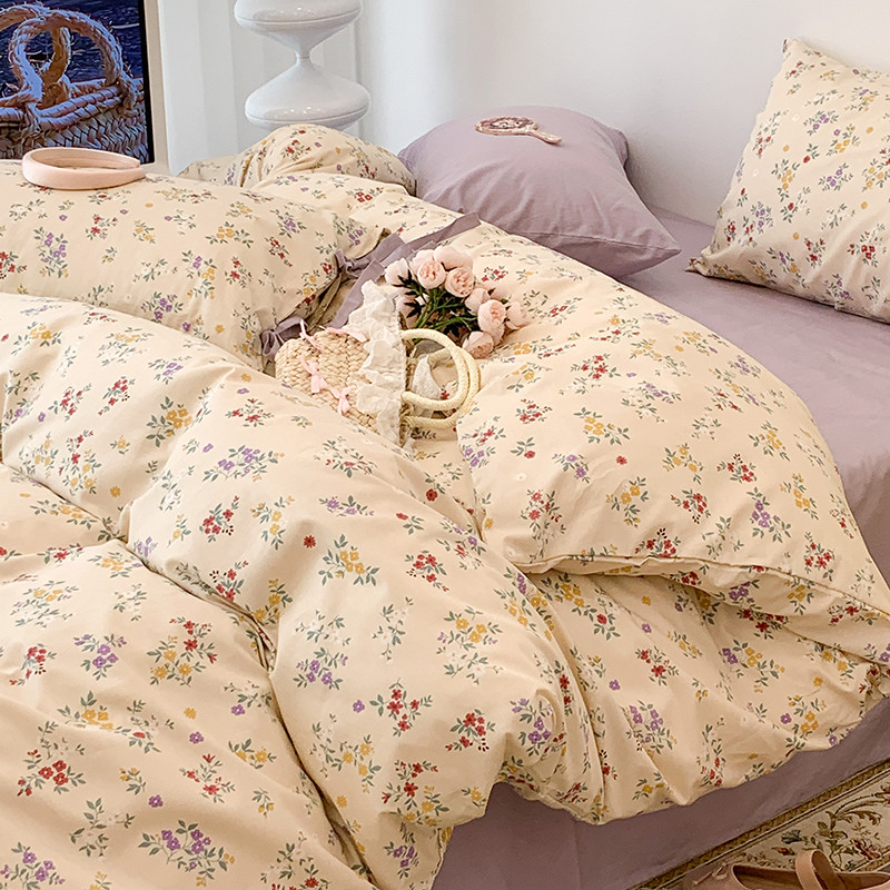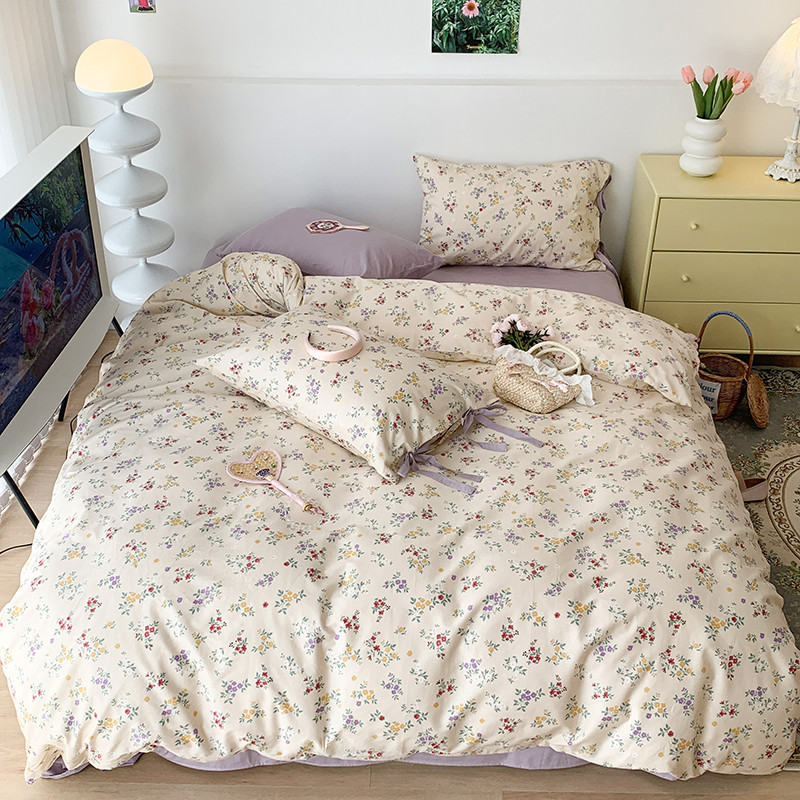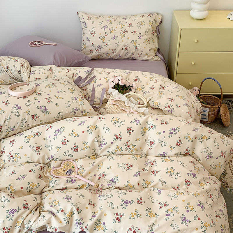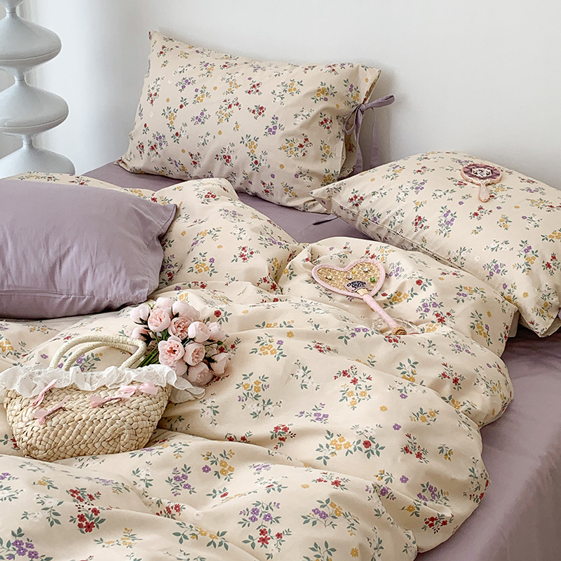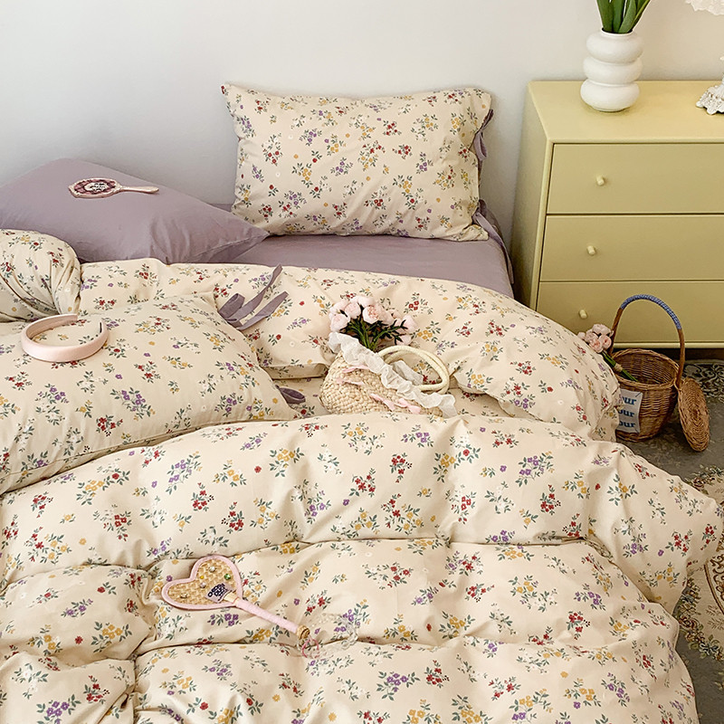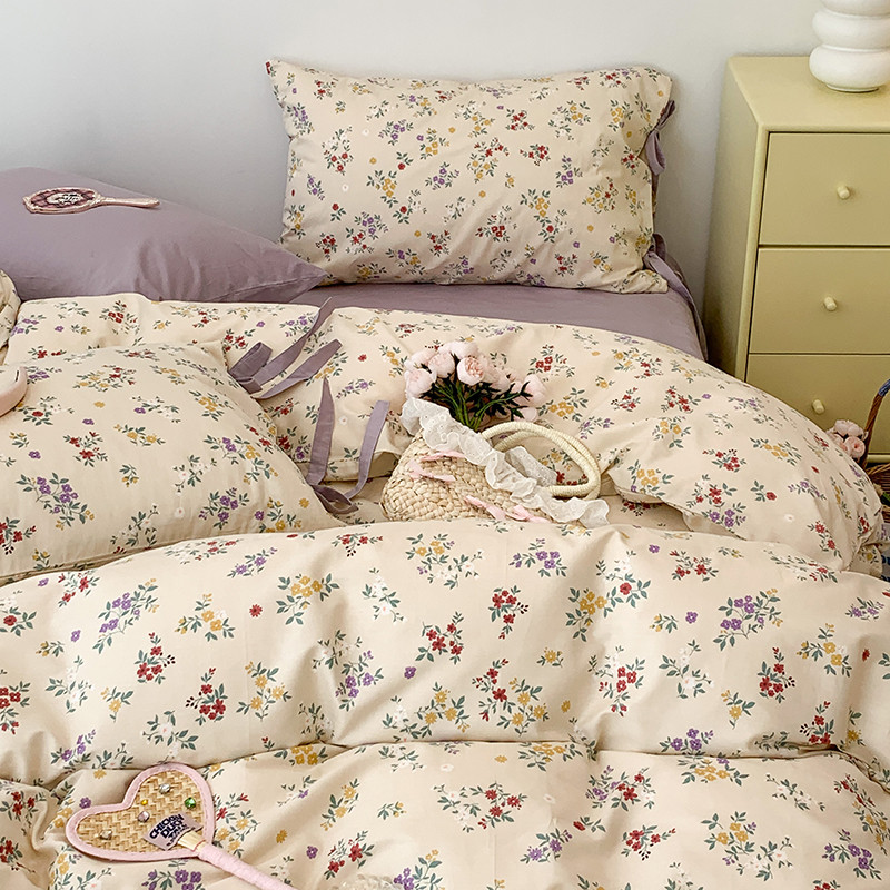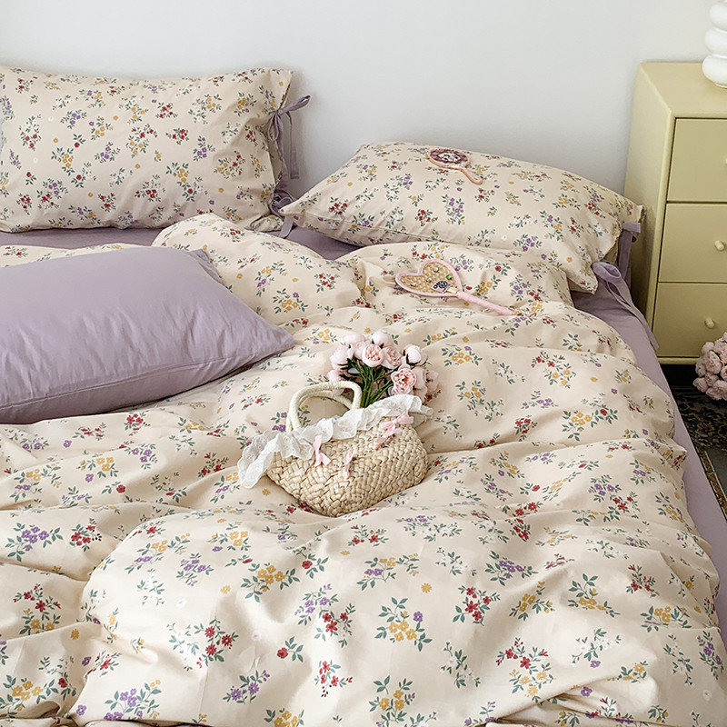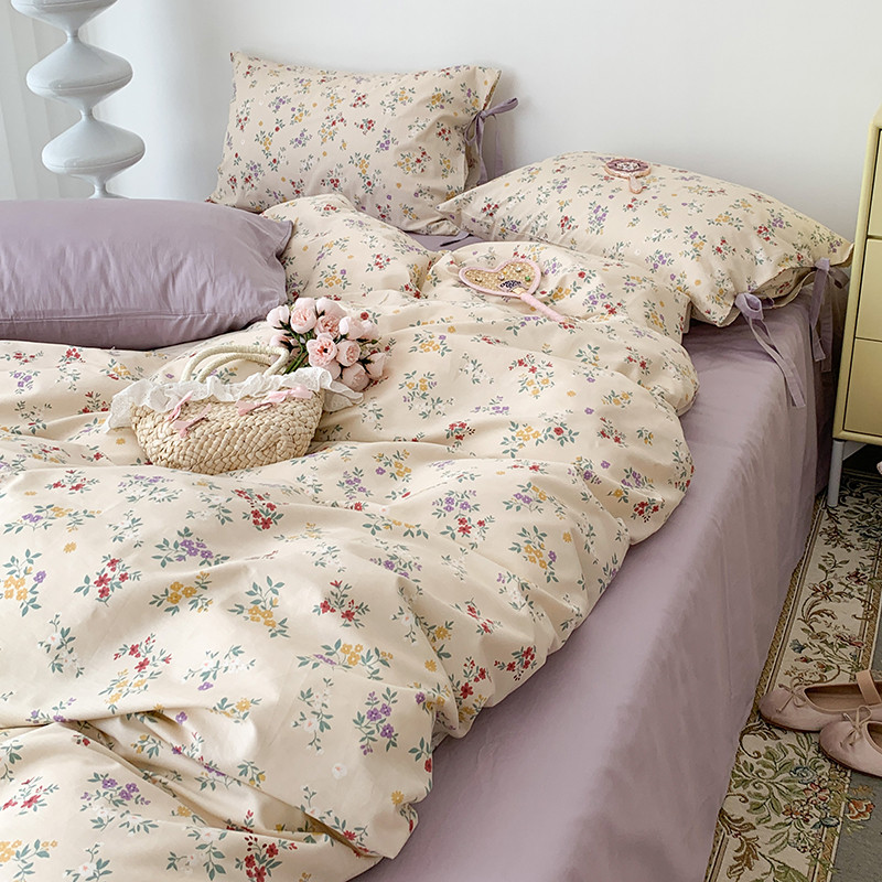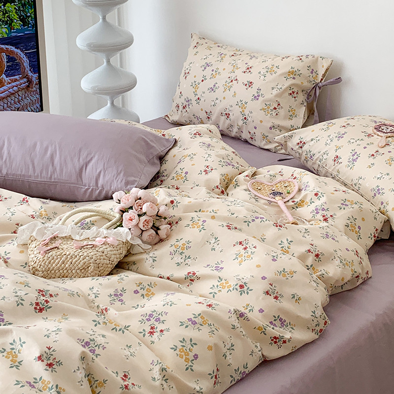 (总)昔可家纺 2023新款全棉小花系列四件套,柏林少女,小小的樱桃,紫色葡萄