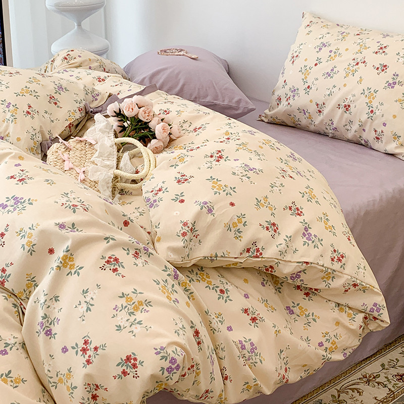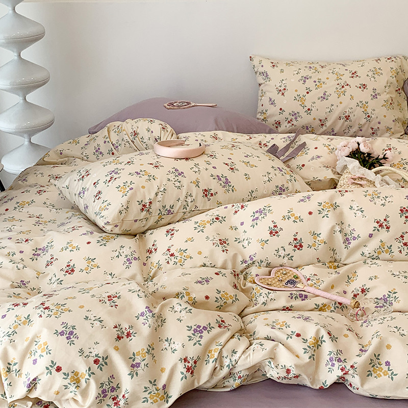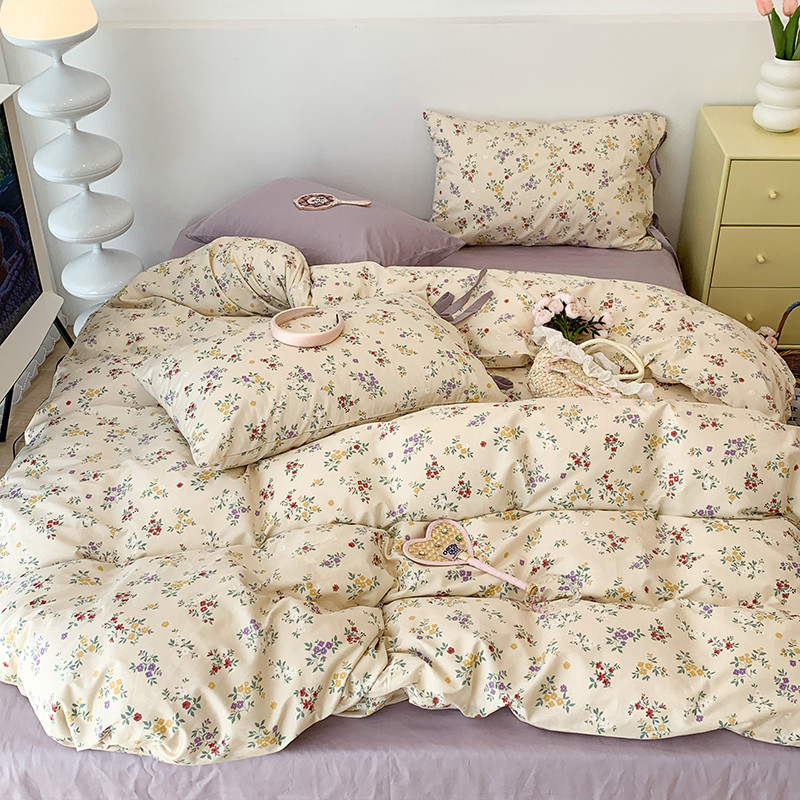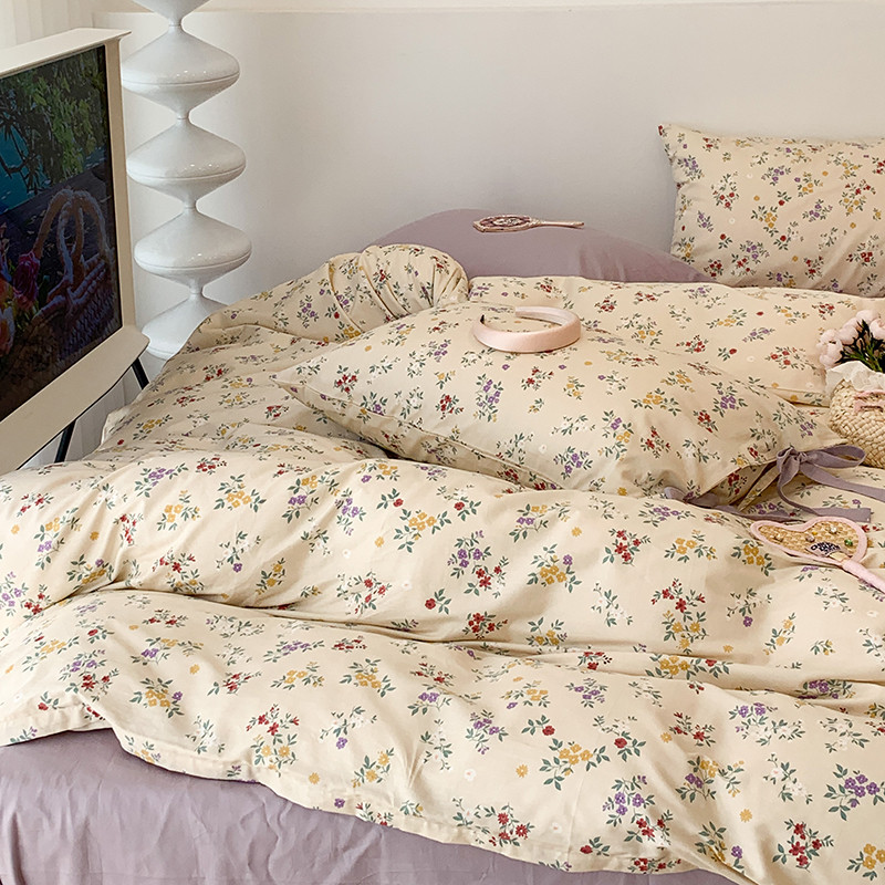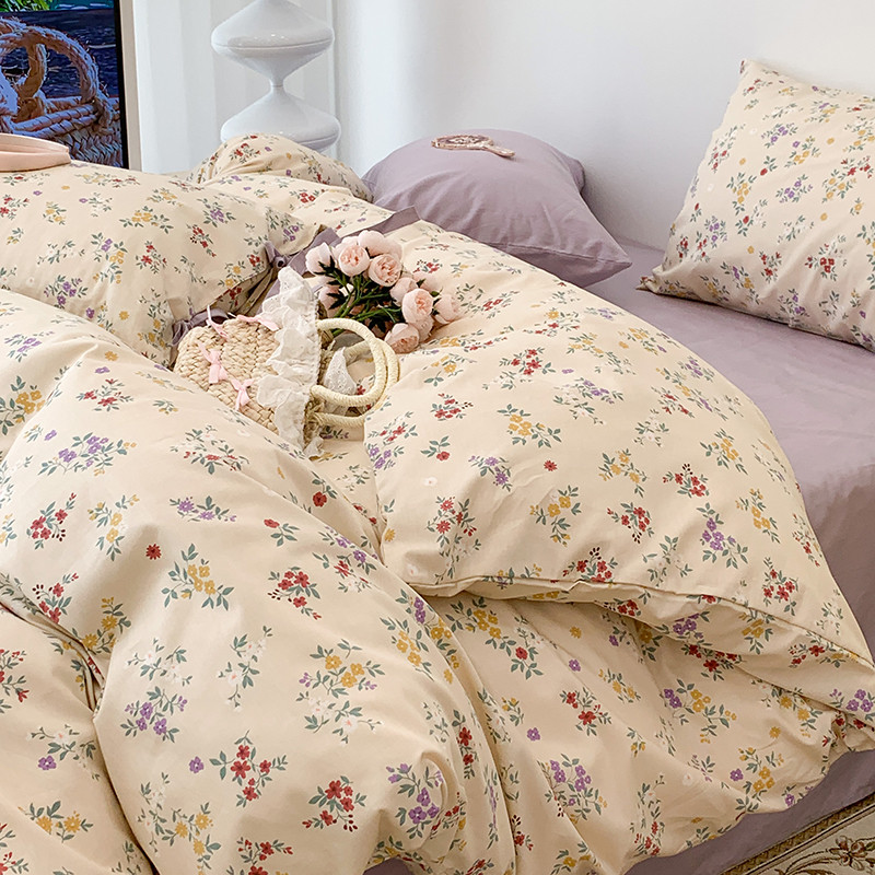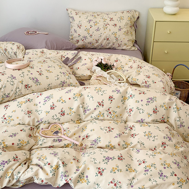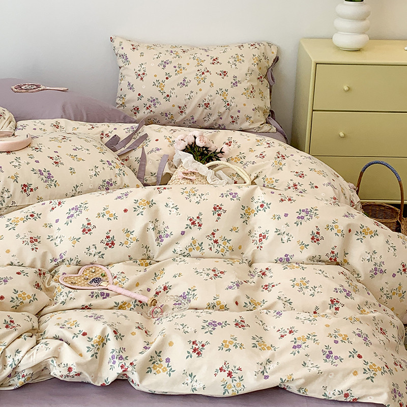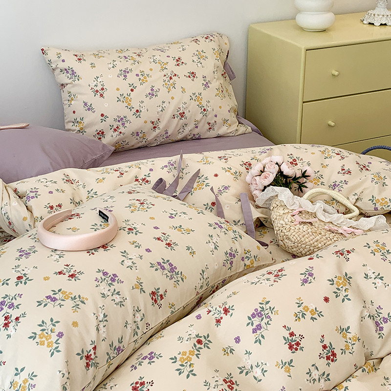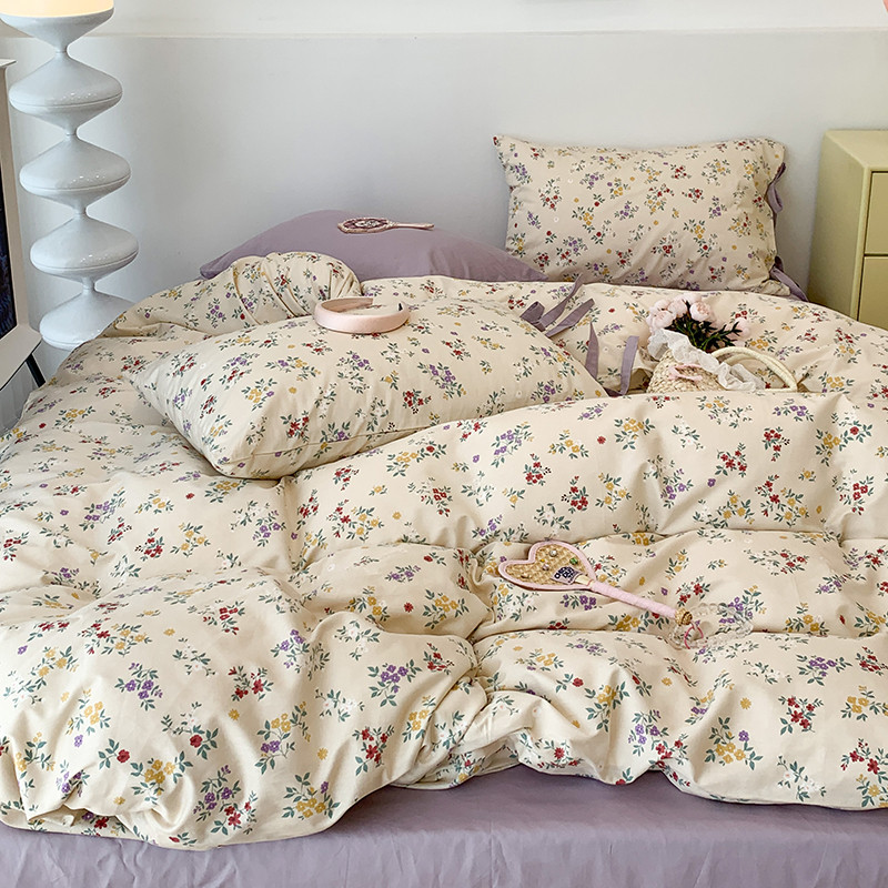 (总)昔可家纺 2023新款全棉小花系列四件套,柏林少女,小小的樱桃,紫色葡萄