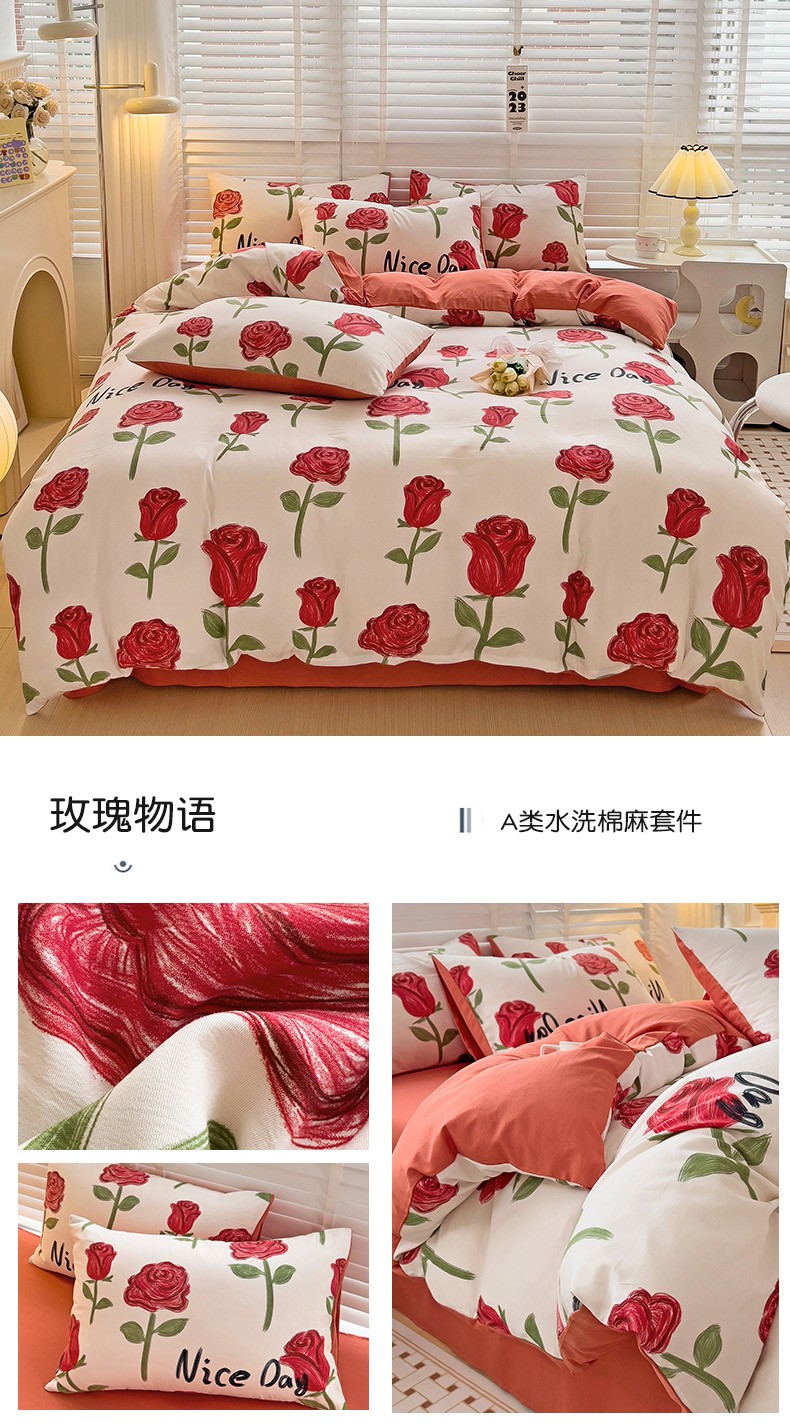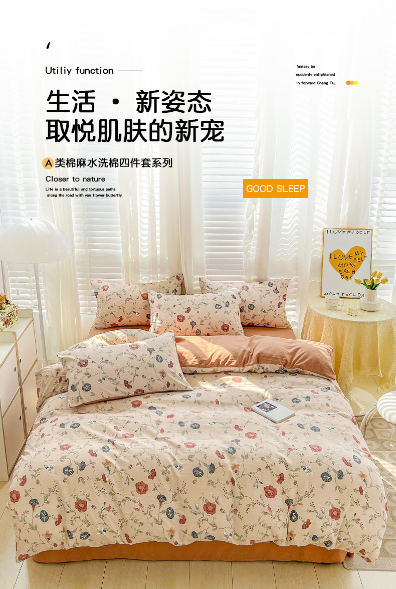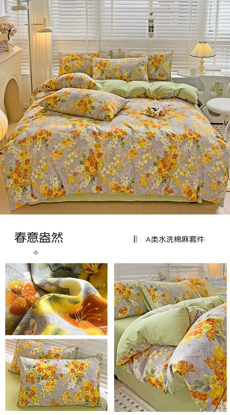(总)直播爆款法式风双层纱棉麻水洗棉四件套