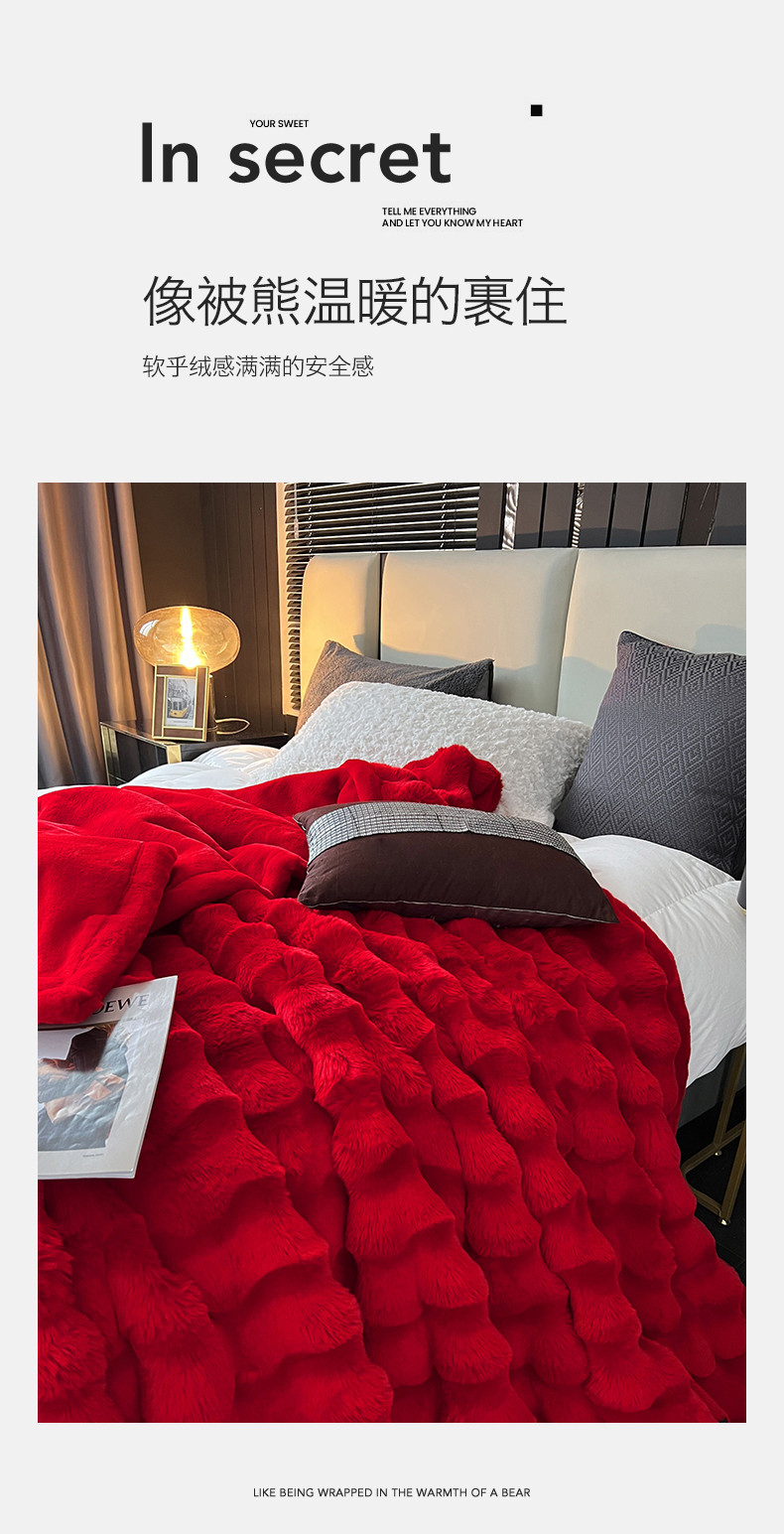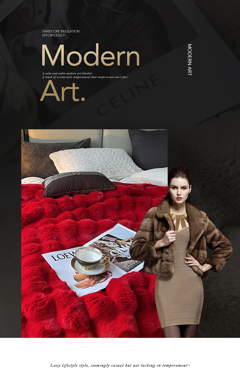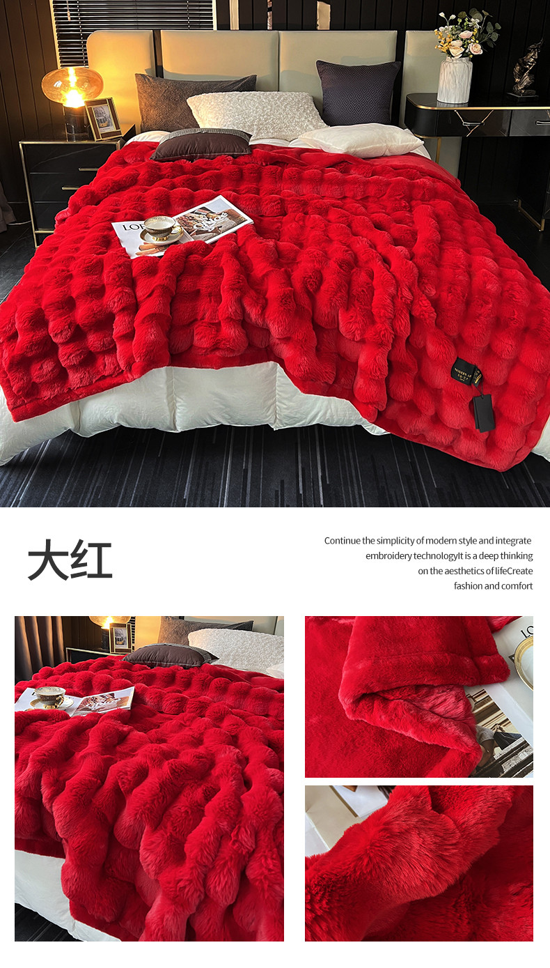 商品名称:凯轩毛毛毯毯子 2024新款仿皮草摩登艺术毛毯毯子 大红