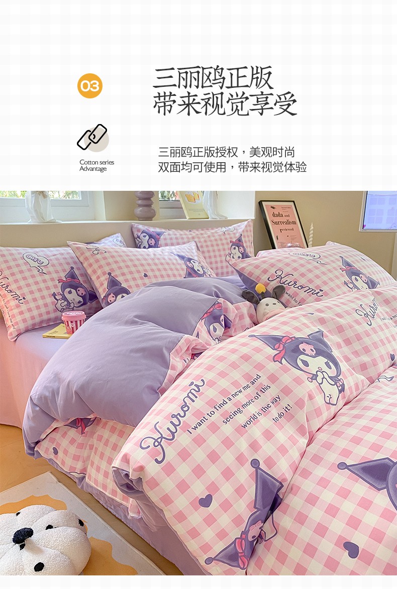 当前位置: 91家纺网 > 商品网购 > 床品套件 > 四件套 > 全棉普通四件套 > 桃子 2023新款三丽鸥正版授权纯棉印花系列四件套 棉三丽鸥-库洛米之心