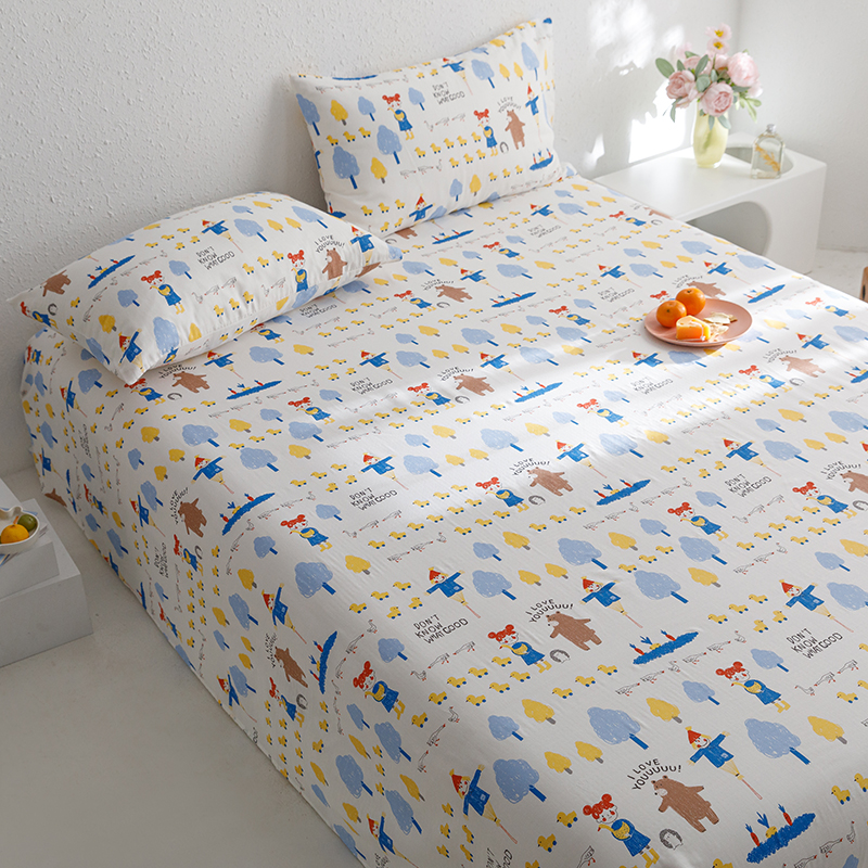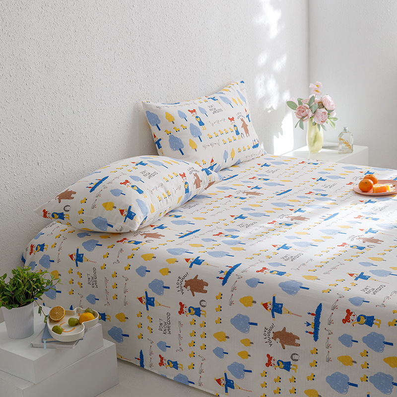 8小时家纺 2023新款40s全棉双层纱单品四件套系列-单床单 鸭鸭稻草人