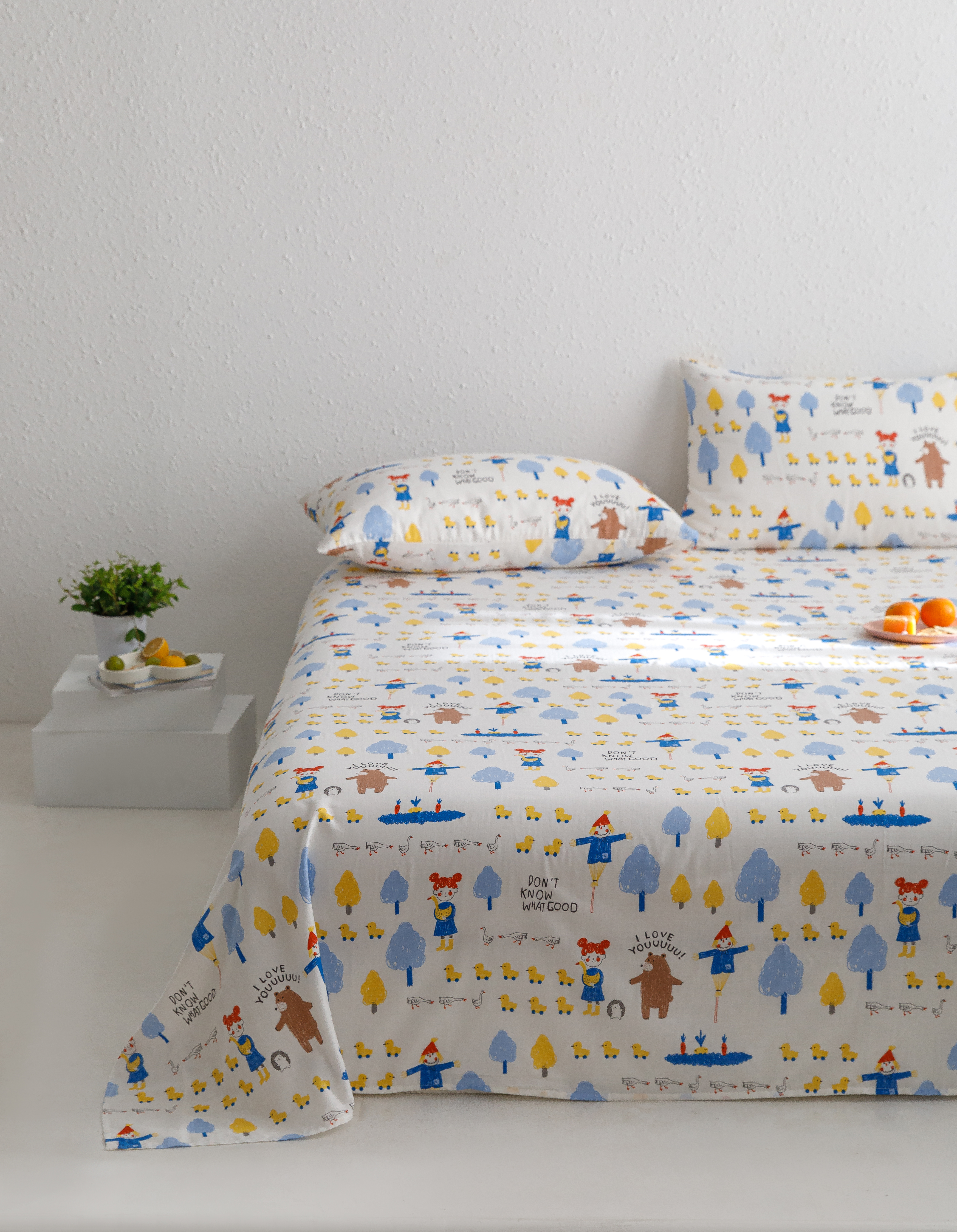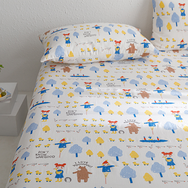 商品名称:8小时家纺 2023新款40s全棉双层纱单品四件套系列-单床单 鸭鸭稻草人