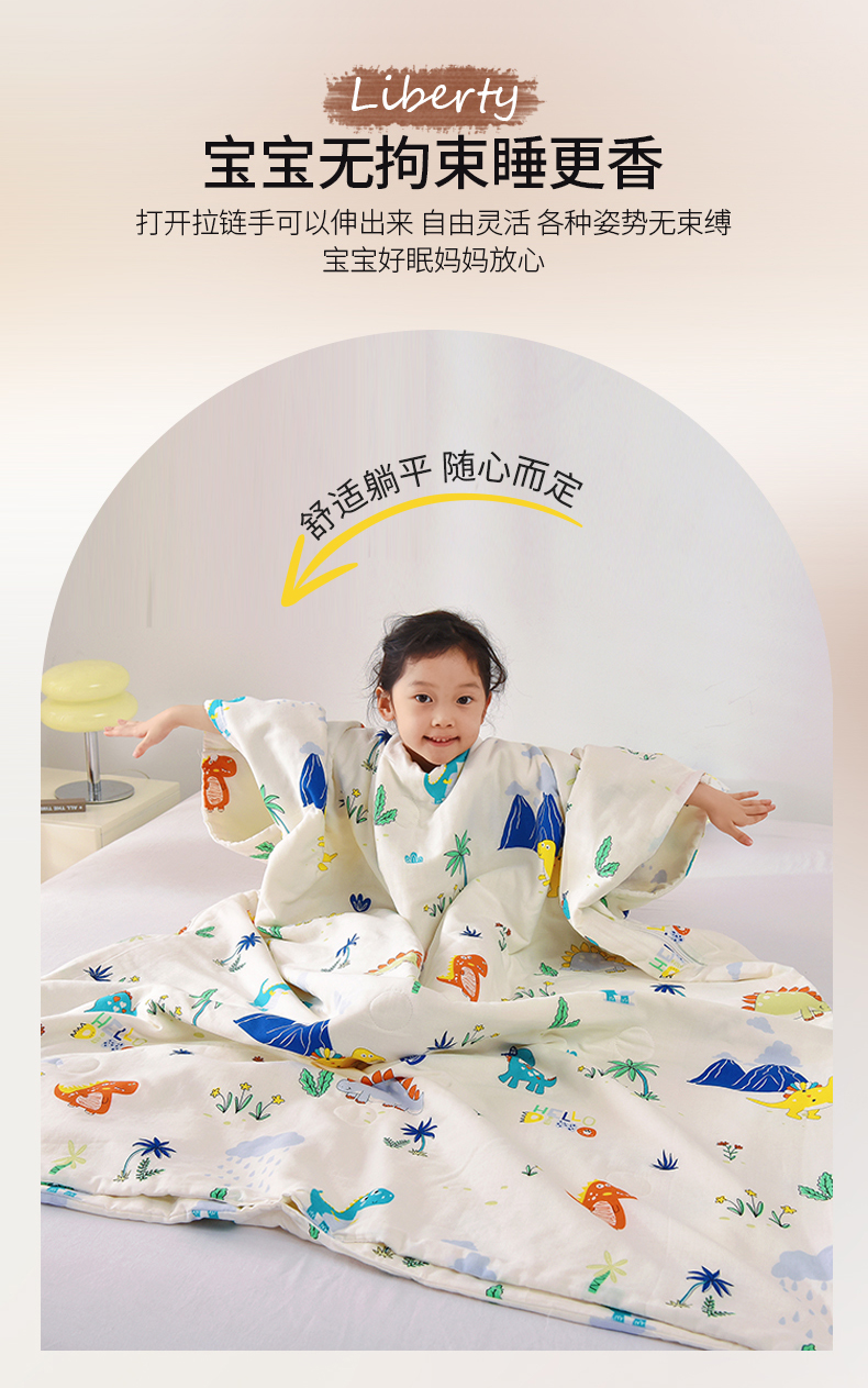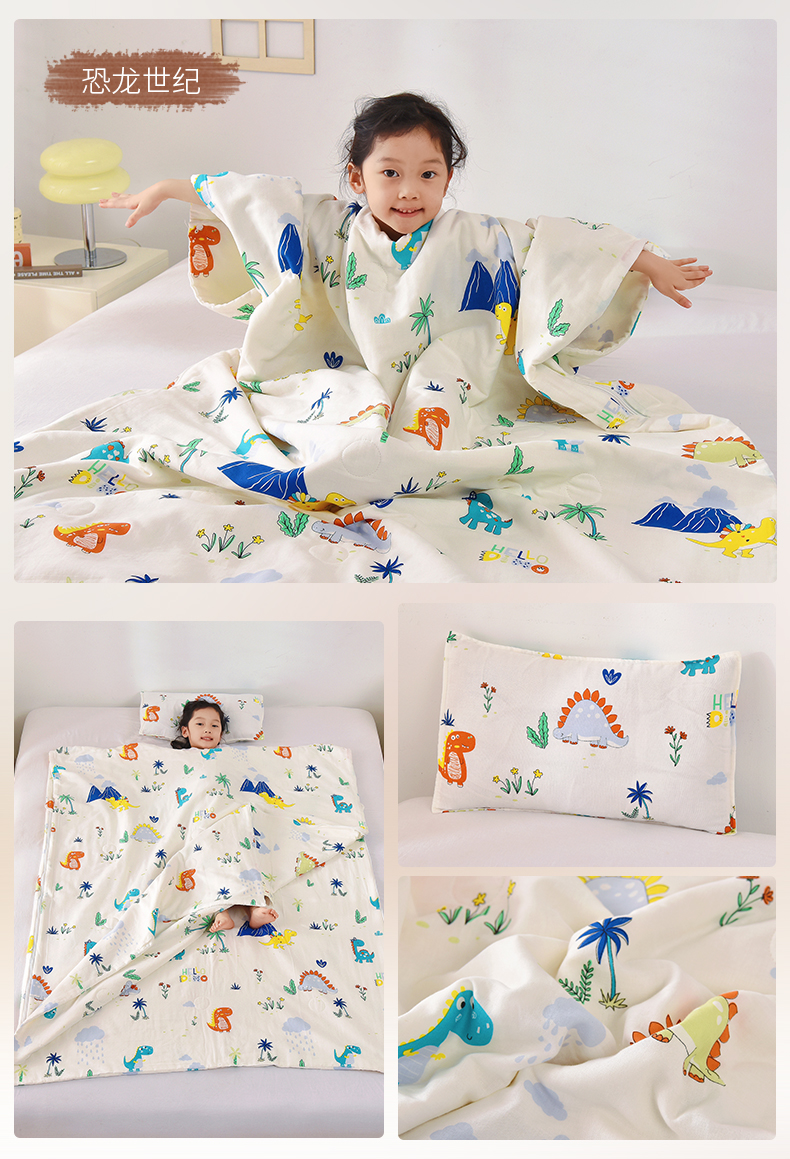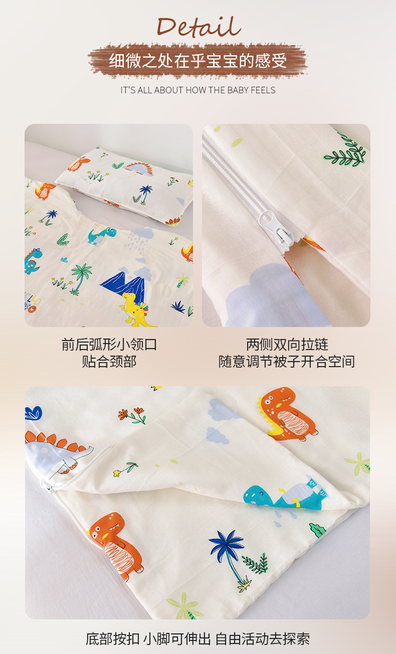 商品名称:A类夏季纯棉睡袋双层纱棉花薄款春秋宝宝中大童儿童防踢被神器 恐龙世纪