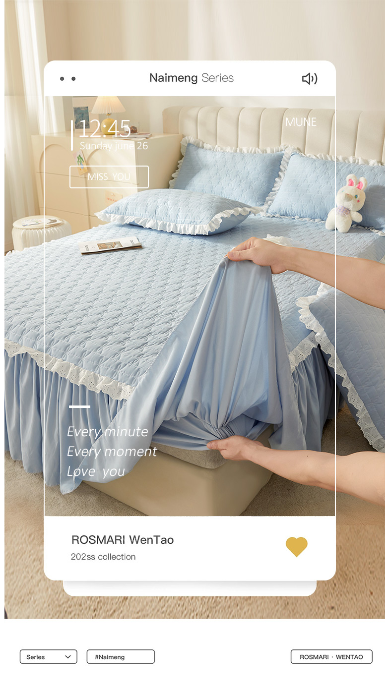 恋尚 2023新款玛奇朵系列蜜桃棉夹棉床笠式单床裙 玛奇朵-浅蓝