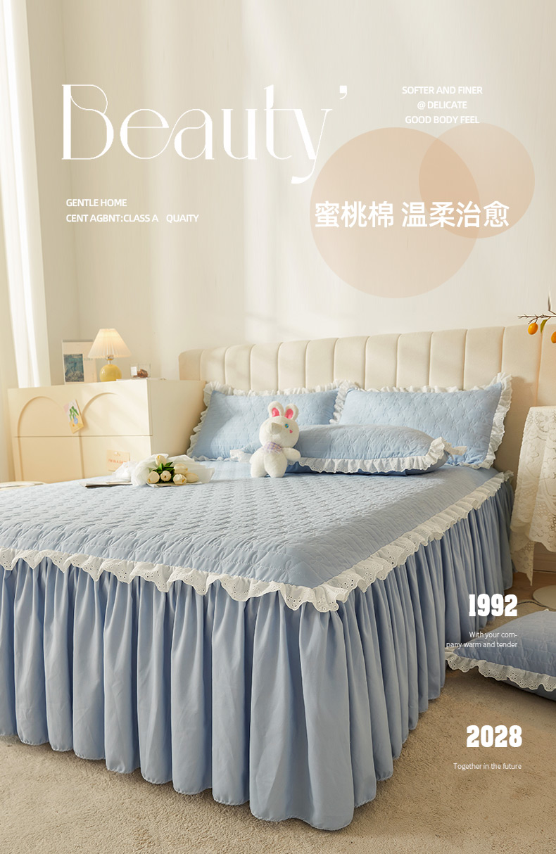 (总)2025新款韩式蕾丝丝光棉夹棉床裙-蜜芙,蜜芙-浅蓝,蜜芙-米黄,蜜芙-蜜桃粉,蜜芙-浅白,蜜芙-水绿,蜜芙-香芋紫