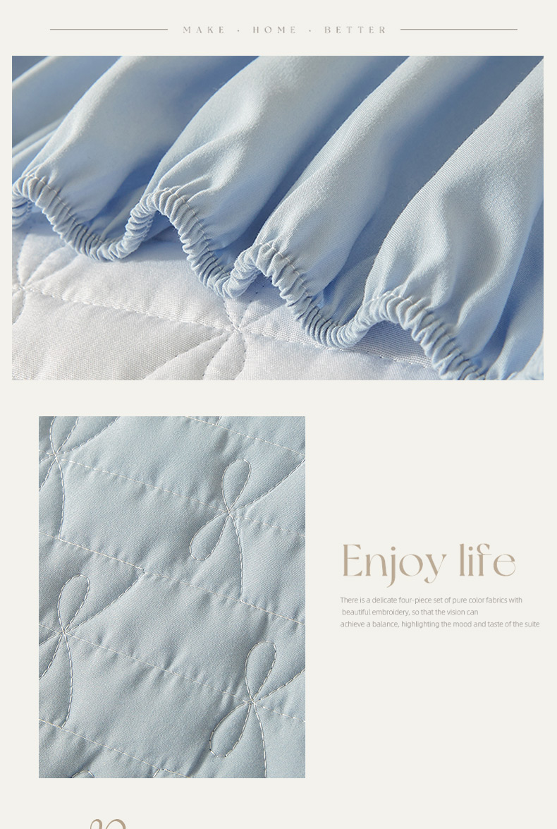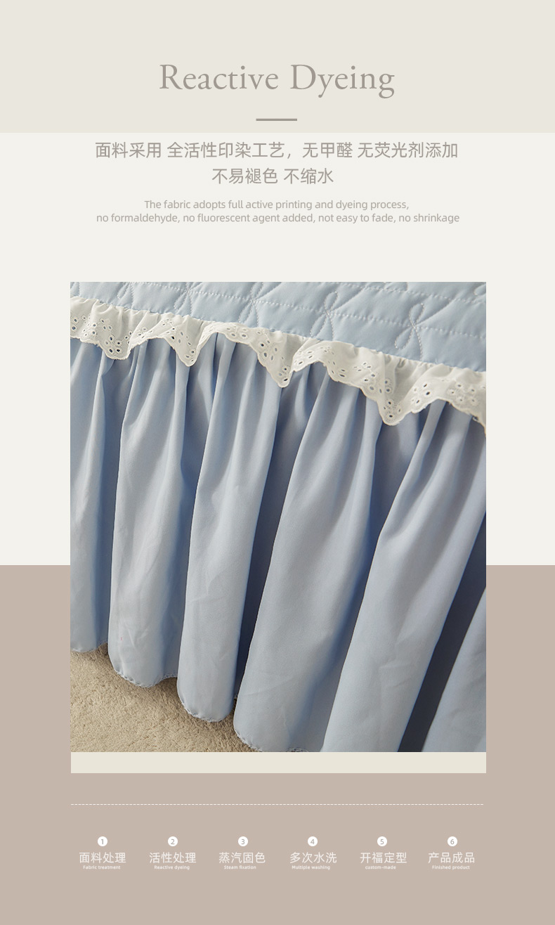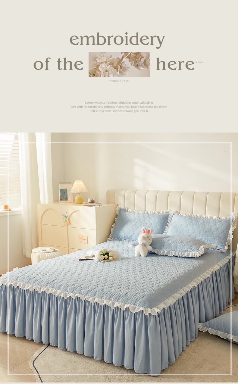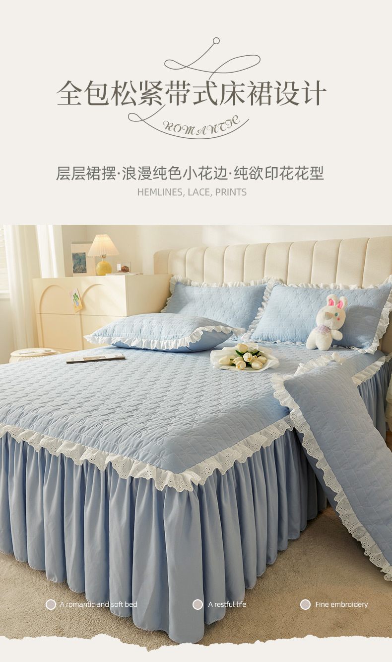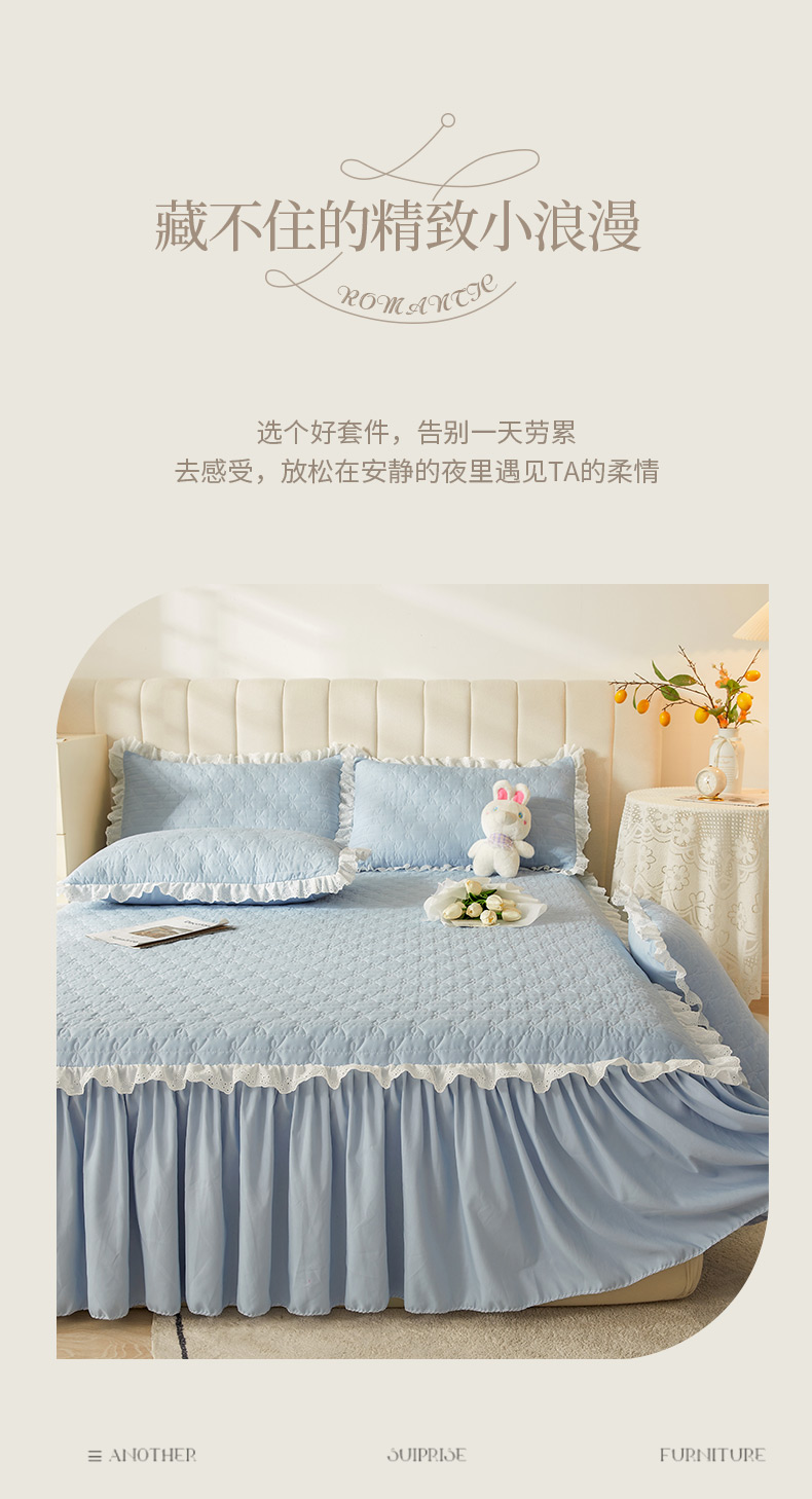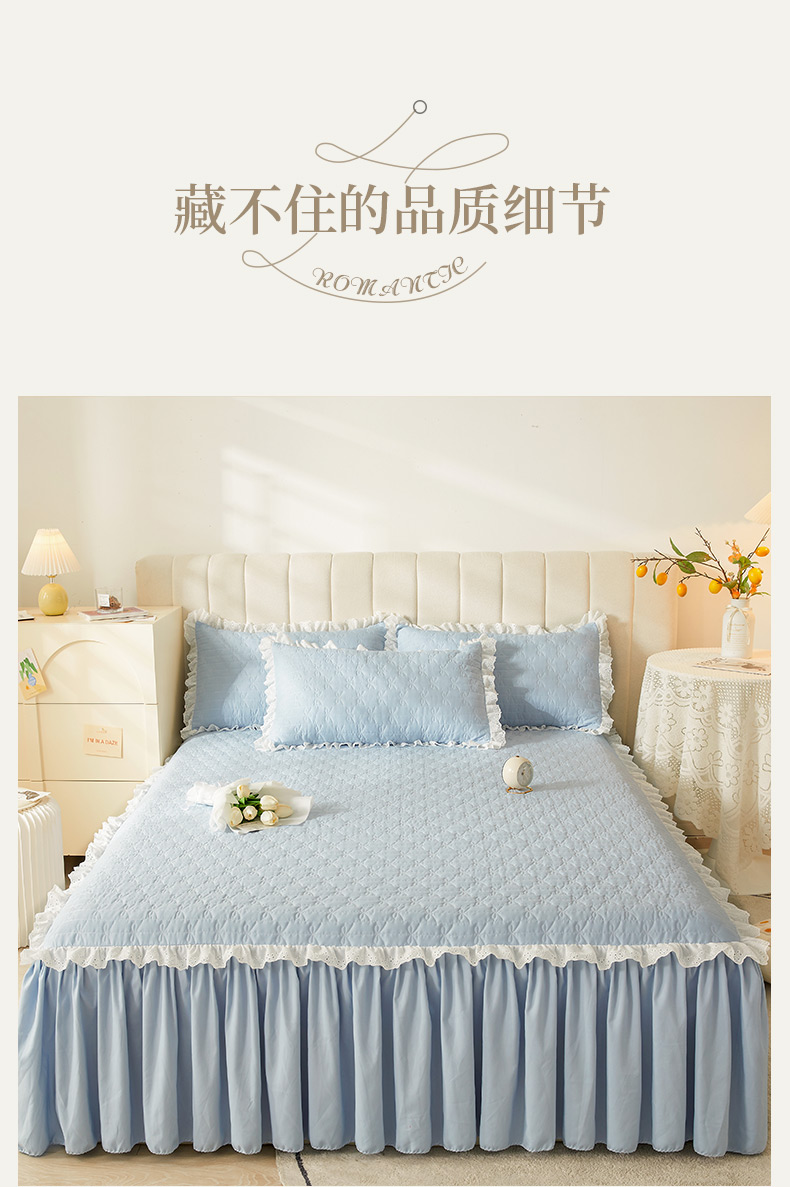 商品名称:恋尚 2023新款玛奇朵系列蜜桃棉夹棉床笠式单床裙 玛奇朵-浅蓝