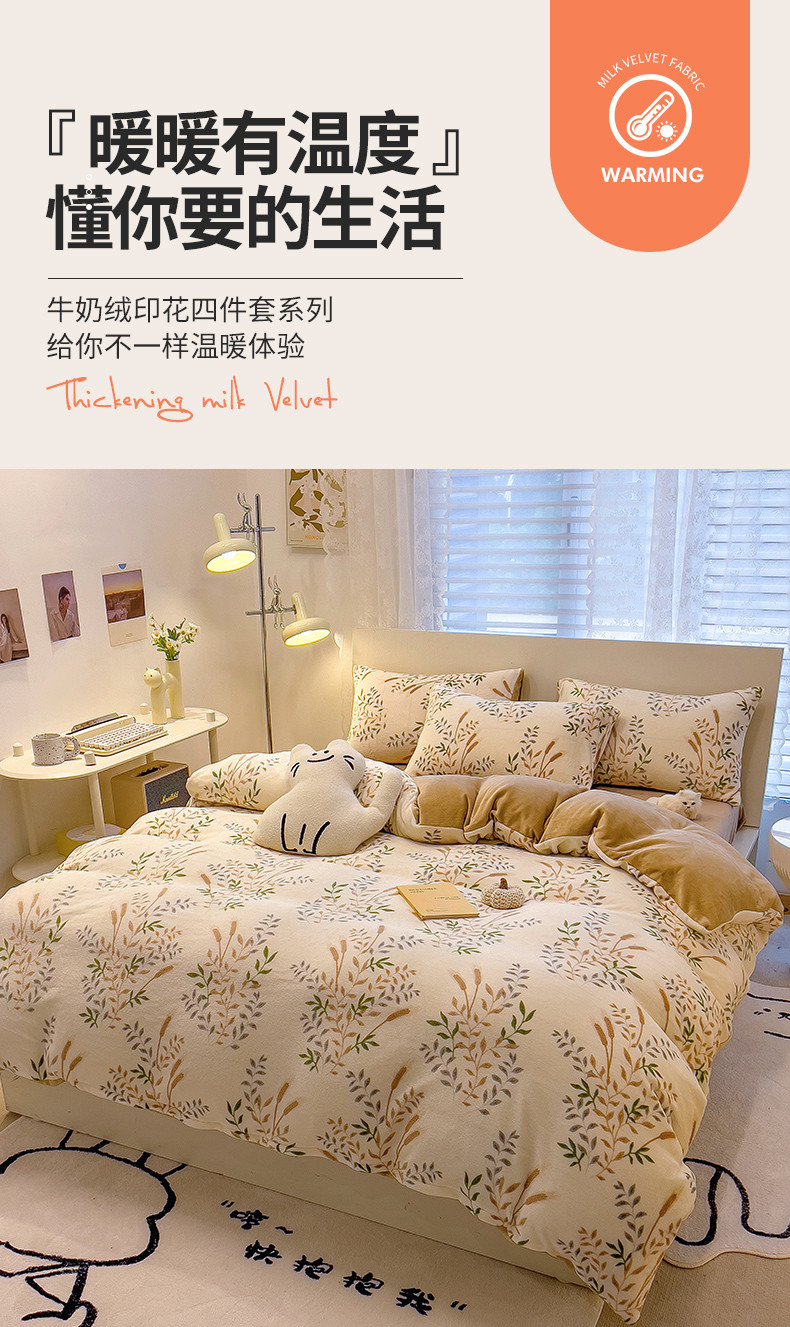 • 91家纺网 家纺一手货源 找家纺 芃成 2023新款牛奶绒印花单被套 春意盎然