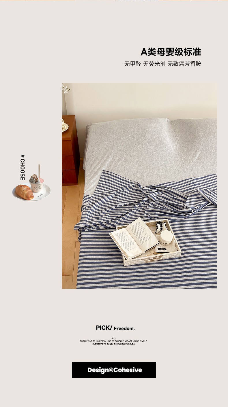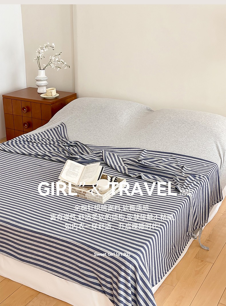(总)华超针织 2025新款亲肤舒适全棉纯棉针织五件套四件套,奶糖+樱桃,杏粉+花田,杏灰+玫瑰