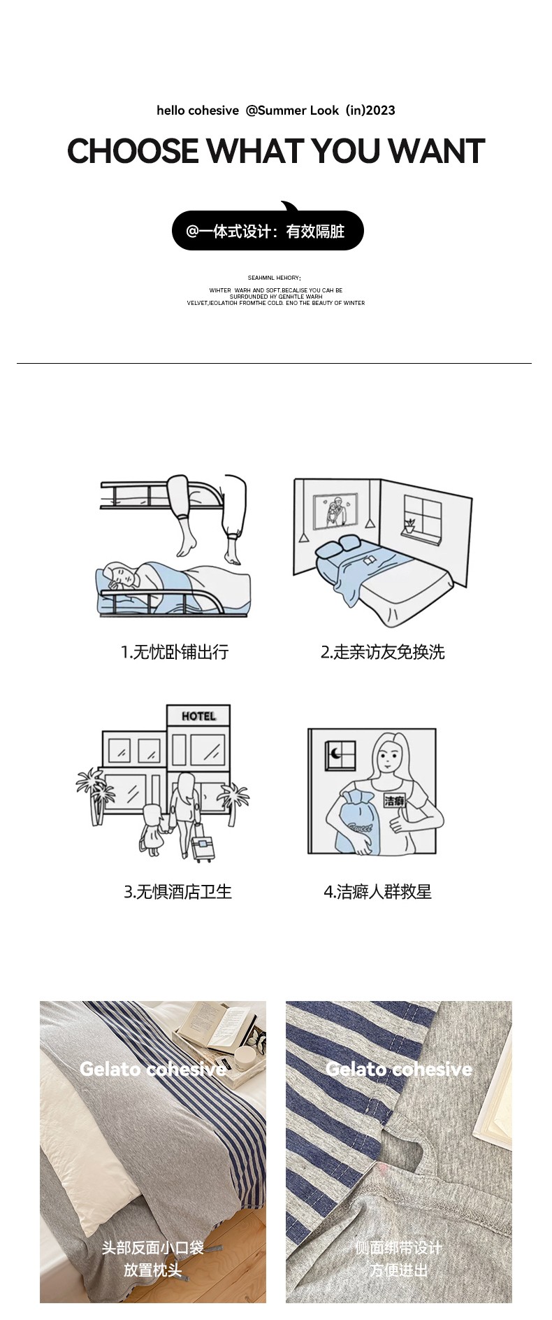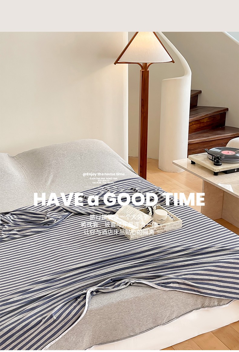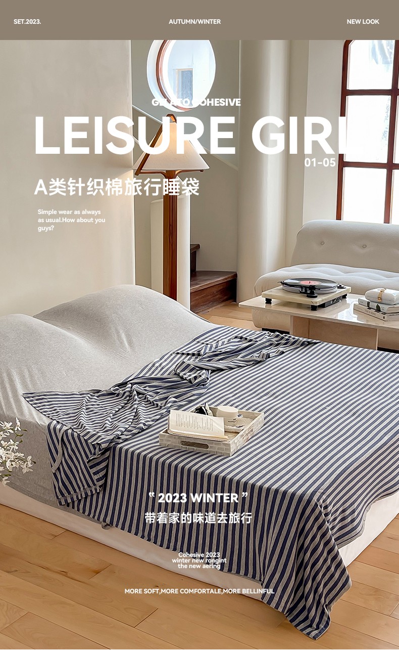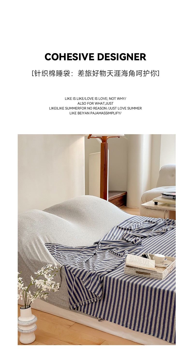 商品名称:华超针织 2023新款A类针织棉旅行睡袋 深蓝中条