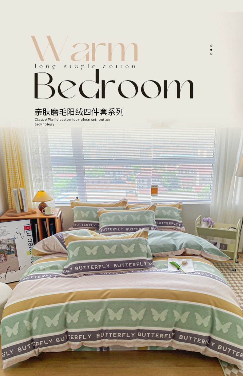 宇淳国际 2023新款加厚植物羊绒四件套 蝶舞天涯
