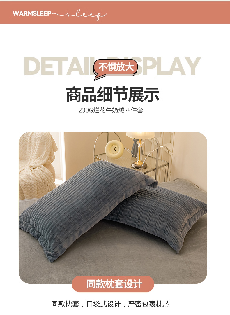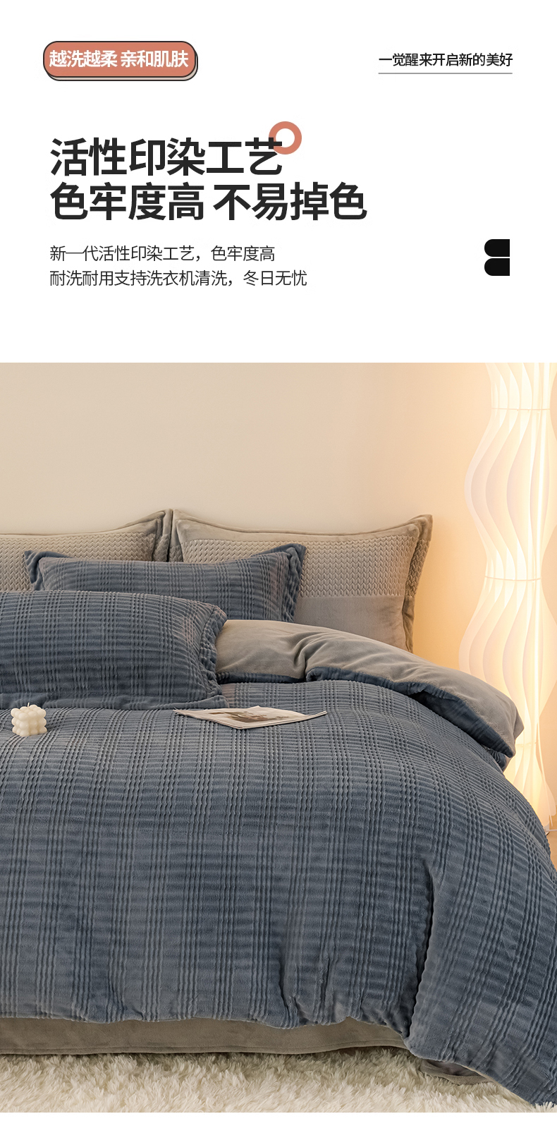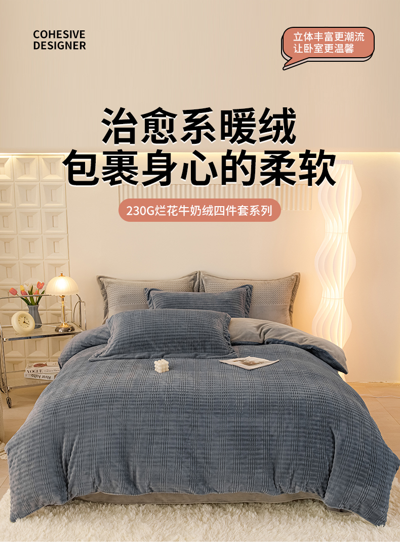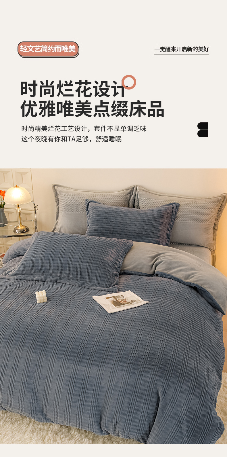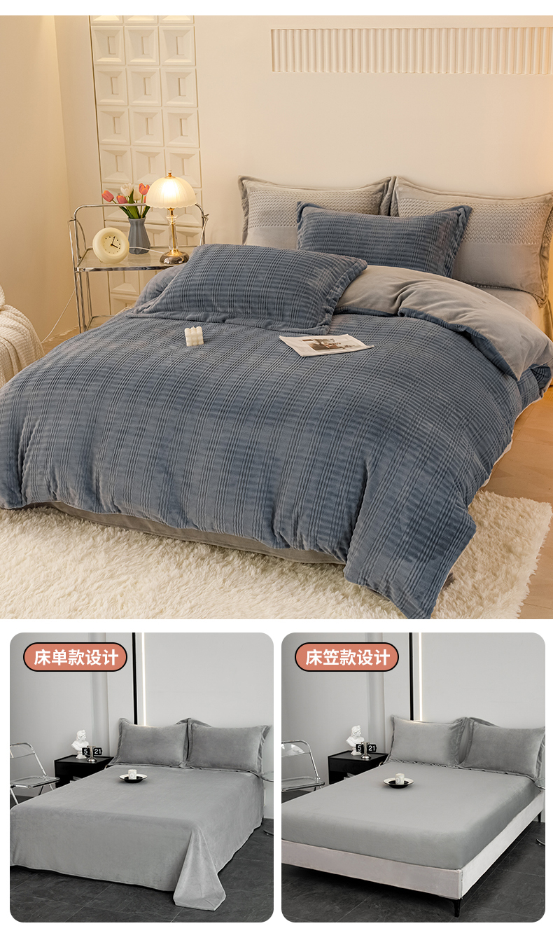 当前位置: 91家纺网 > 商品网购 > 床品套件 > 四件套 > 牛奶绒四件套 > 新品牛奶绒烂花230克四件套可定做 条纹-深灰