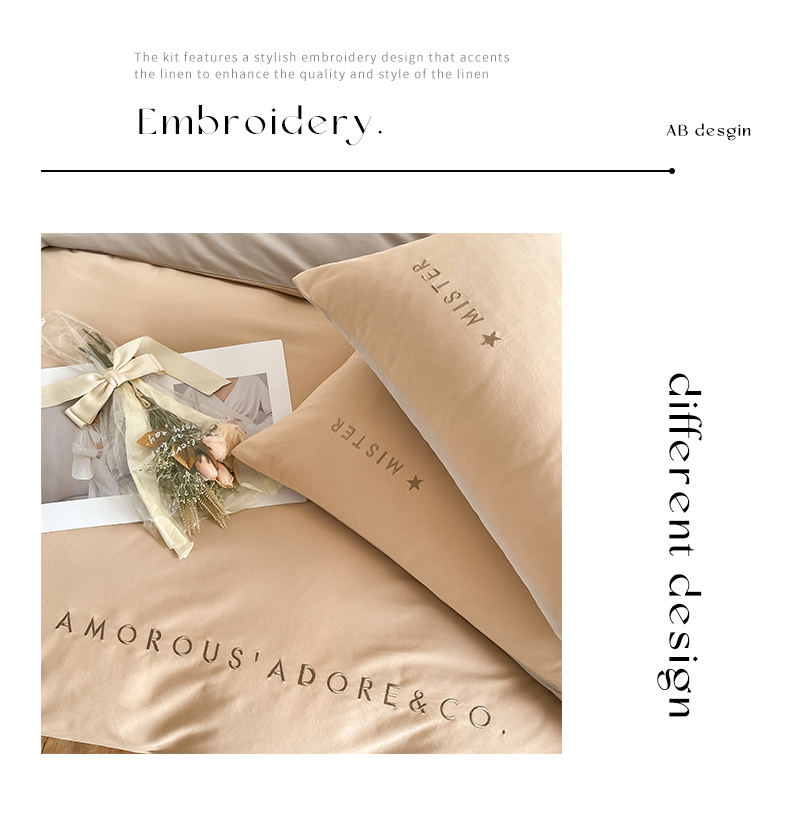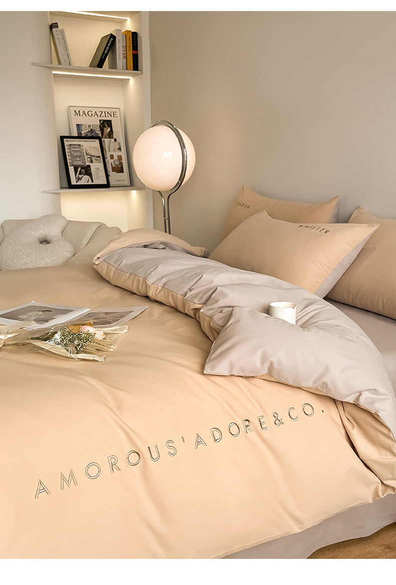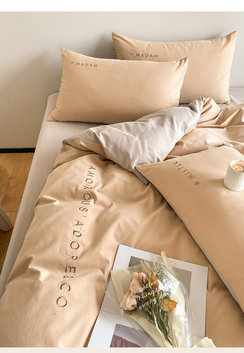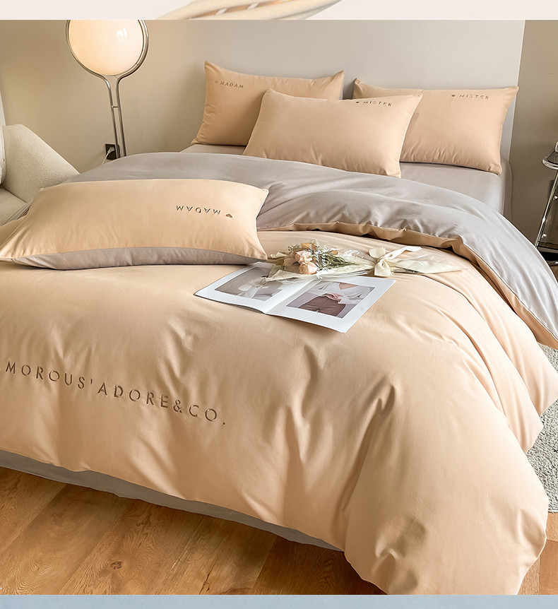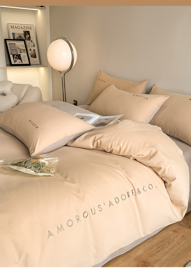(总)拼社家纺 2025新款母婴及全棉水洗棉刺绣四件套纯棉床上用品,艾玛绿+卡其,繁星蓝+卡其,繁星蓝+玫瑰粉,红豆沙+雅灰,迷雾灰+玫瑰粉,蜜粉+雅灰,奶油白+卡其,奶油白+香橙,牛仔蓝+浅蓝,香橙+雅灰