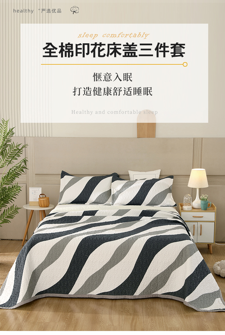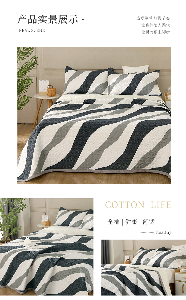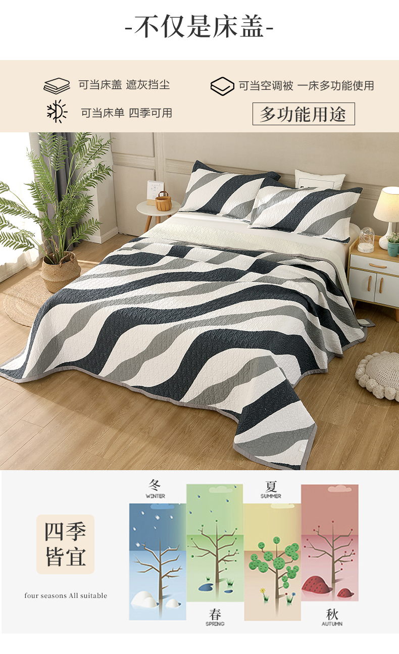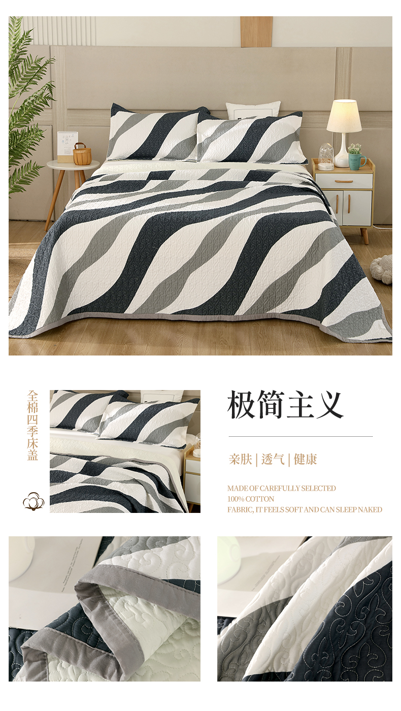 40支全棉夹棉绗缝13372简约款印花多功能床盖夏被凉席 极简主义