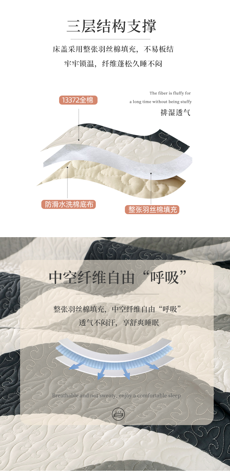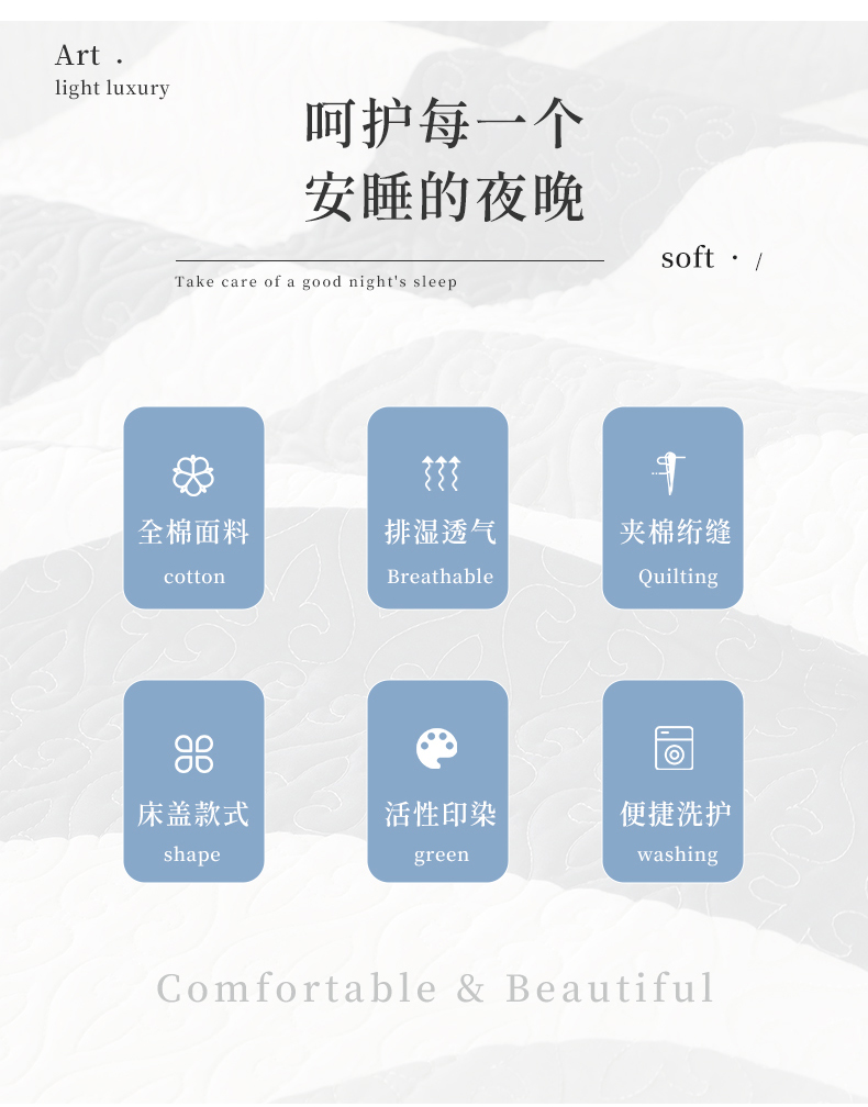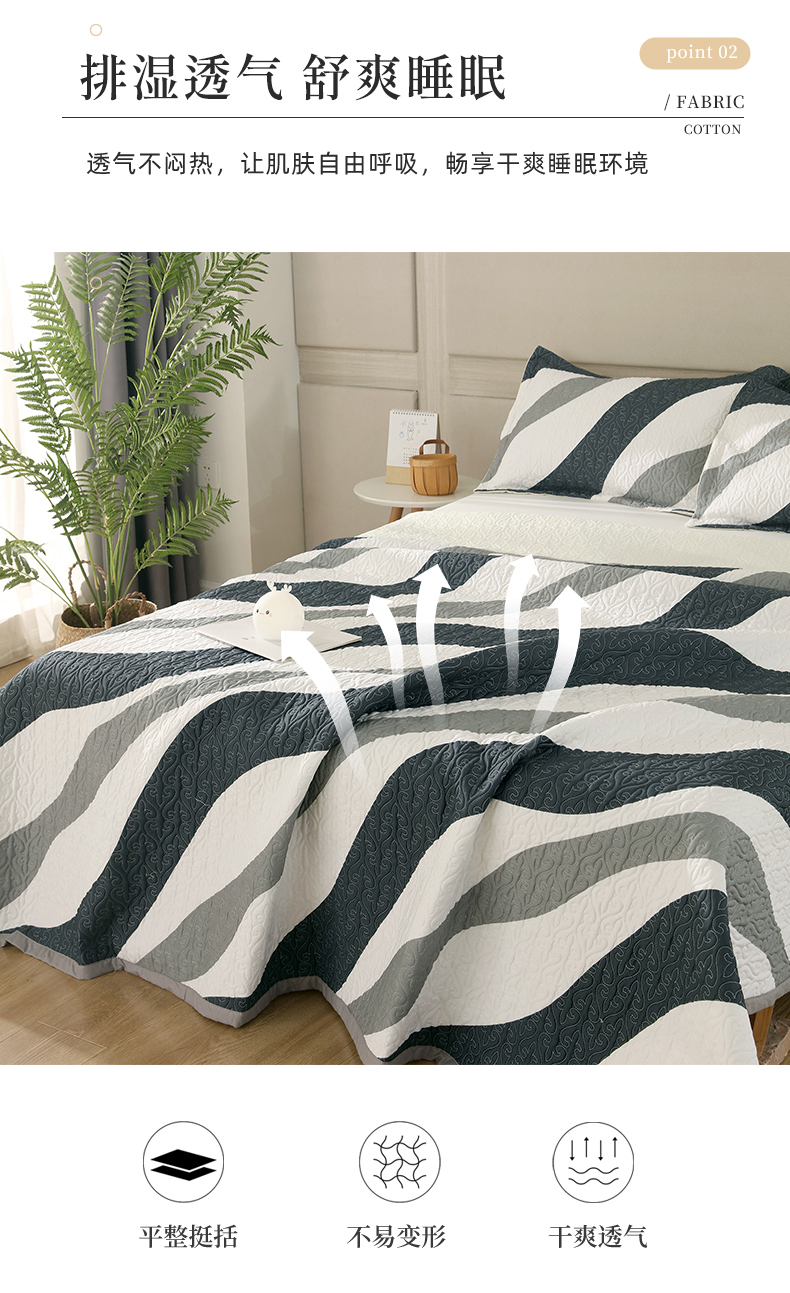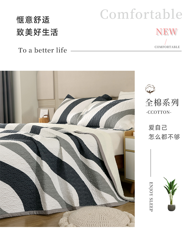 40支全棉夹棉绗缝13372简约款印花多功能床盖夏被凉席 极简主义