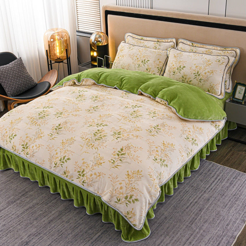 商品名称:千嘻汇 2023新款7斤牛奶绒金貂法莱绒床裙款保暖四件套仙草