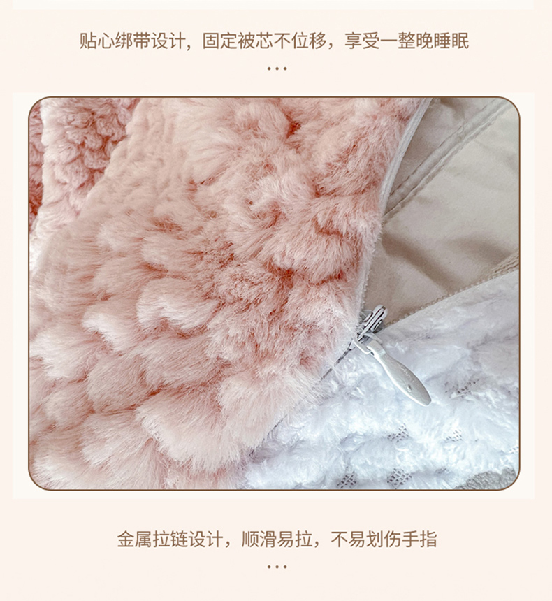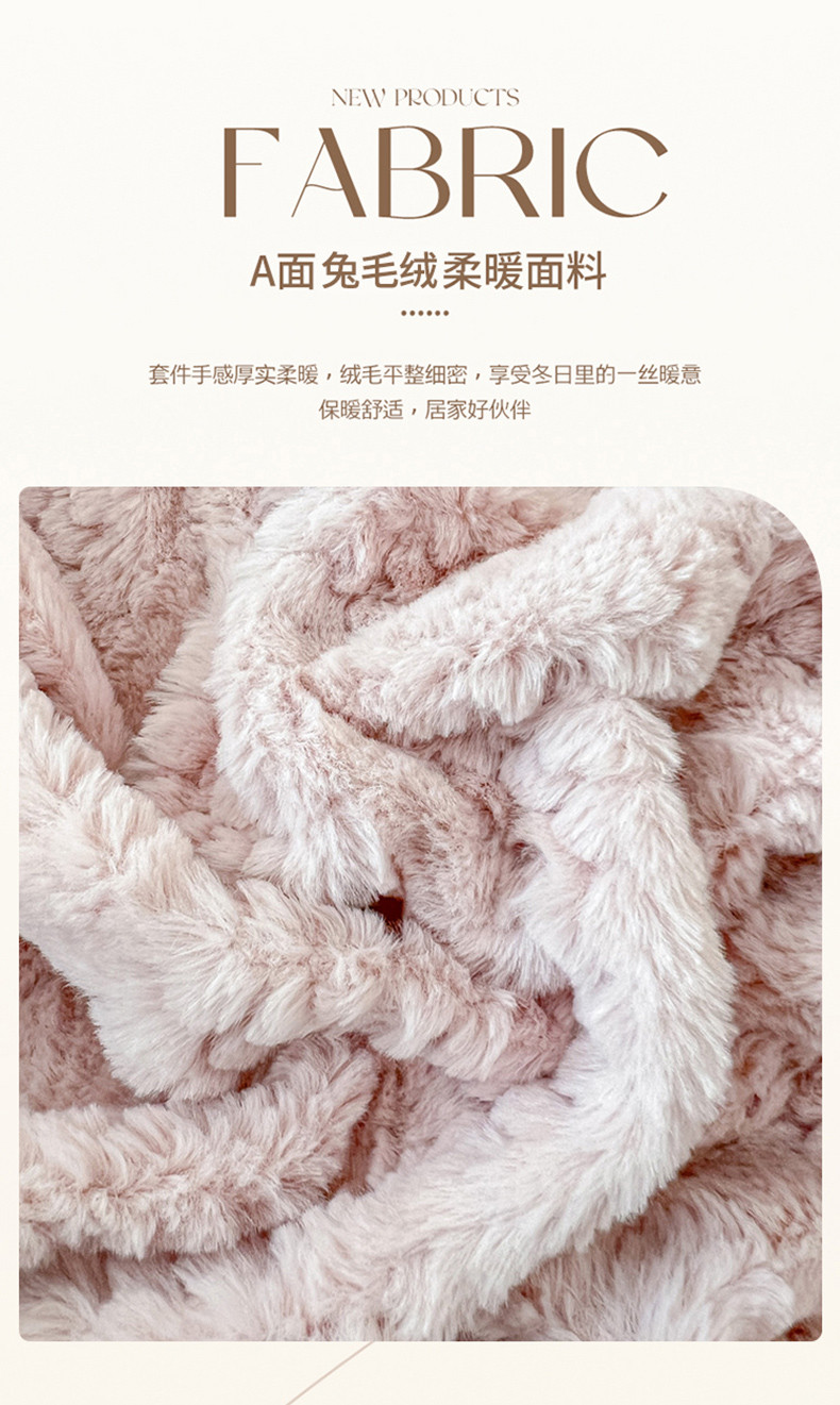 商品名称:菲儿家纺 2023新款小兔毛绒立体剪花四件套 小兔毛-波浪粉