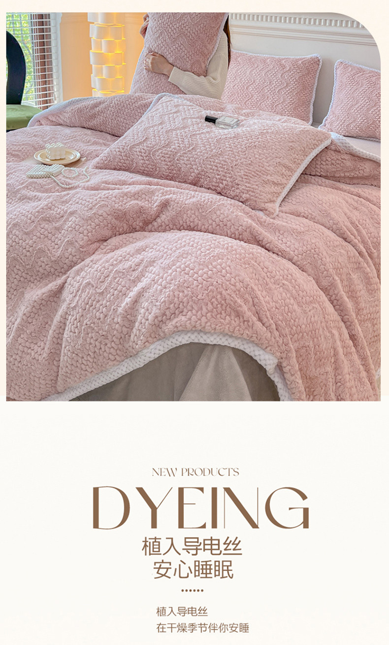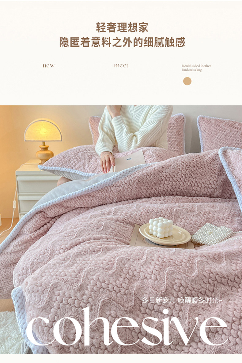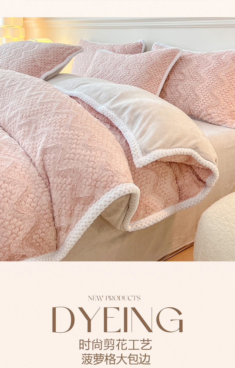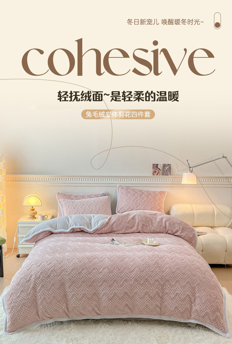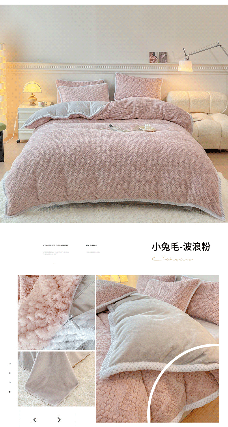 菲儿家纺 2023新款小兔毛绒立体剪花四件套 小兔毛-波浪粉