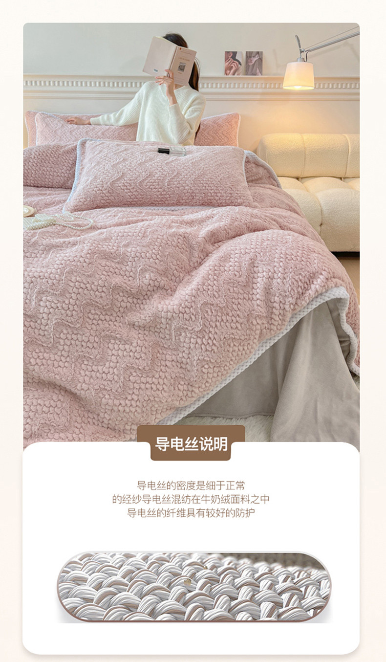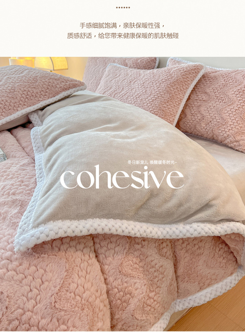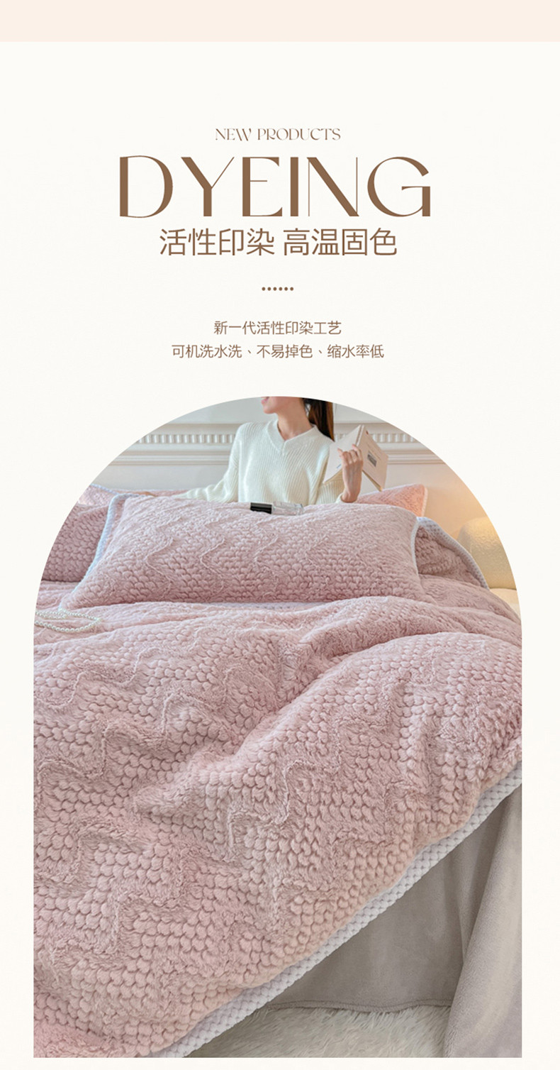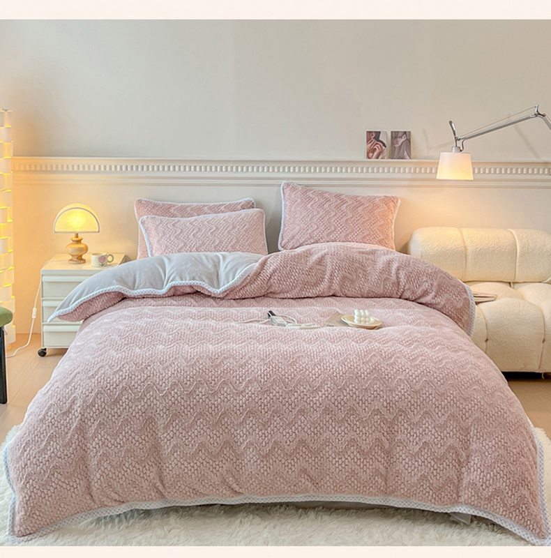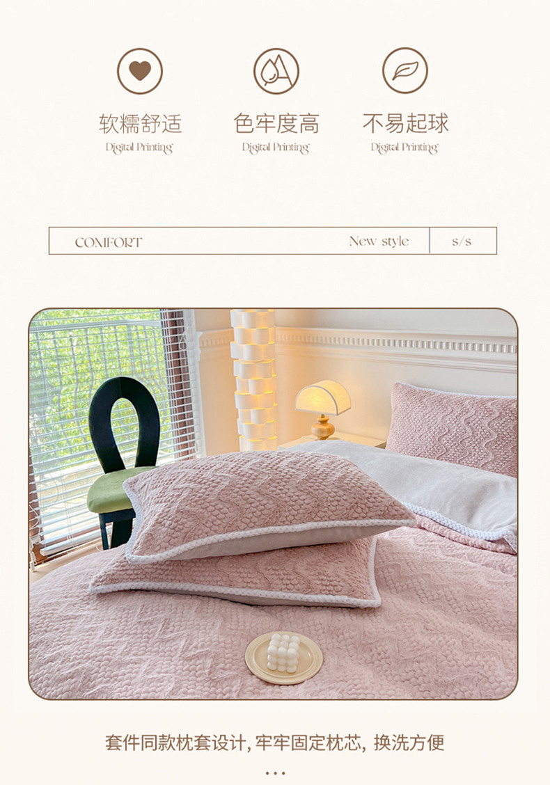 菲儿家纺 2023新款小兔毛绒立体剪花四件套 小兔毛-波浪粉