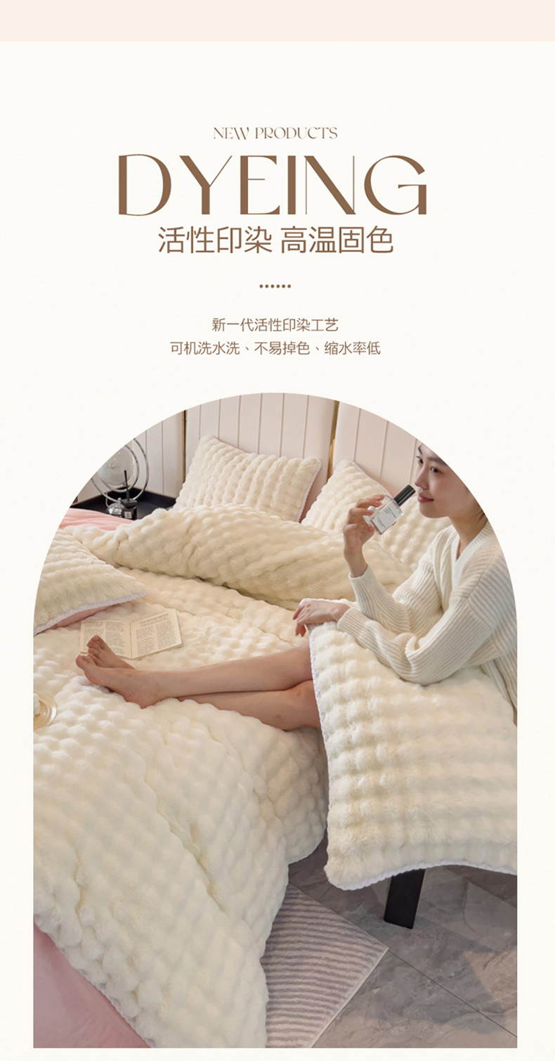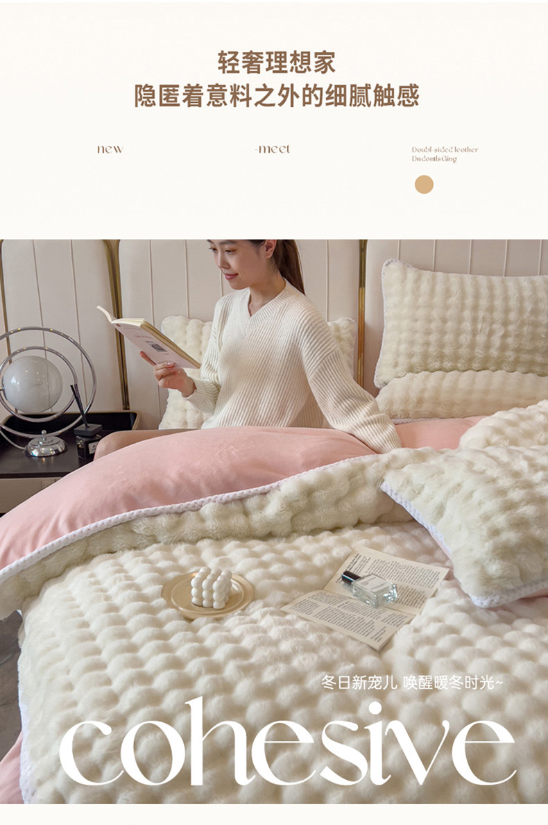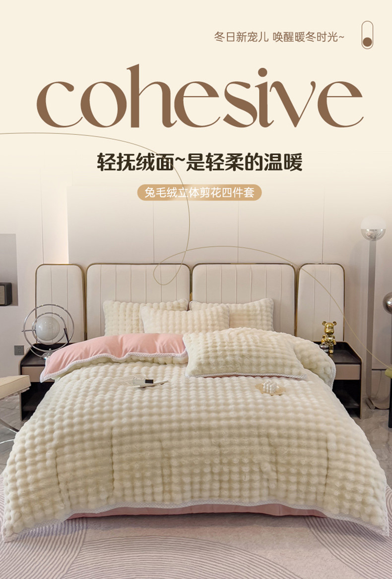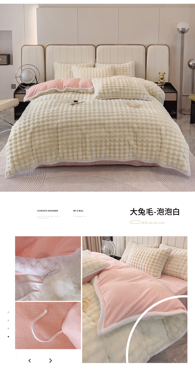 菲儿家纺 2023新款大兔毛绒立体剪花四件套 大兔毛-泡泡白