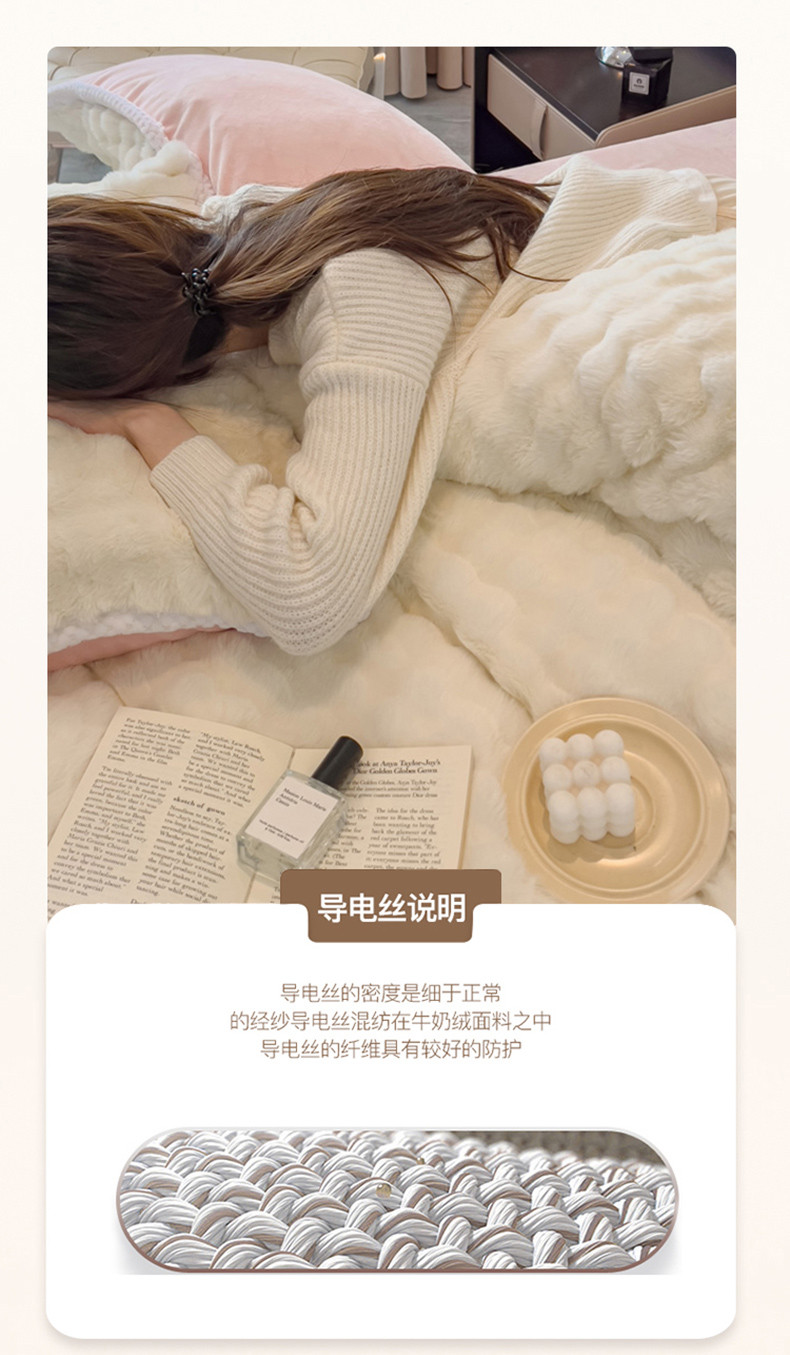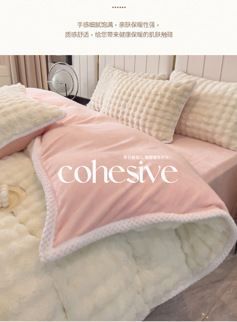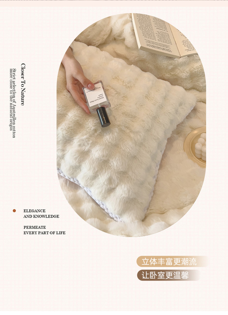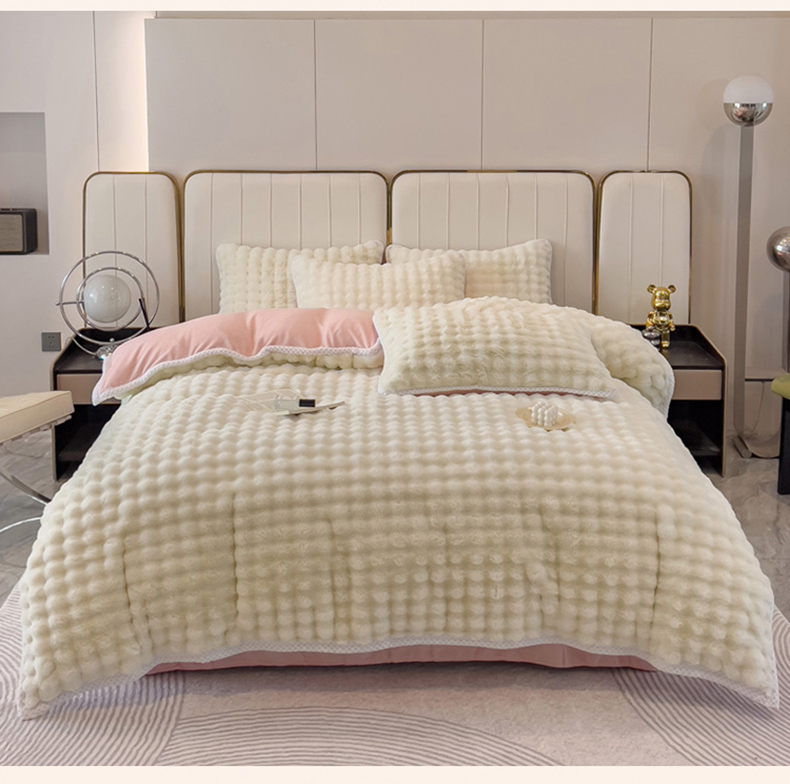 菲儿家纺 2023新款大兔毛绒立体剪花四件套 大兔毛-泡泡白
