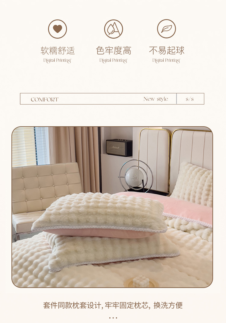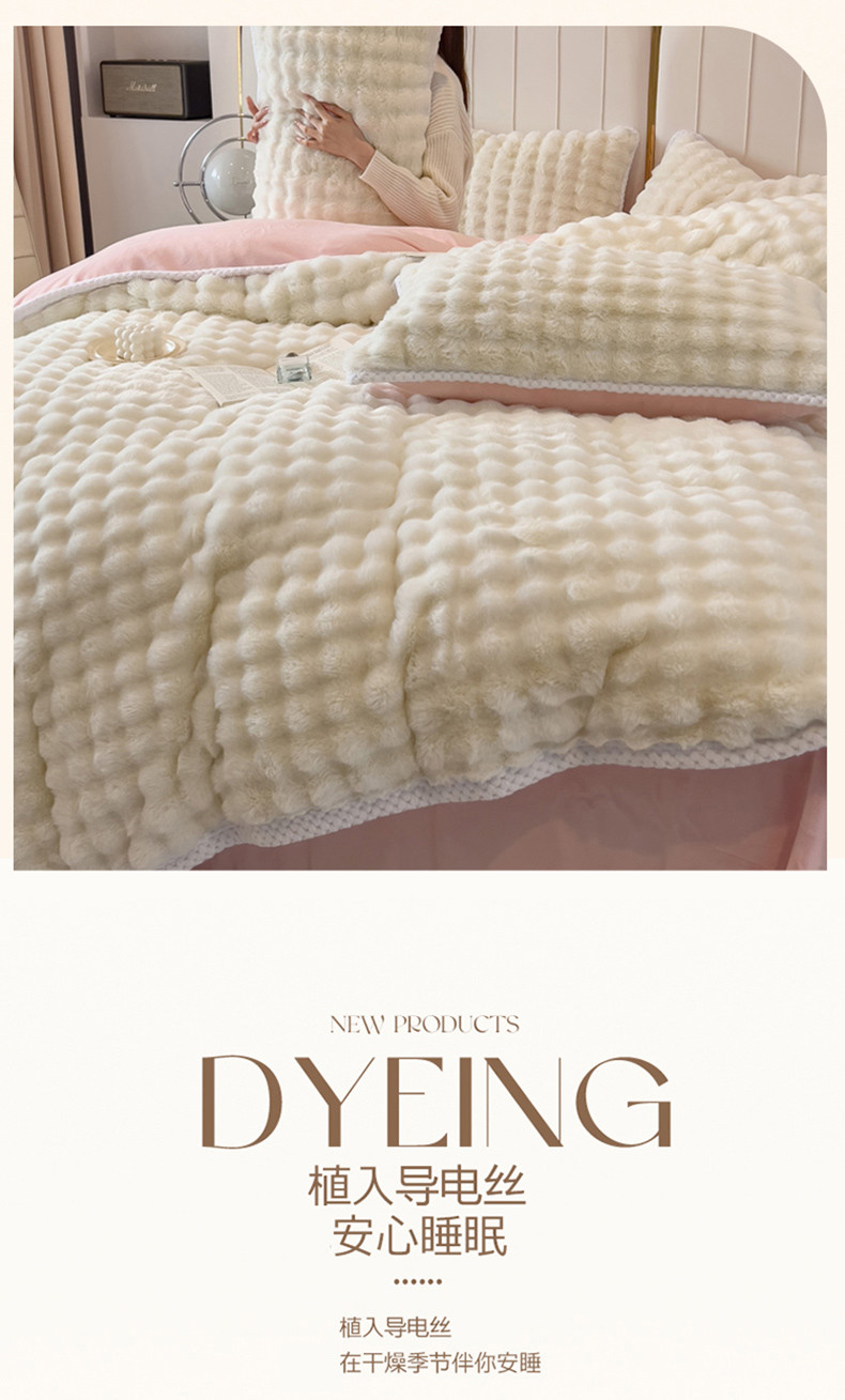 (总)菲儿家纺 2023新款大兔毛绒立体剪花四件套,大兔毛-泡泡白,大兔毛-泡泡粉,大兔毛-泡泡绿,大兔毛-条纹白,大兔毛-条纹粉