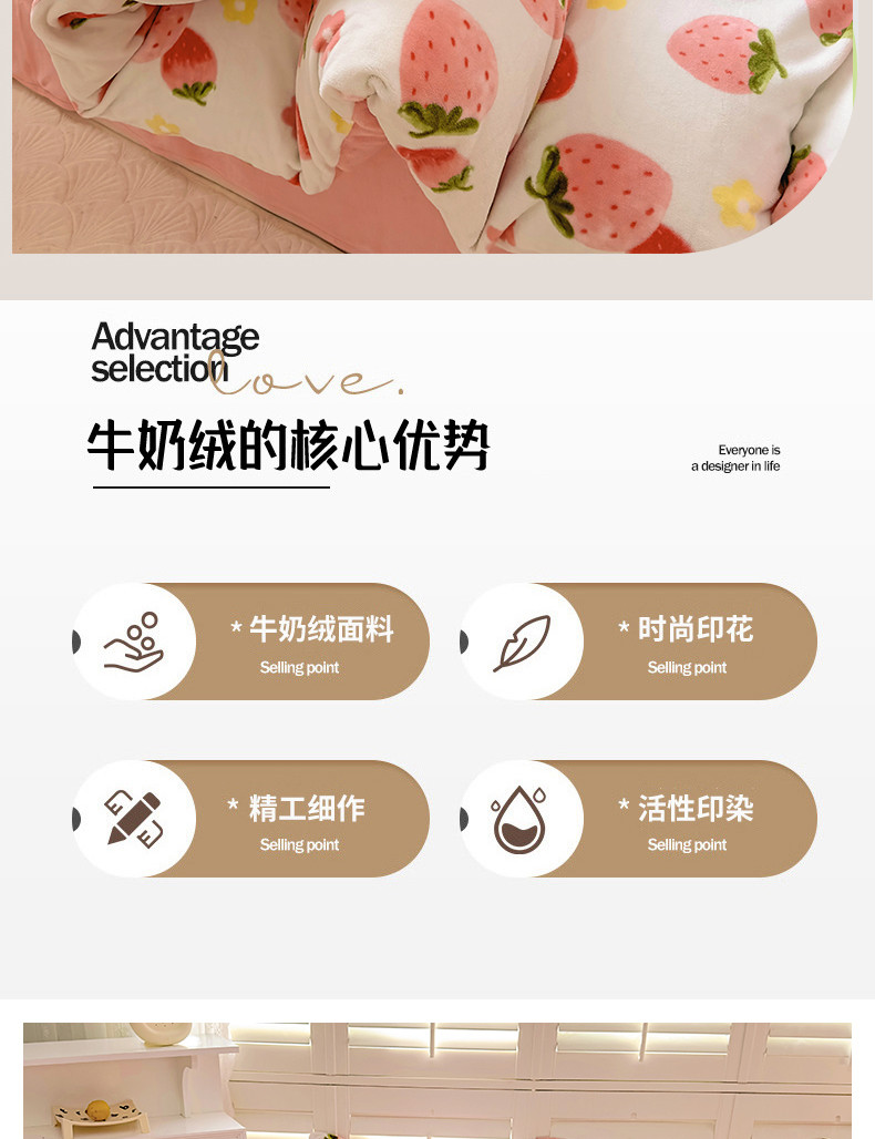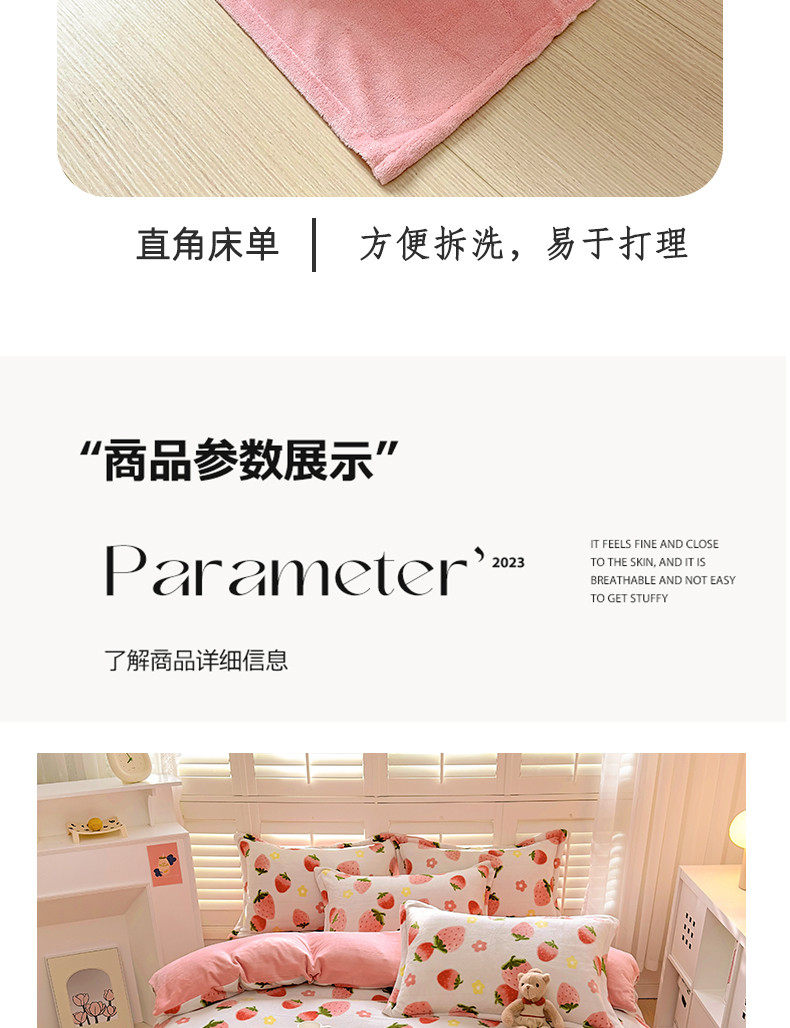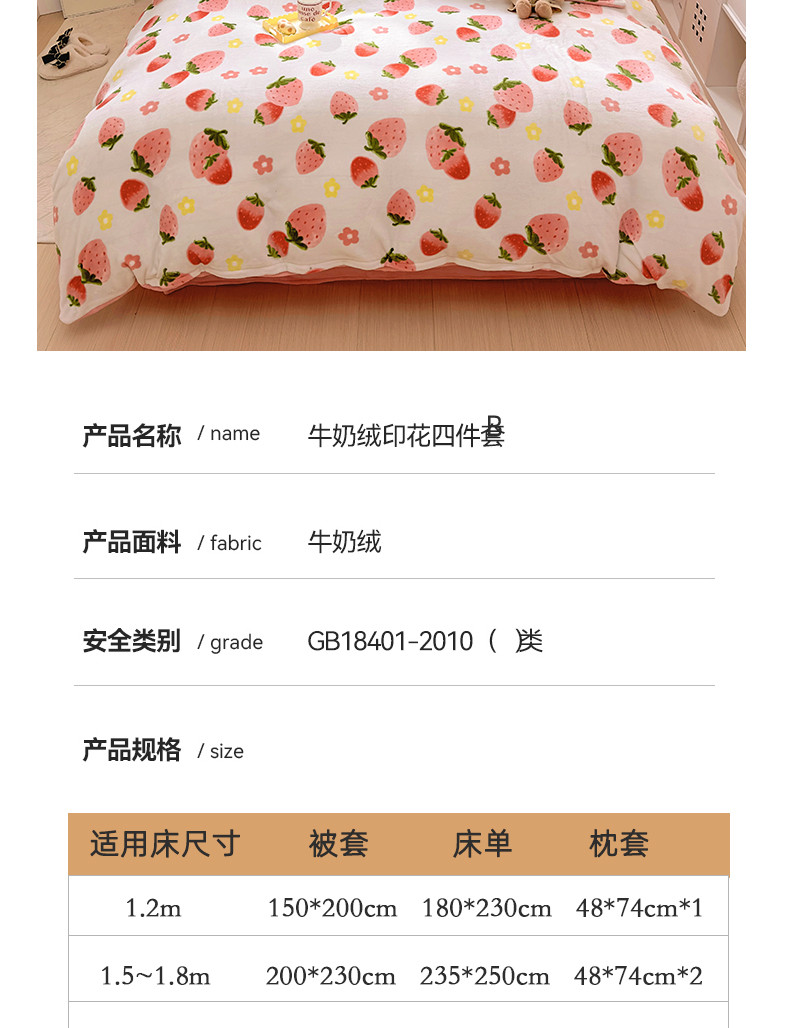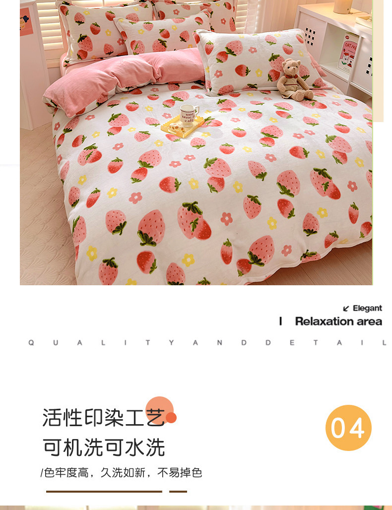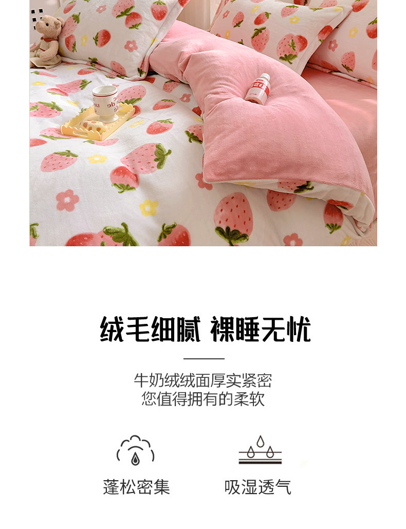 当前位置: 91家纺网 > 商品网购 > 床品套件 > 四件套 > 牛奶绒四件套 > 百寐 2023新款加厚牛奶绒小清新可爱花卉卡通保暖学生三四件套 草莓派
