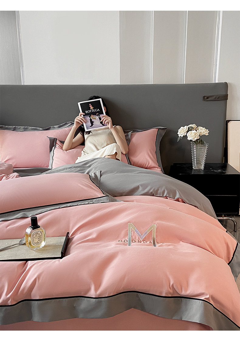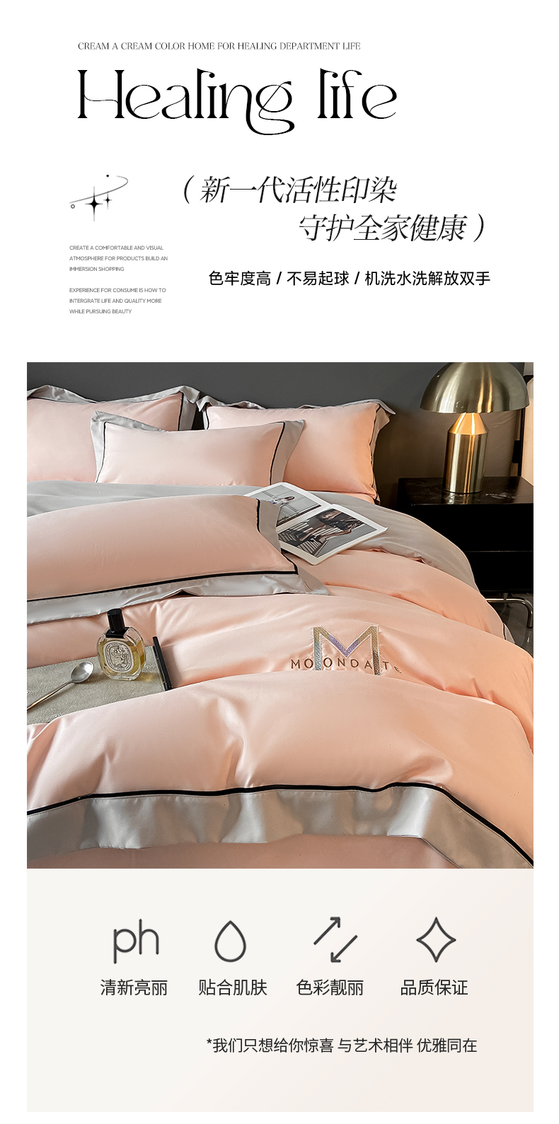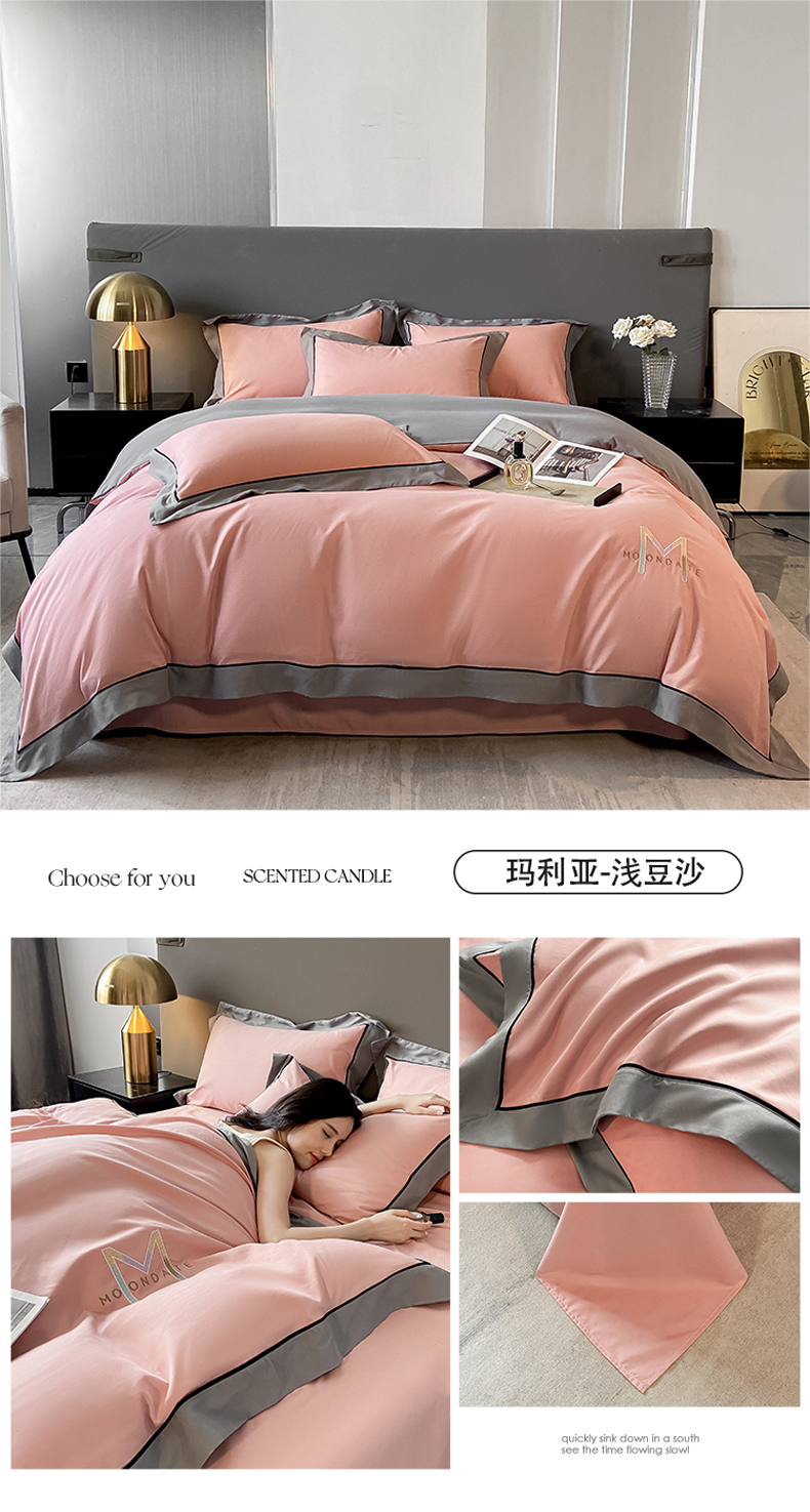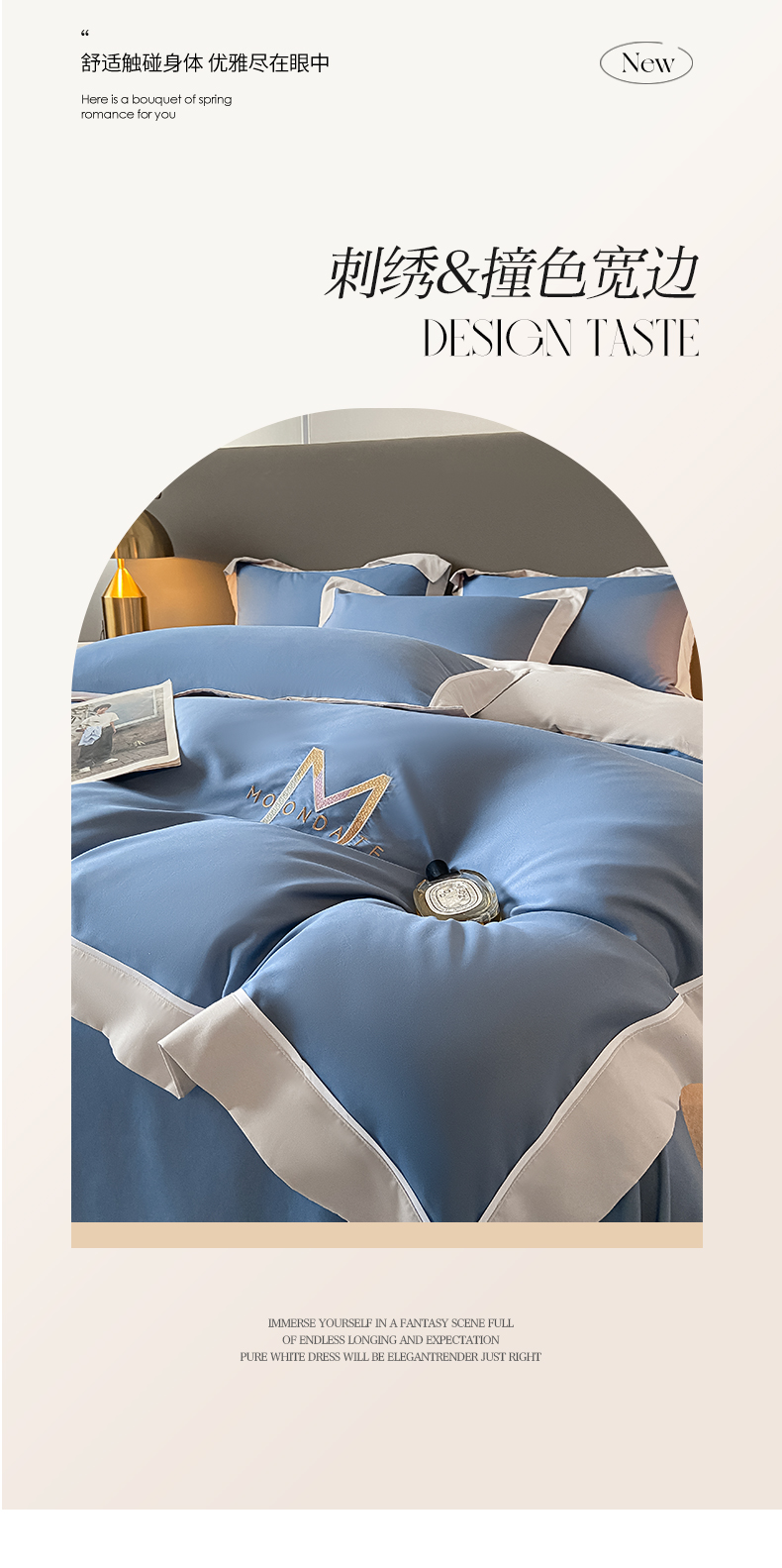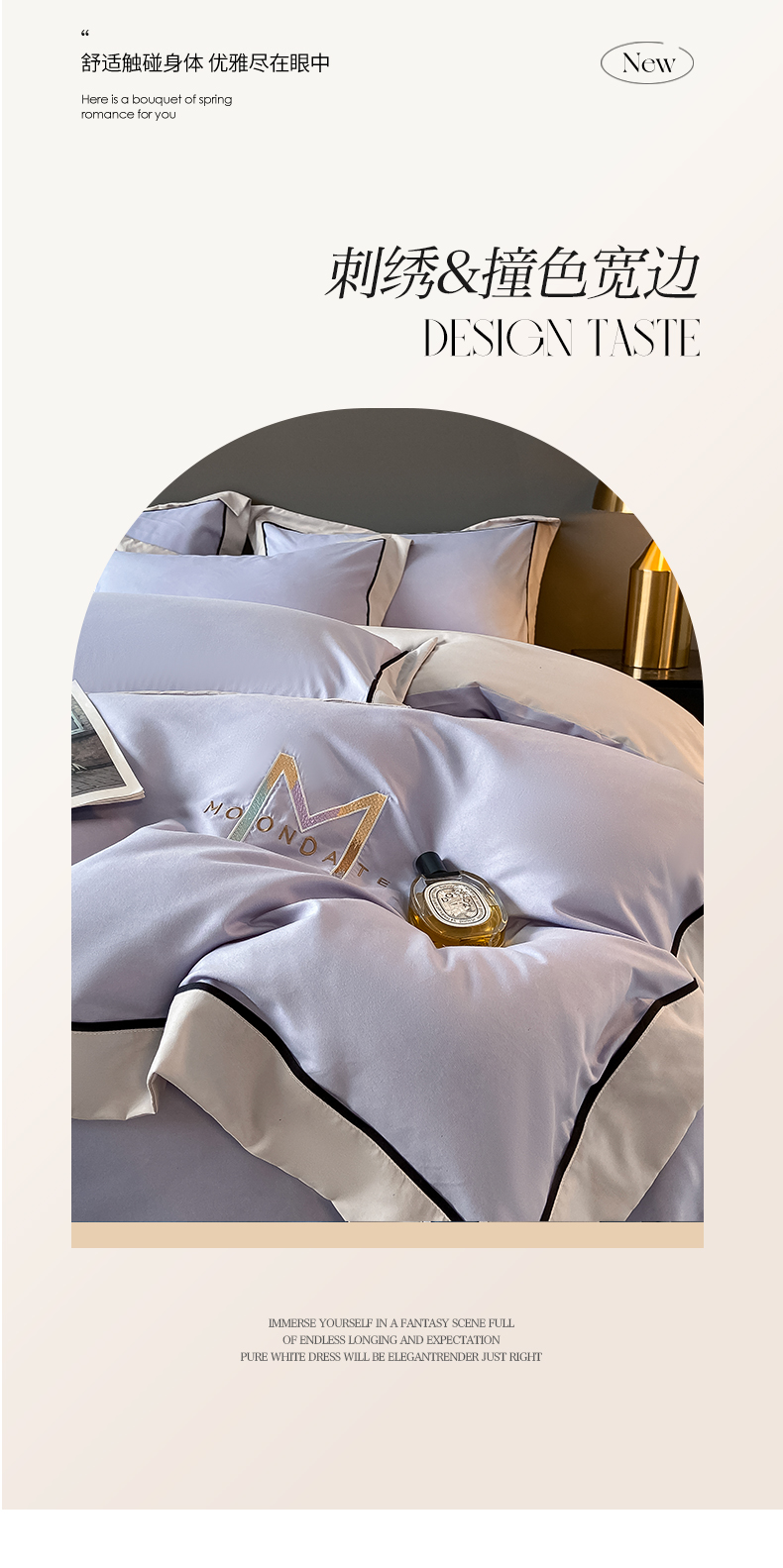 (总)遇见家居生活馆 2025新款A类牛奶绒玛利亚绒宽边四件套(控价:标准178,加大188,床笠款183),靓粉+星辰灰,丁香紫+星辰灰,清澈蓝+星辰灰,奶昔白+亚麻驼,经典灰+香槟,宾利蓝+星辰灰