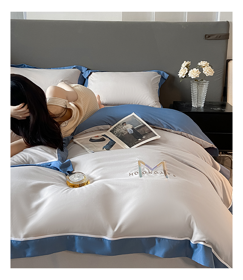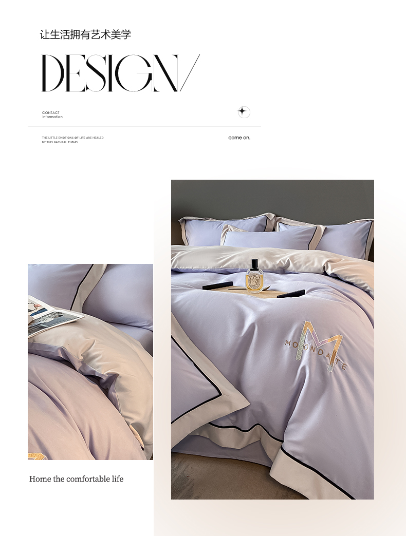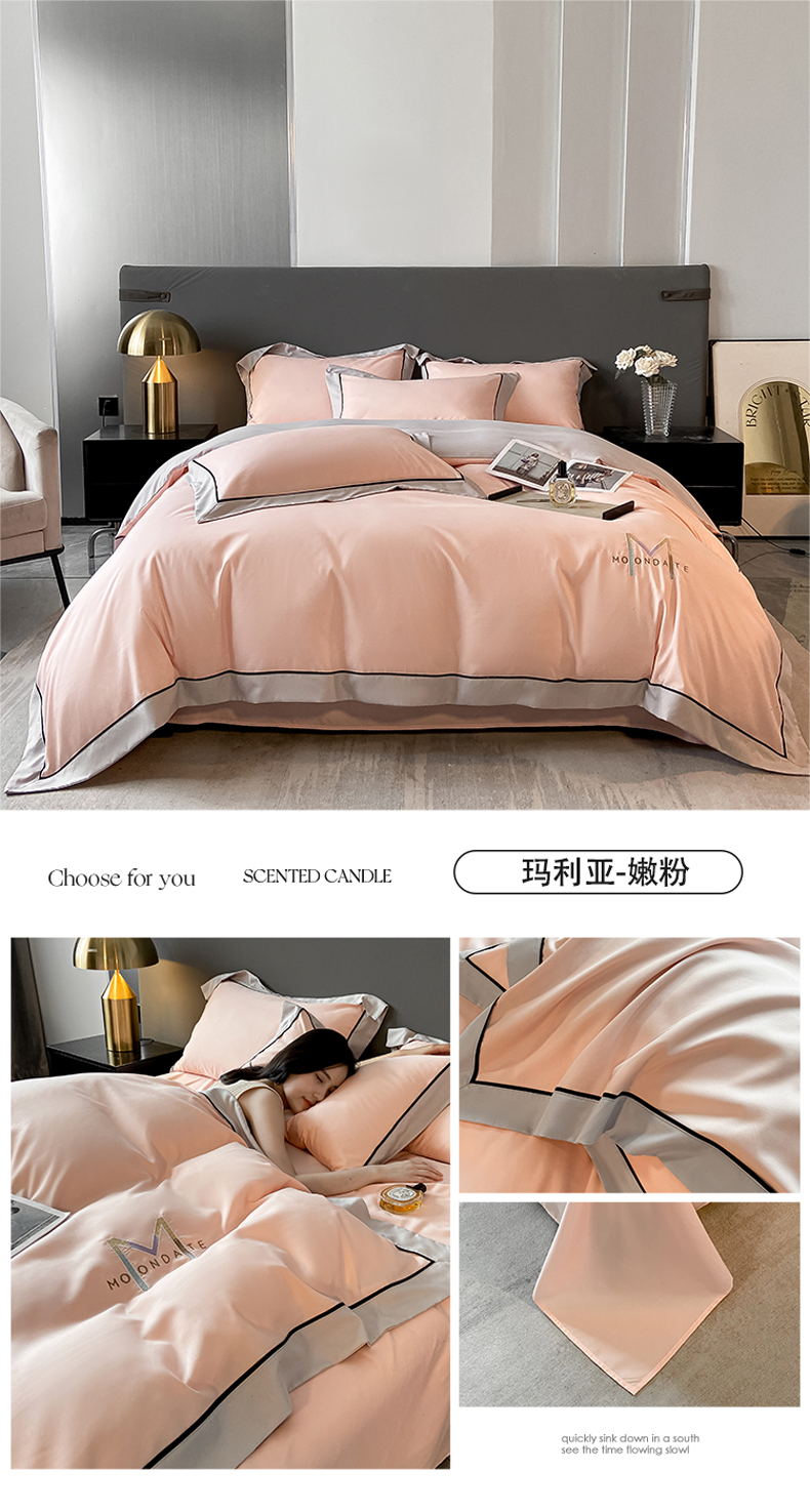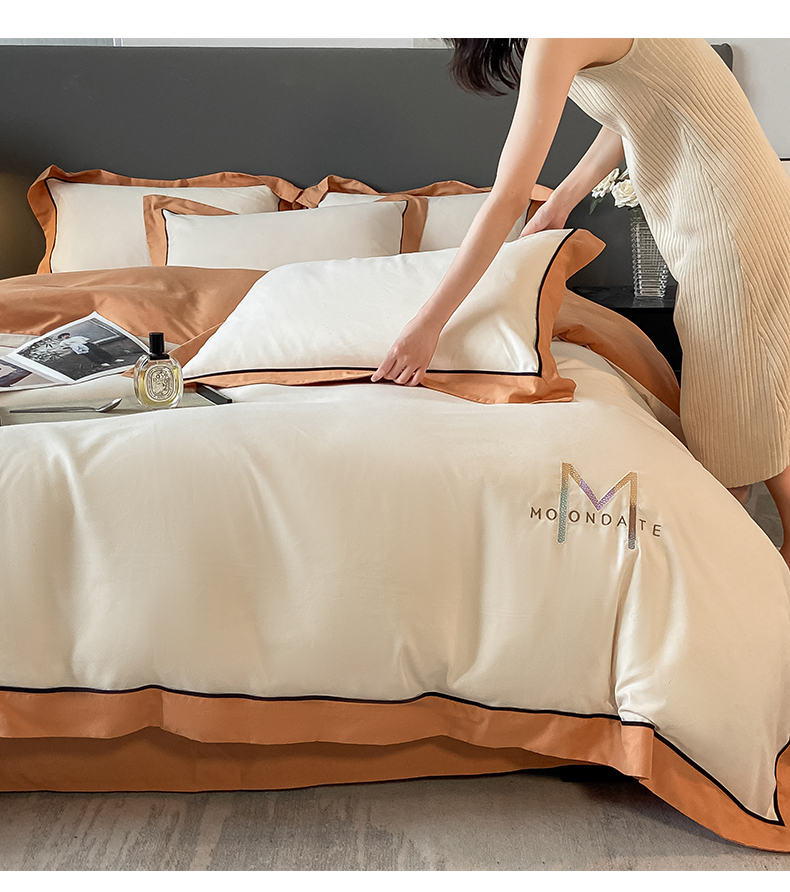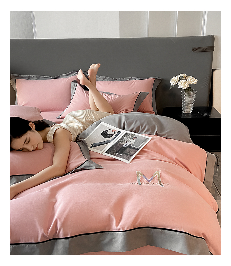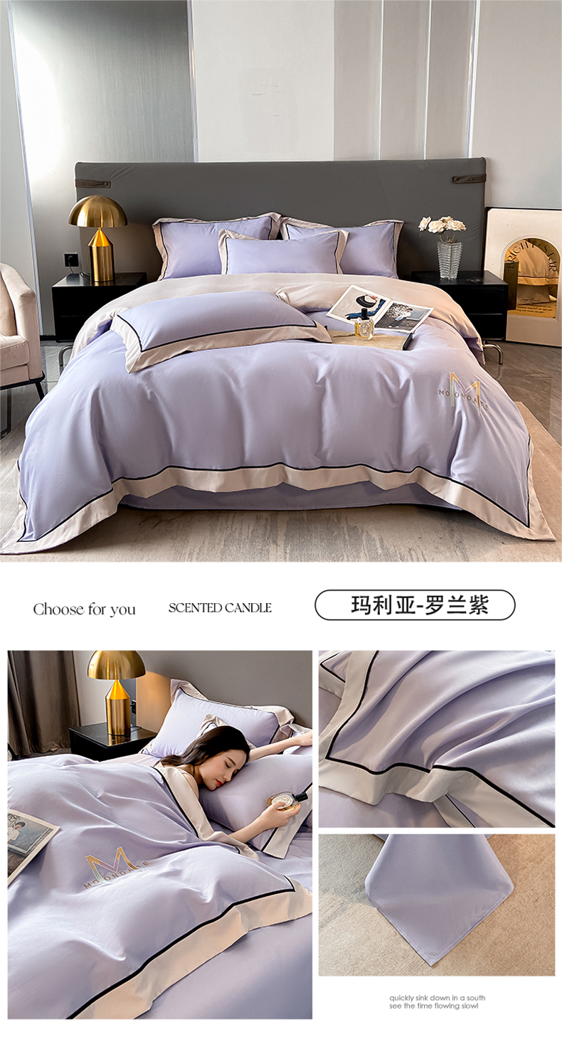 (总)遇见家居生活馆 2025新款A类牛奶绒玛利亚绒宽边四件套(控价:标准178,加大188,床笠款183),靓粉+星辰灰,丁香紫+星辰灰,清澈蓝+星辰灰,奶昔白+亚麻驼,经典灰+香槟,宾利蓝+星辰灰