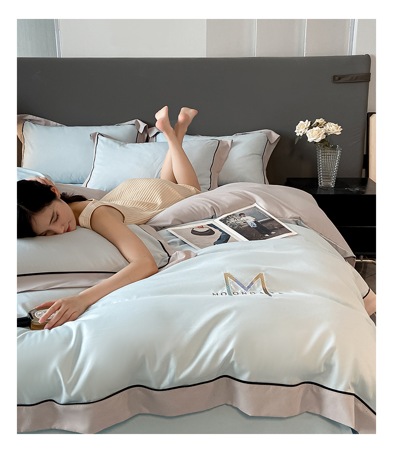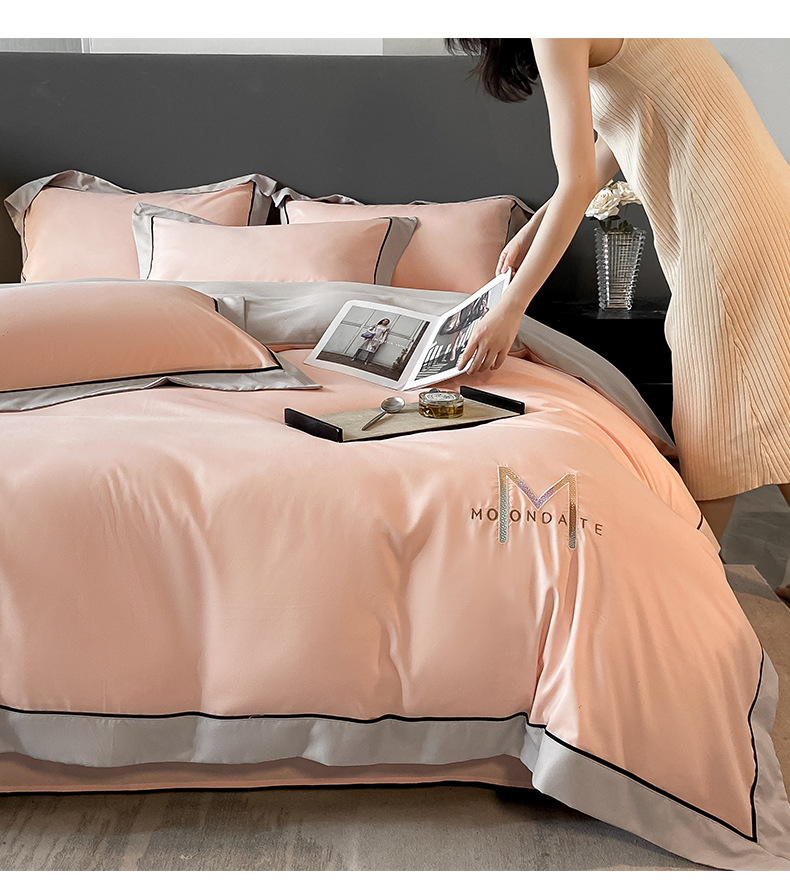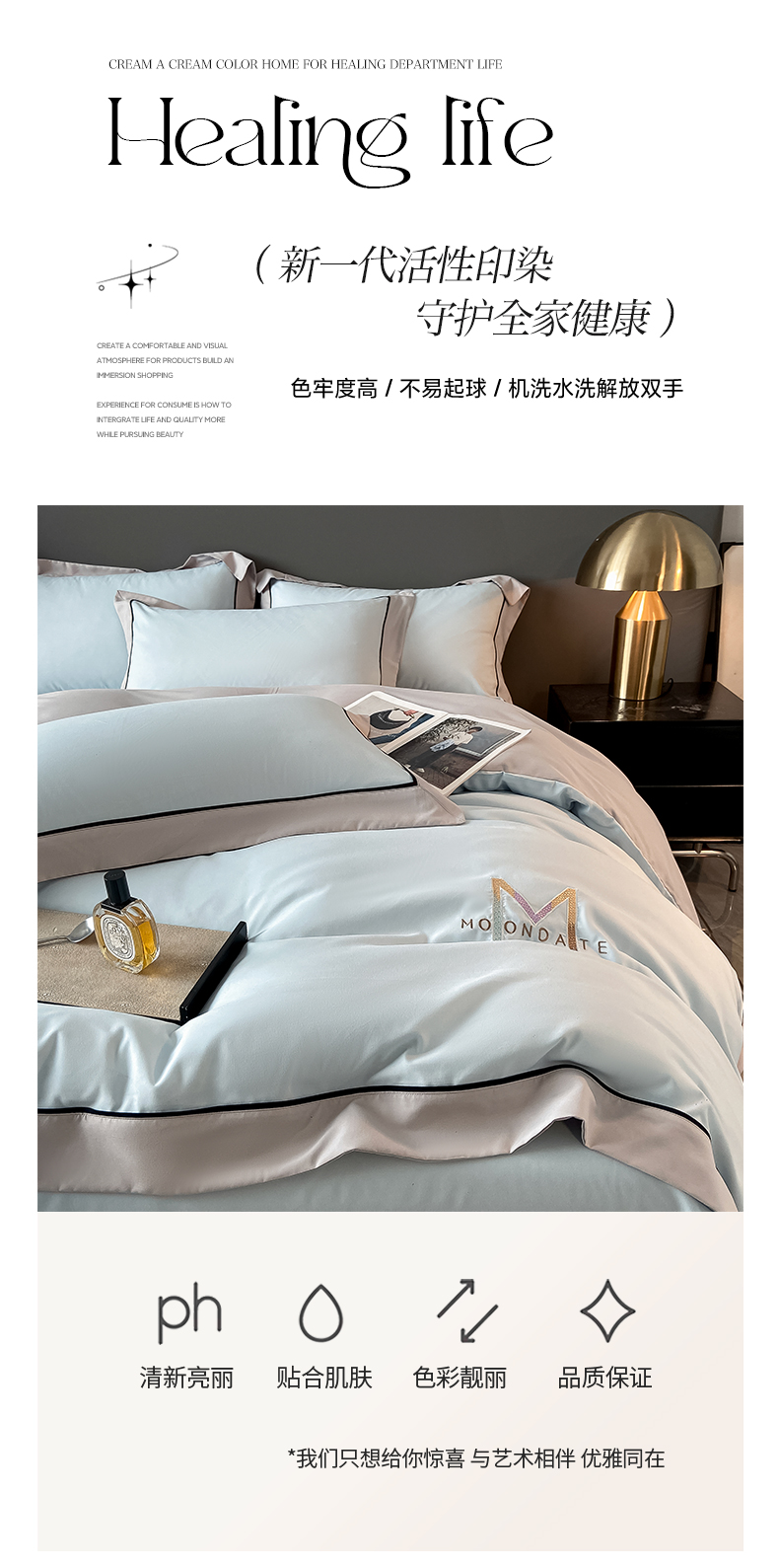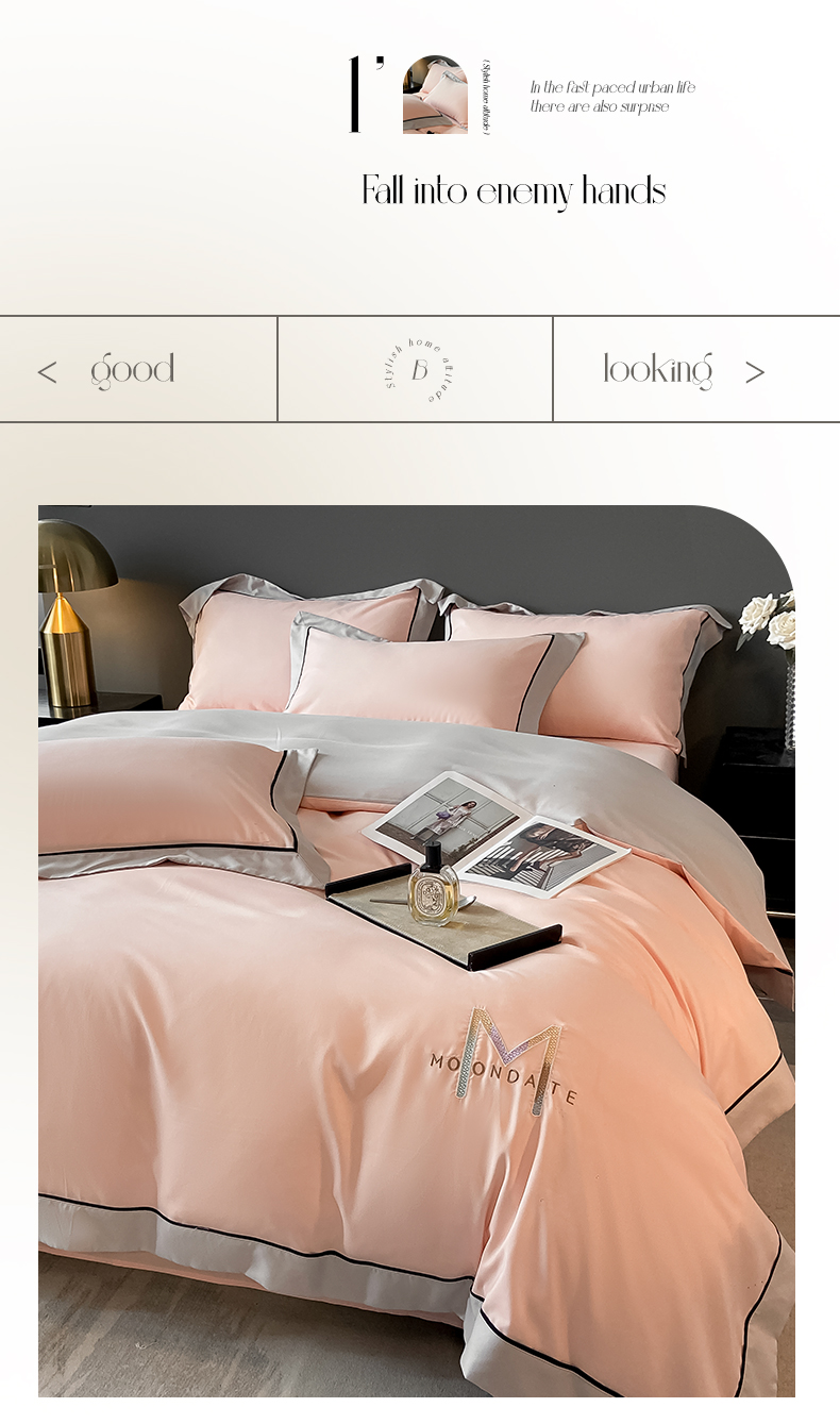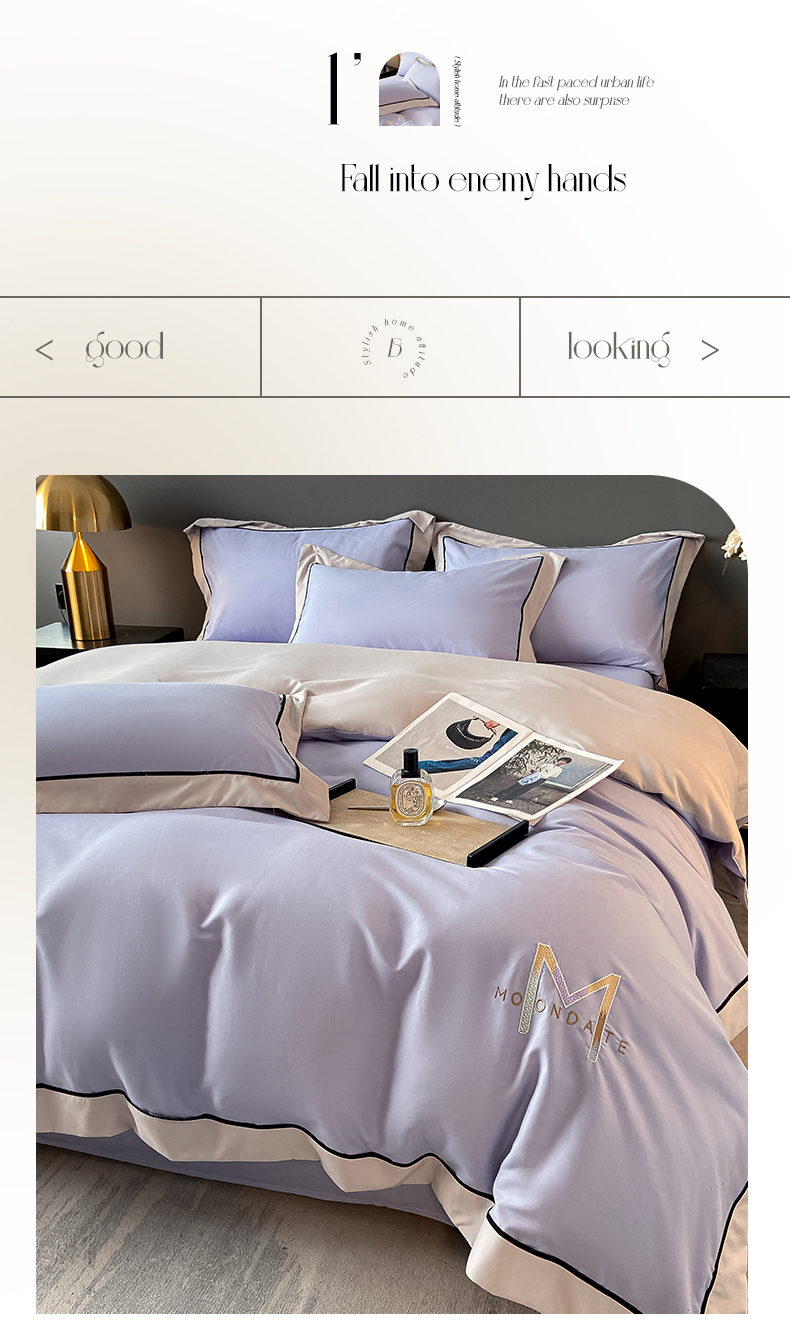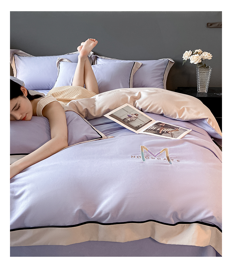 (总)遇见家居生活馆 2025新款A类牛奶绒玛利亚绒宽边四件套(控价:标准178,加大188,床笠款183),靓粉+星辰灰,丁香紫+星辰灰,清澈蓝+星辰灰,奶昔白+亚麻驼,经典灰+香槟,宾利蓝+星辰灰