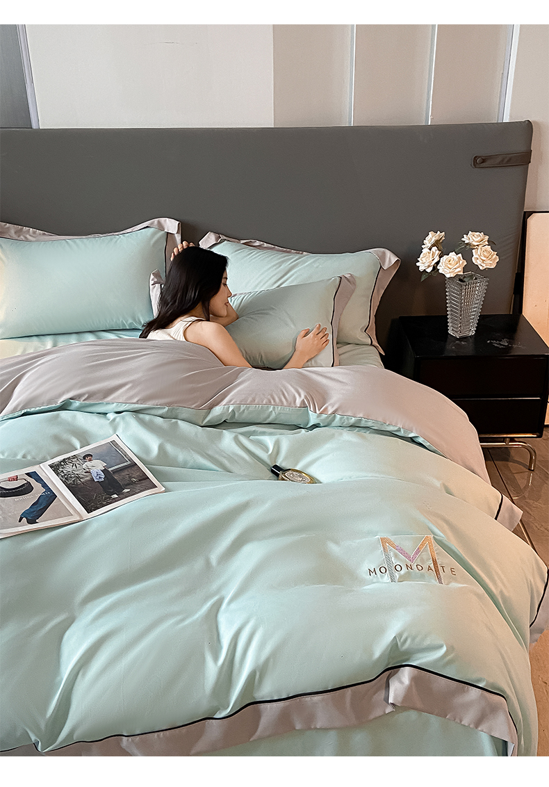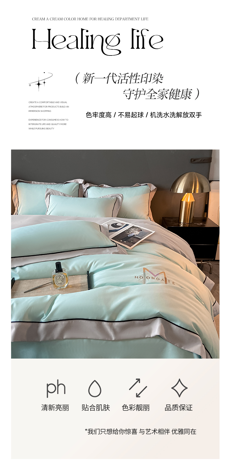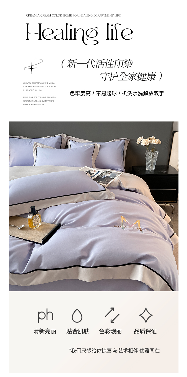 (总)2025新款小清新全棉纯棉四件套-若溪,麦田绿,茉莉奶白,霞光紫,杏花粉,雪山粉