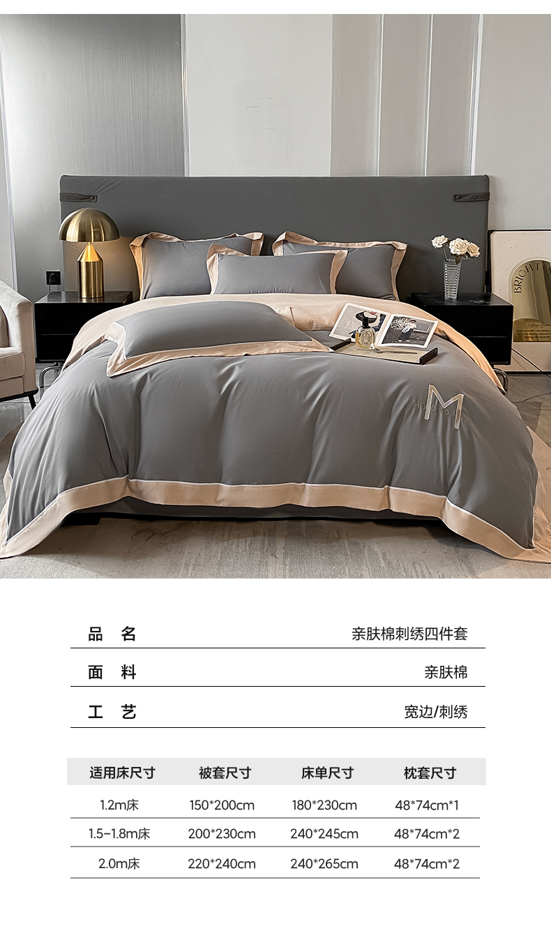 商品名称:(总)遇见家居生活馆 2025新款亲肤棉磨毛刺绣四件套(控价:标准128,加大138)