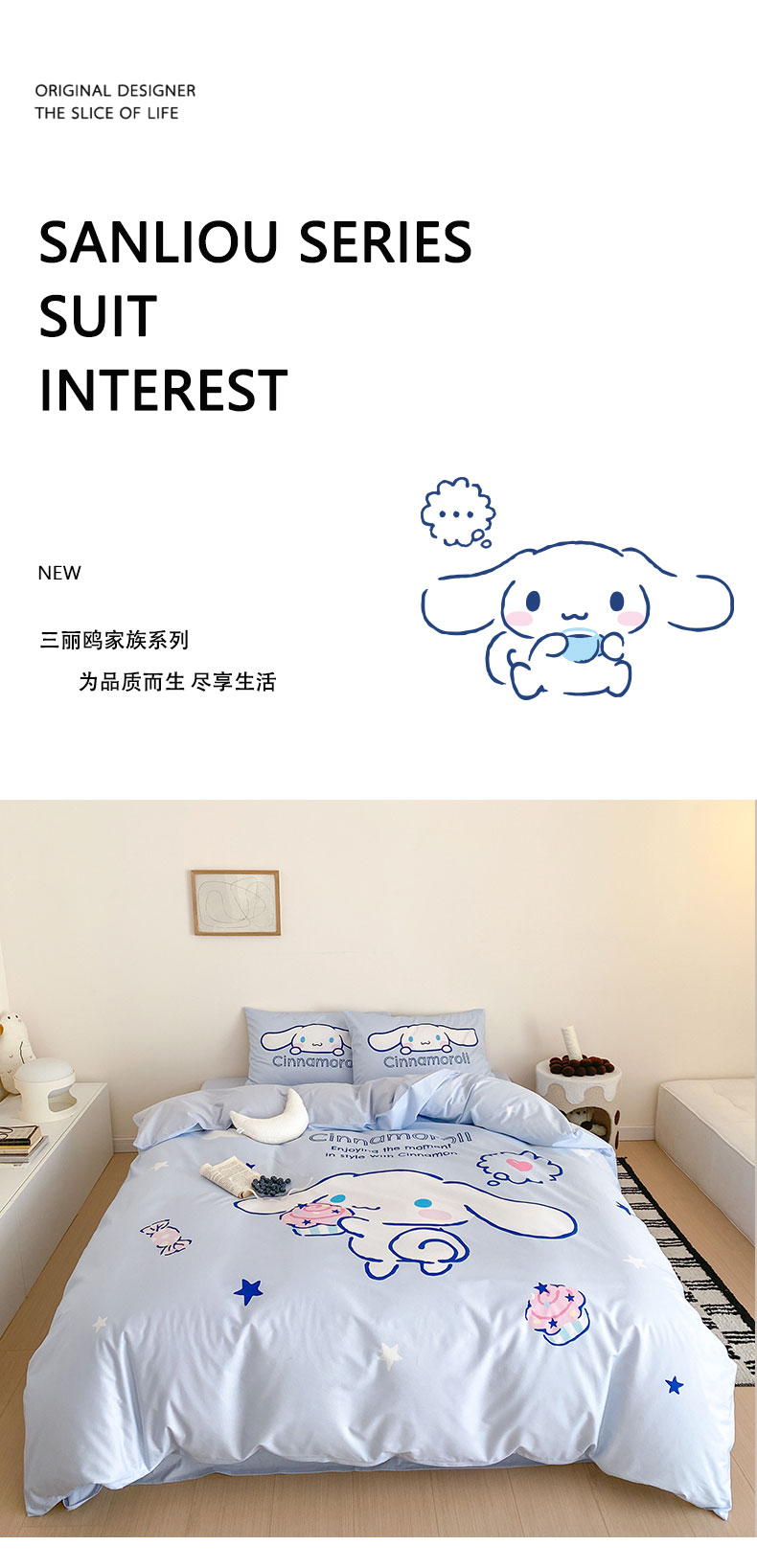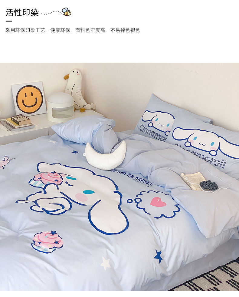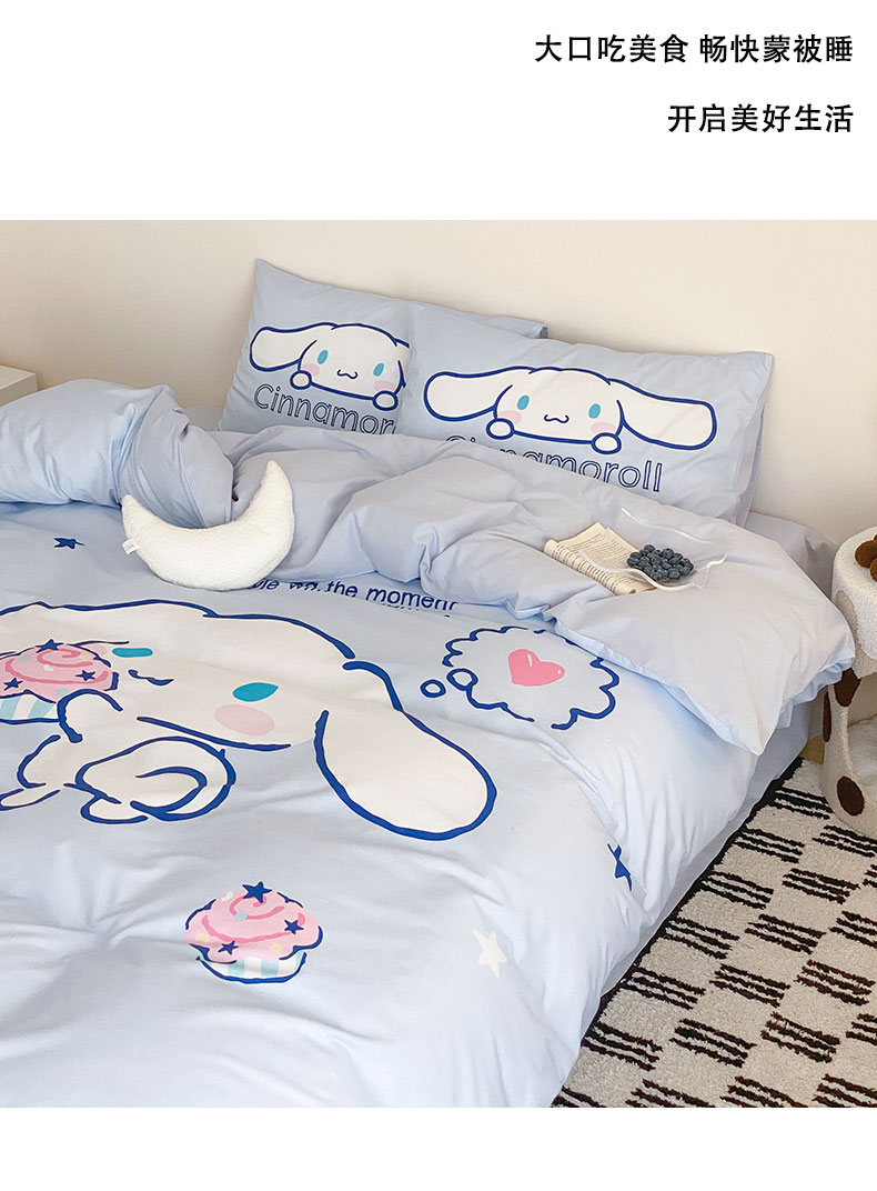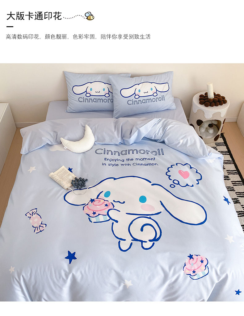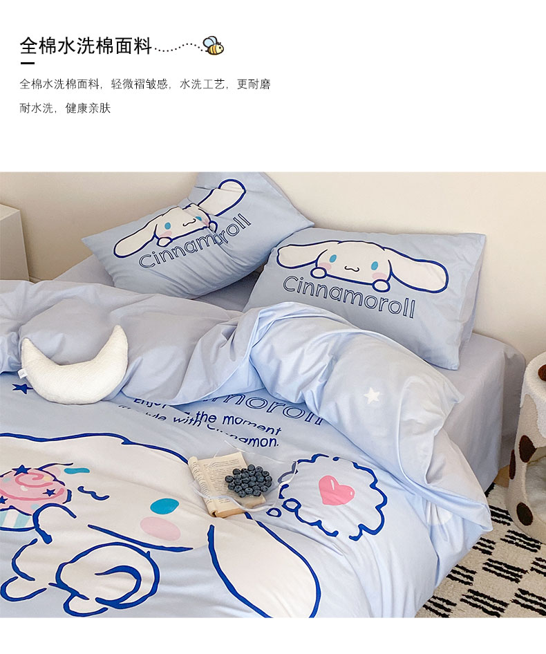 商品名称:猪先生 2023新款全棉水洗棉三丽鸥大版卡通印花四件套 大版星空玉桂狗