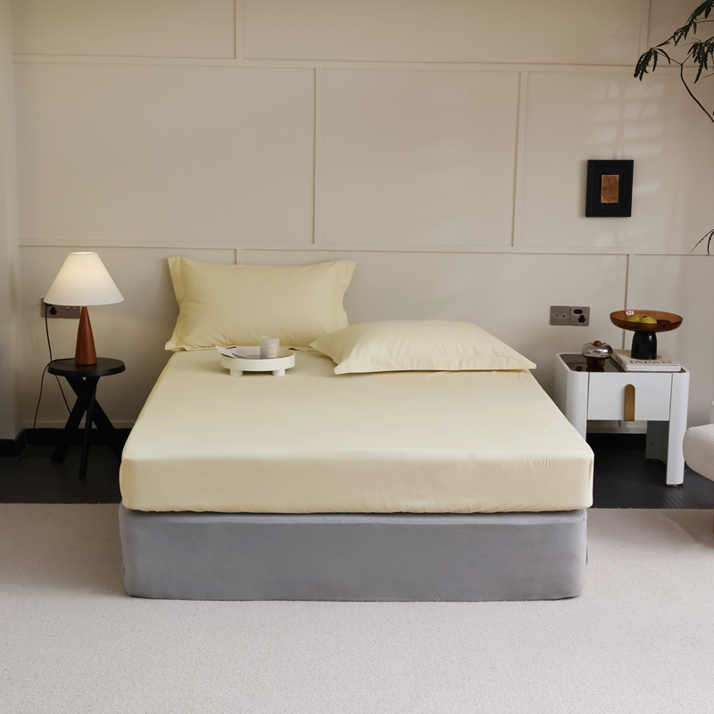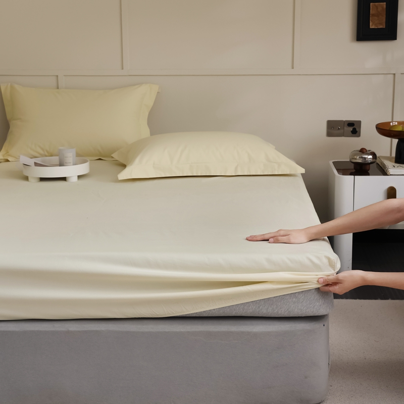 蕊姿家居 2023新款A类加厚50s超柔全棉长绒棉磨毛床笠 米黄