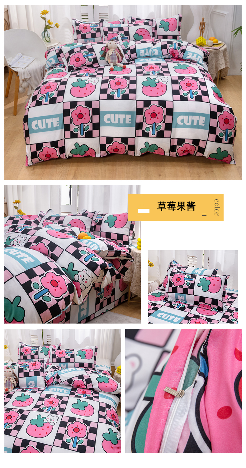 商品名称:2023新款亲肤棉美棉芦荟棉四件套美棉(8月)新花色 草莓果酱