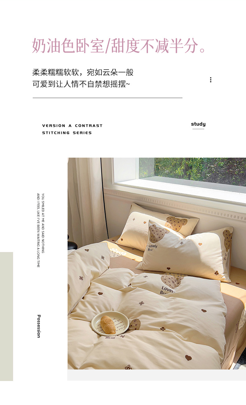 (总)田野 2026新款水洗棉提花人字小清新系列四件套,彩虹糖,草莓奶绿,粉雾细条,红樱漾蓝,晴空蓝条,甜心熊,雾蓝蝴蝶结