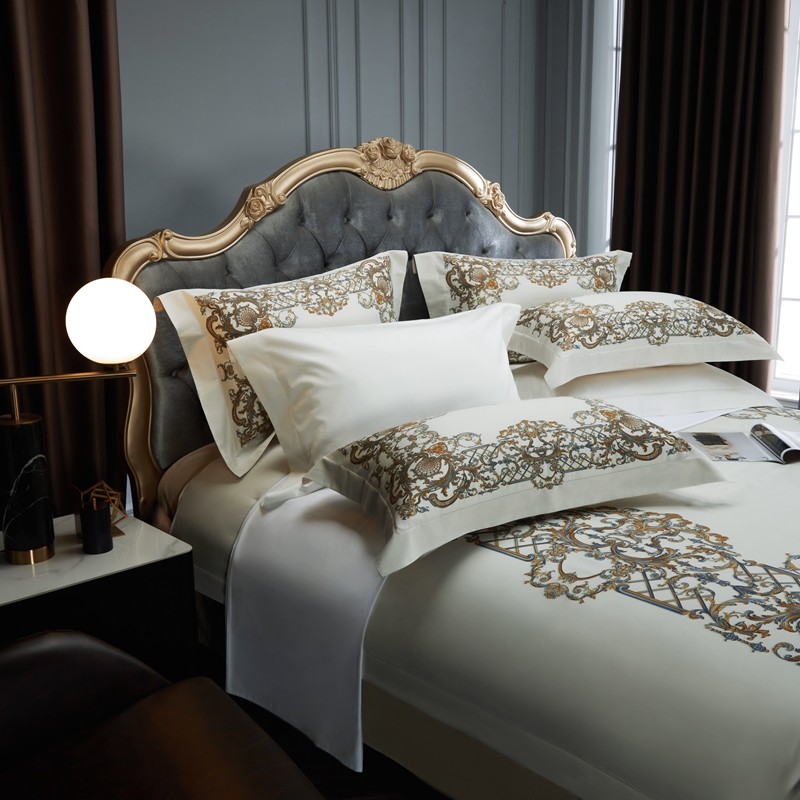 (总)缔缦 2024新款定织新布种S140系列刺绣拼角工艺四件套-威廉皇室,威廉皇室 贵族白,威廉皇室 酒红,威廉皇室 深灰