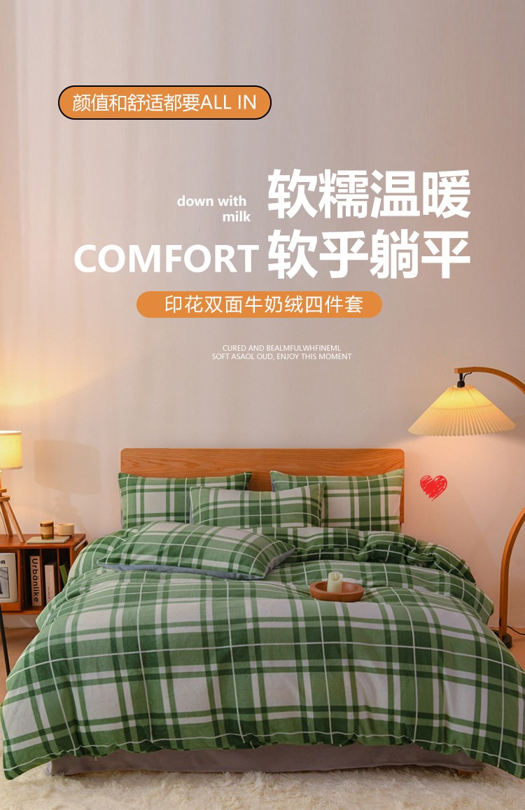 当前位置: 91家纺网 > 商品网购 > 床品套件 > 四件套 > 牛奶绒四件套 > 2023新款无印风印花双面牛奶绒四件套 绿大格