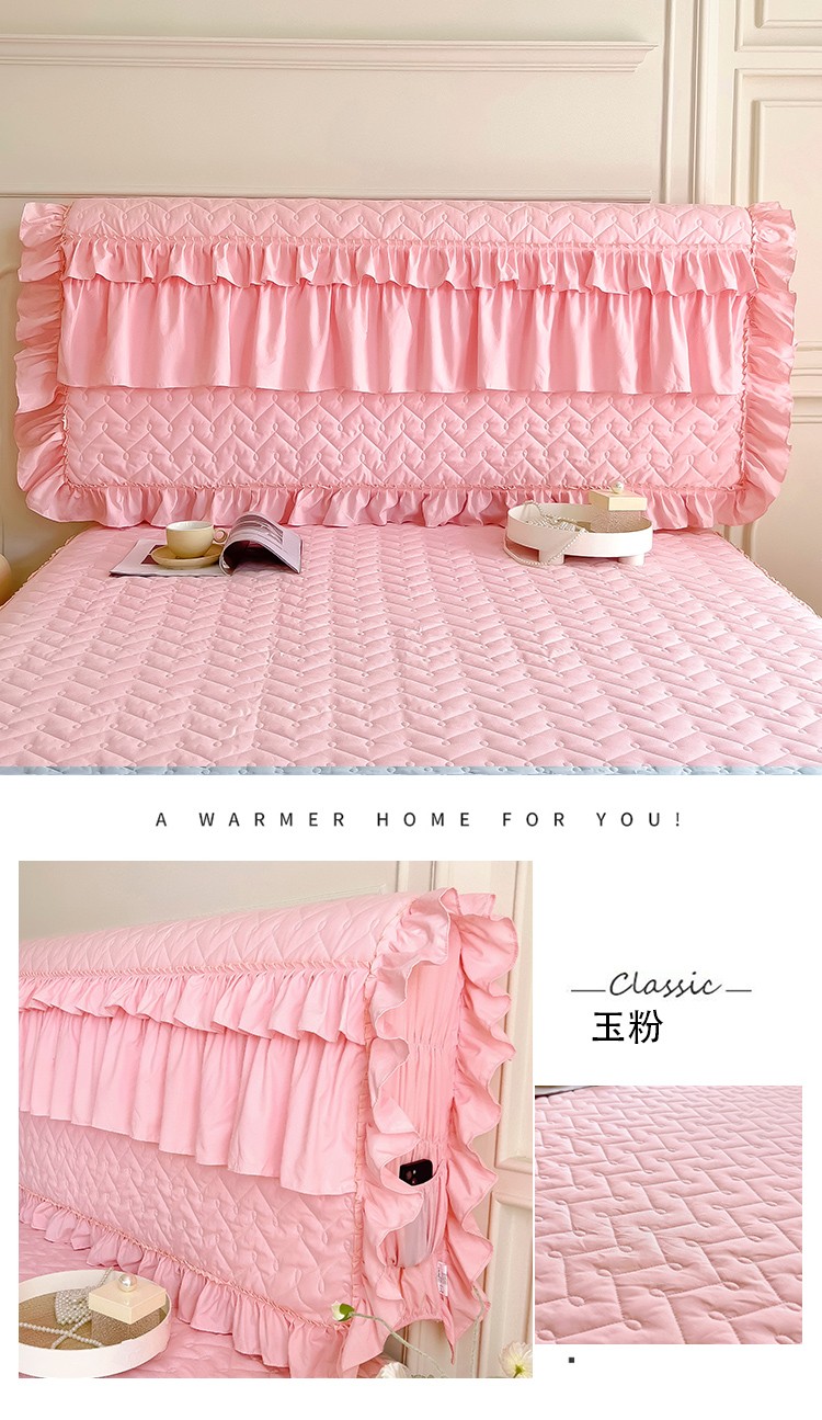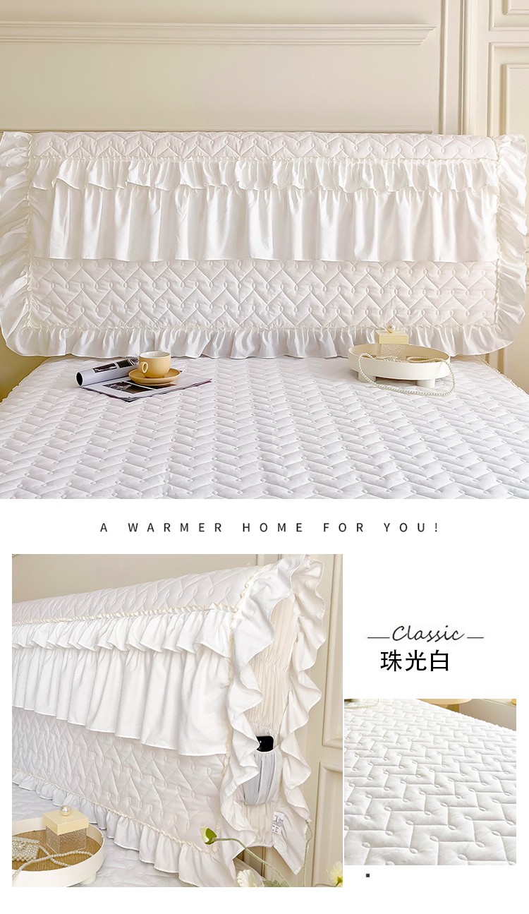 (总)十个点家纺 2025新款千鸟格磨毛绗缝夹棉纯色花边床头罩,经典白色,经典兰色,经典浅灰,经典浅驼,经典深灰,经典玉粉
