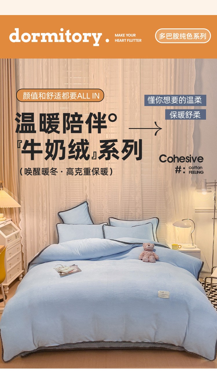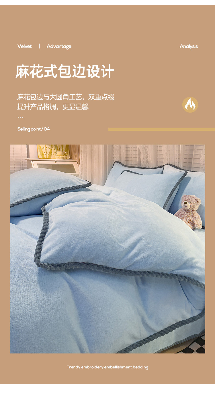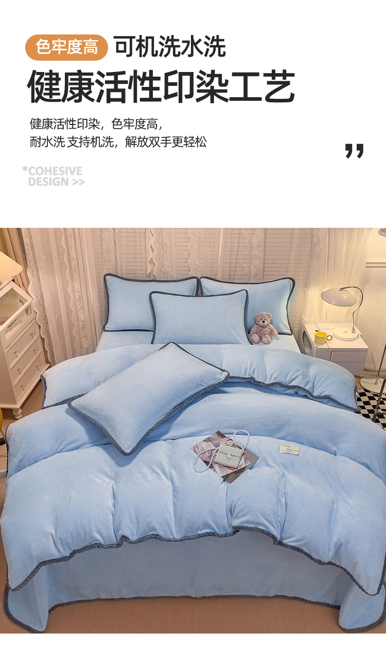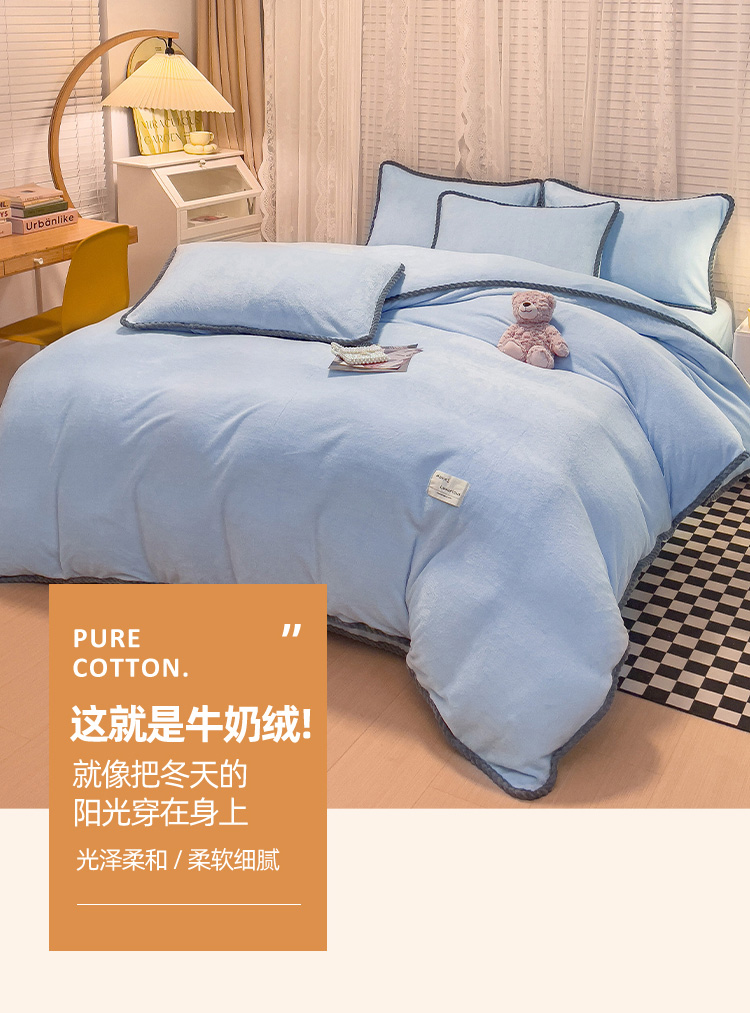 商品名称:2023新款加厚牛奶绒纯色优雅四件套 优雅-天蓝