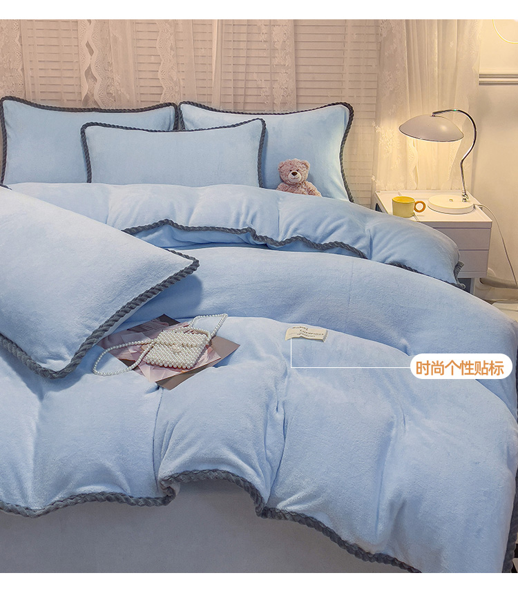 2023新款加厚牛奶绒纯色优雅四件套 优雅-天蓝