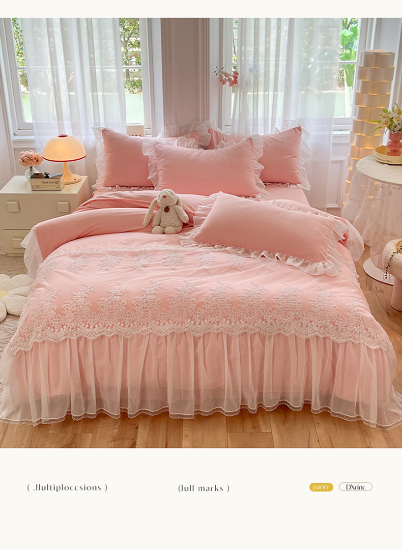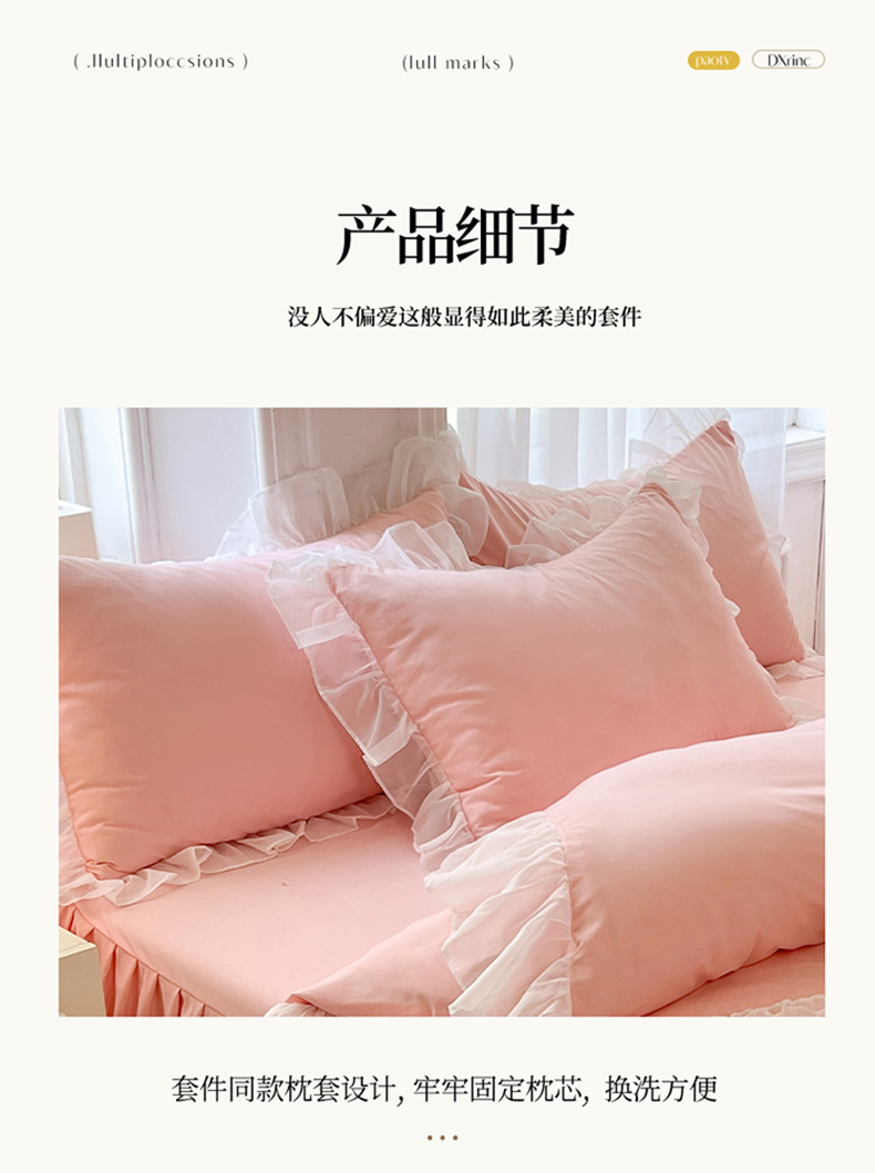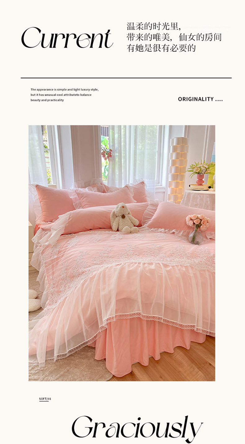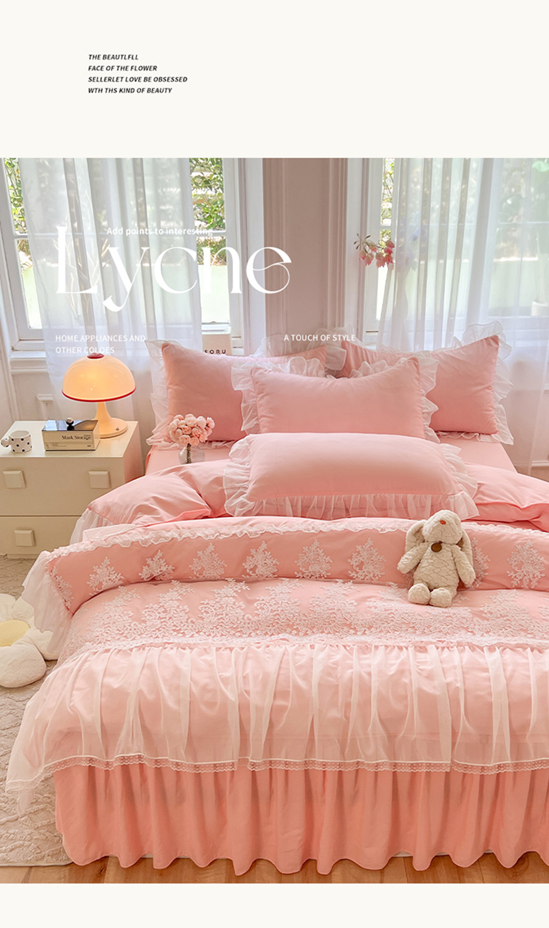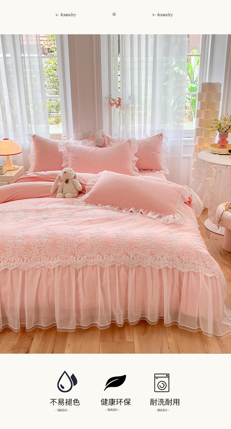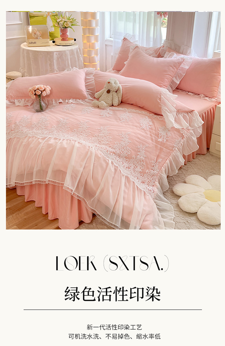 (总)唐人居 2026新款水洗棉花边床盖四件套-花影系列,花影-浅紫,花影-豆沙,花影-玫红,花影-暖橘,花影-苹果绿,花影-浅粉,花影-浅灰