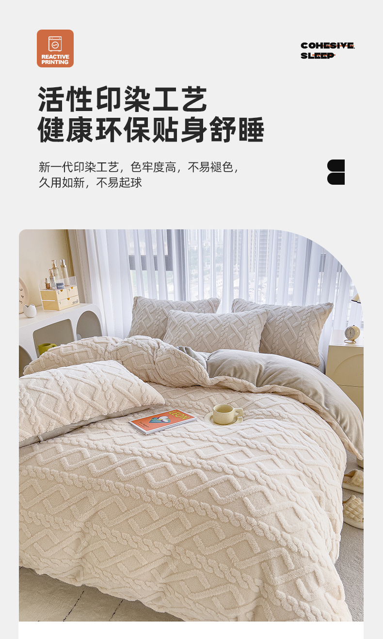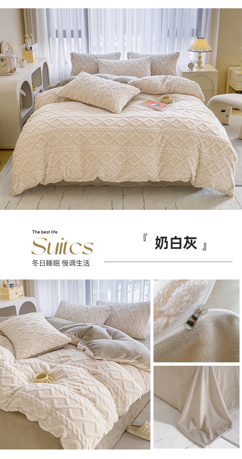 丝印良品 2023秋冬新款加厚塔芙绒简约款牛奶绒四件套 奶白灰
