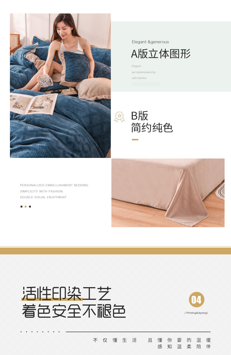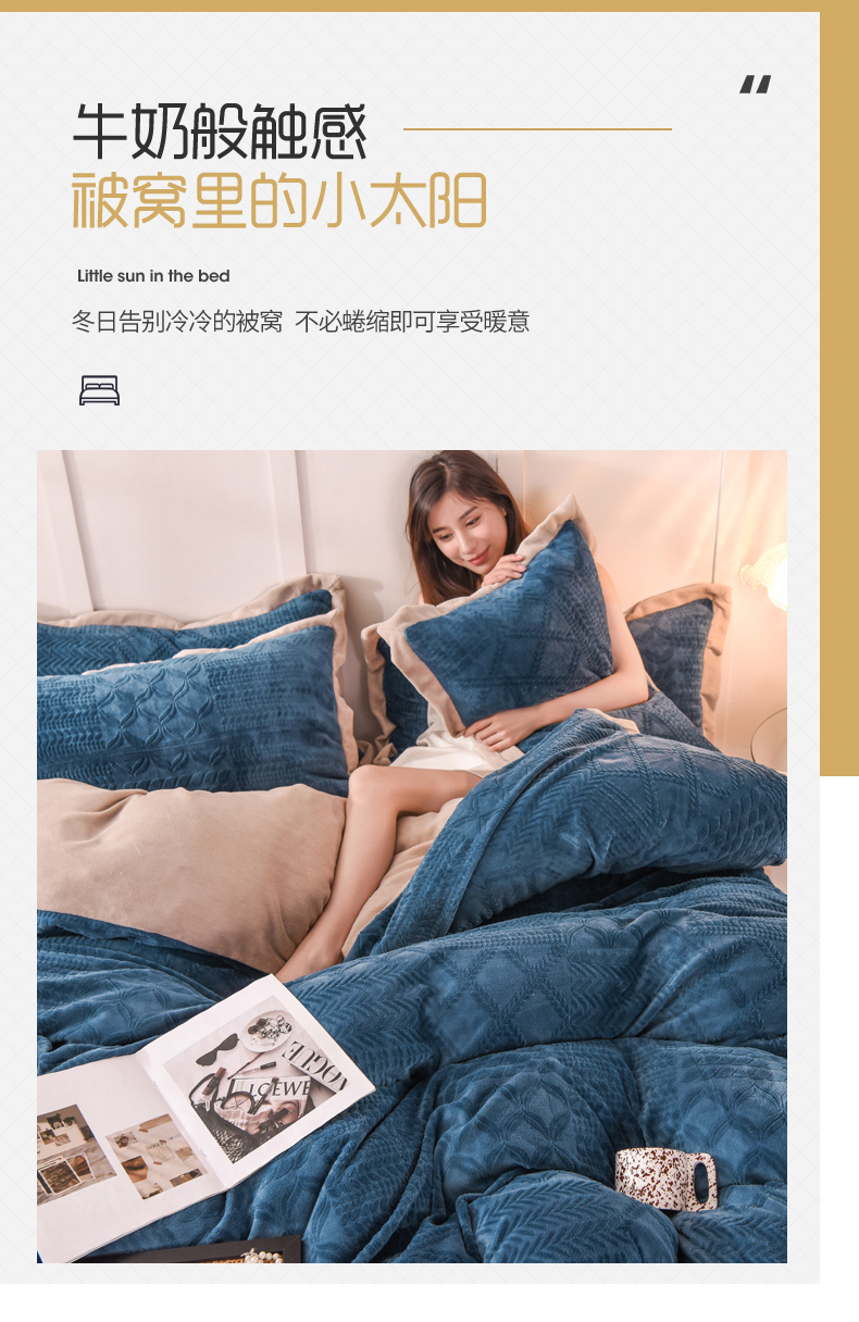 丝印良品 2023唯爱雕花A版260克牛奶绒四件套-实拍款 唯爱-宝蓝
