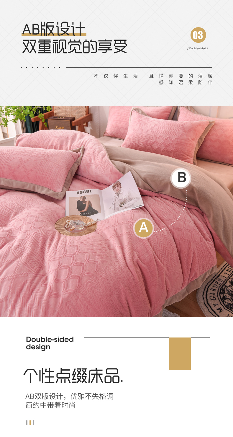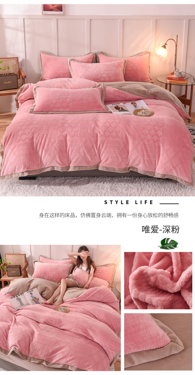 丝印良品 2023唯爱雕花A版260克牛奶绒四件套-相机款 唯爱-深粉