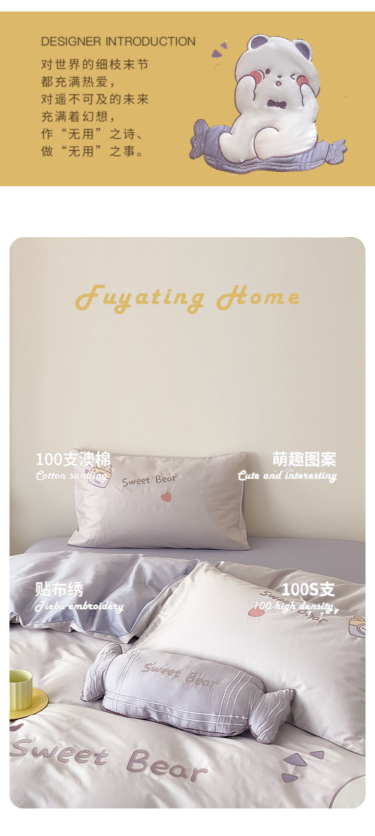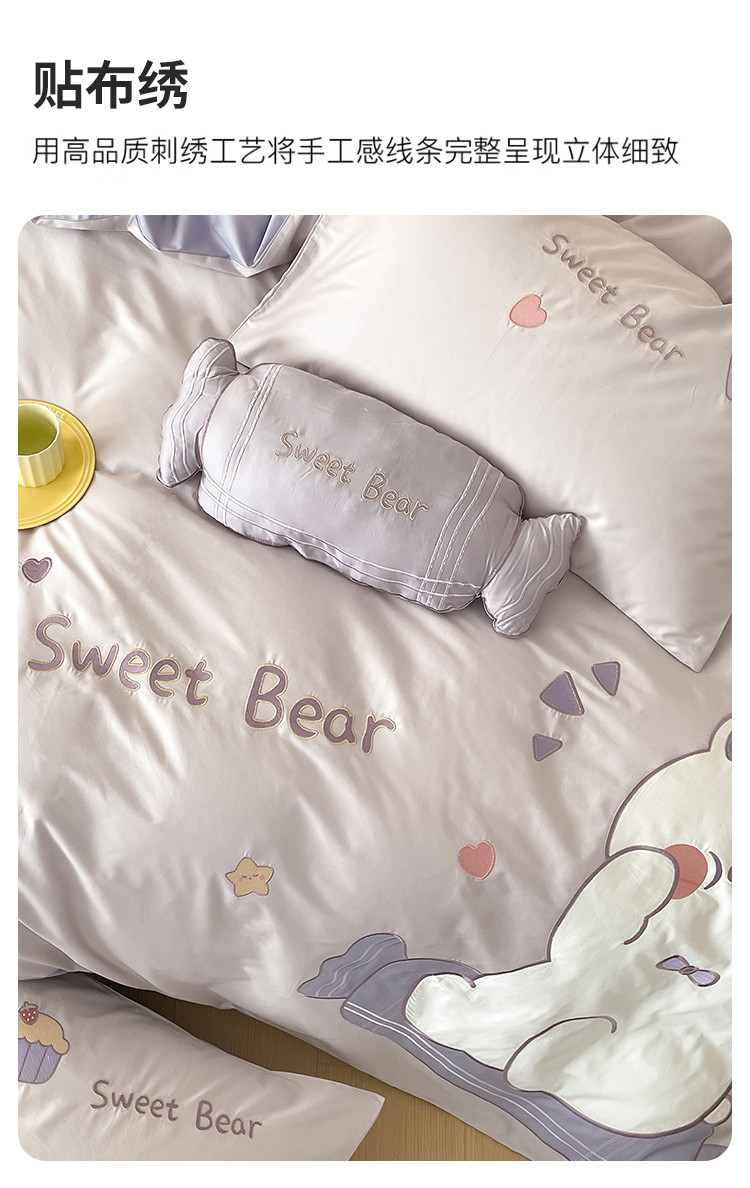 (总)西西家居 2023新款60S奥地利兰精天丝绣花四件套-糖果熊,糖果熊